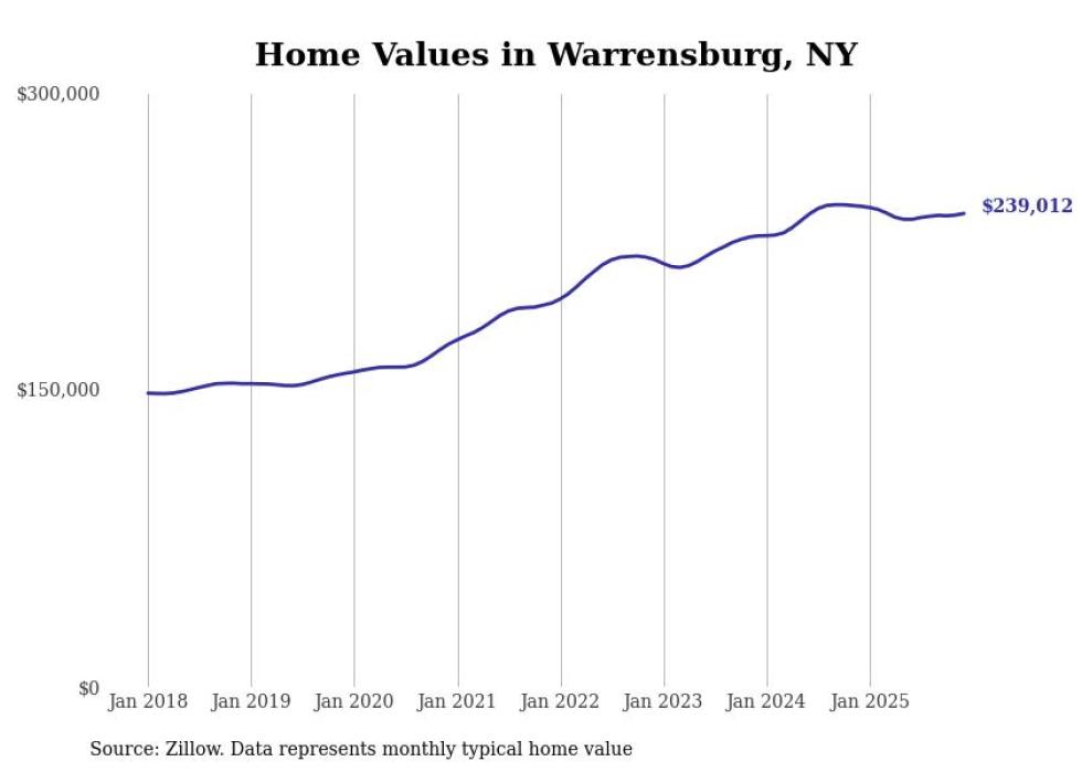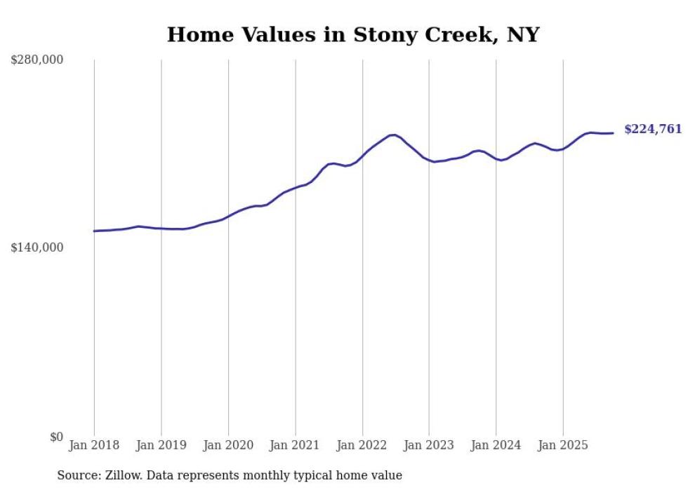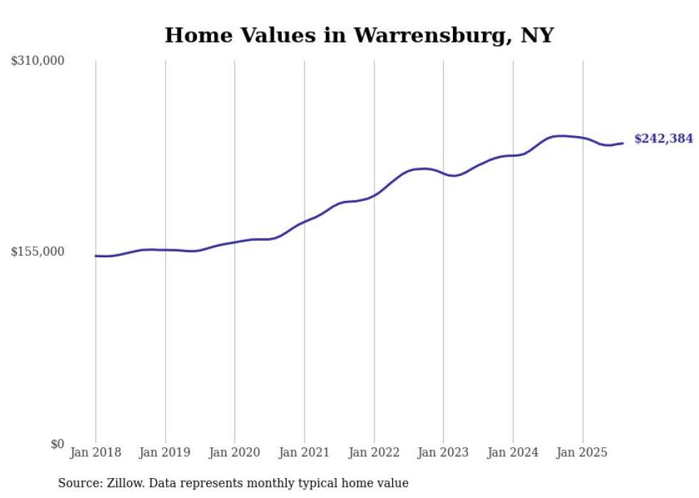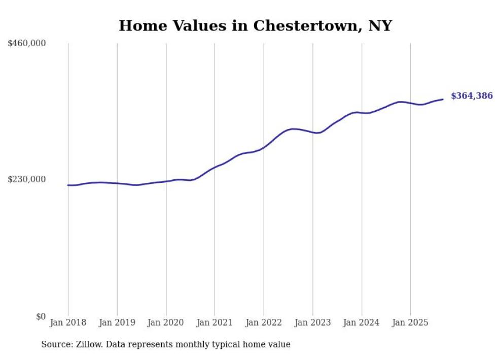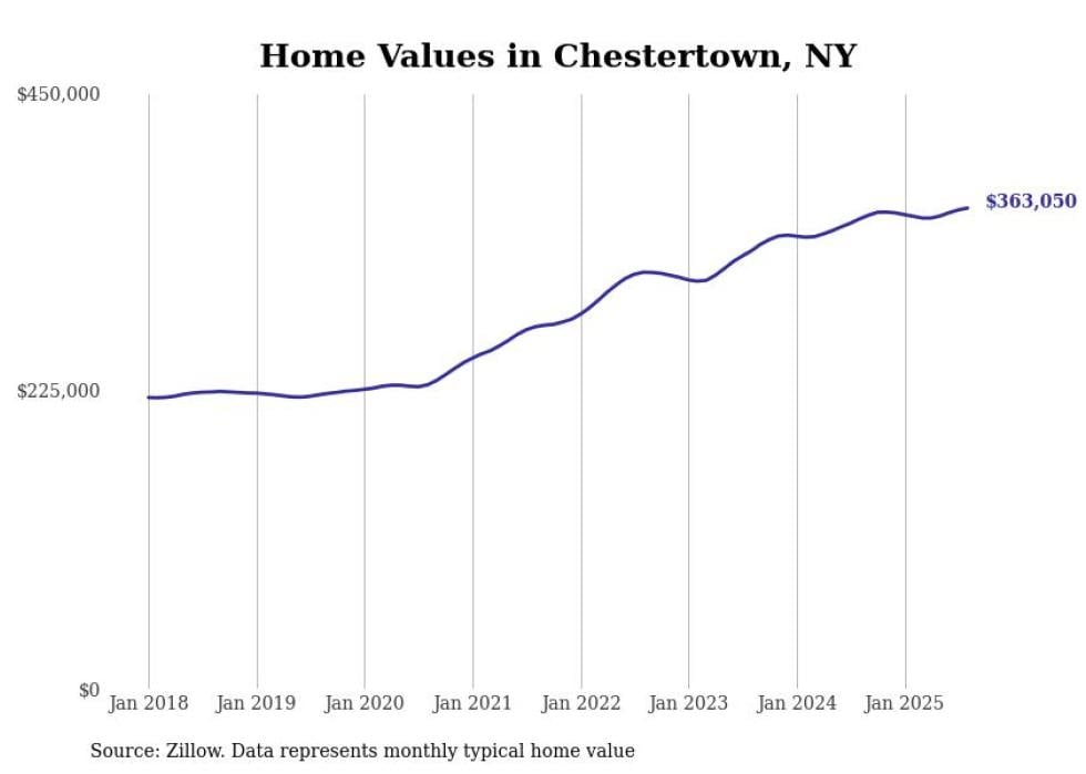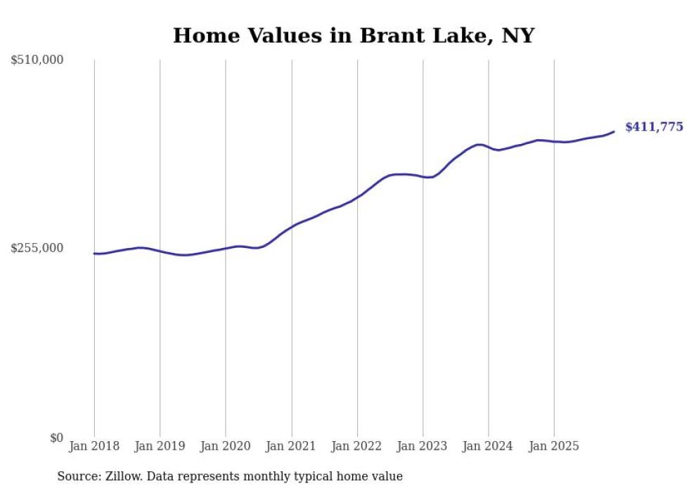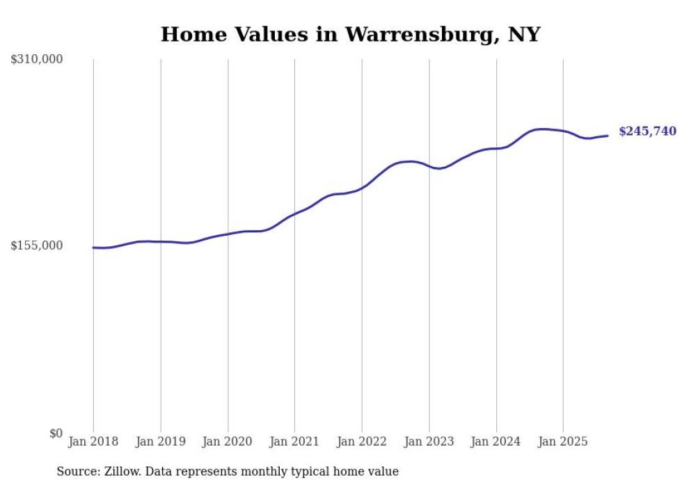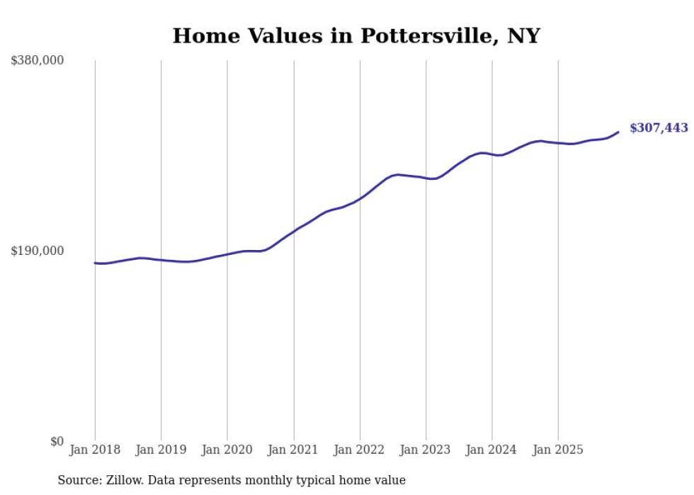 Stacker compiled a list of cities with the most expensive homes in the Glens Falls metro area using data from Zillow. Charts show the monthly typical home value since January 2018. All 21 cities and towns with data available were included in the list.