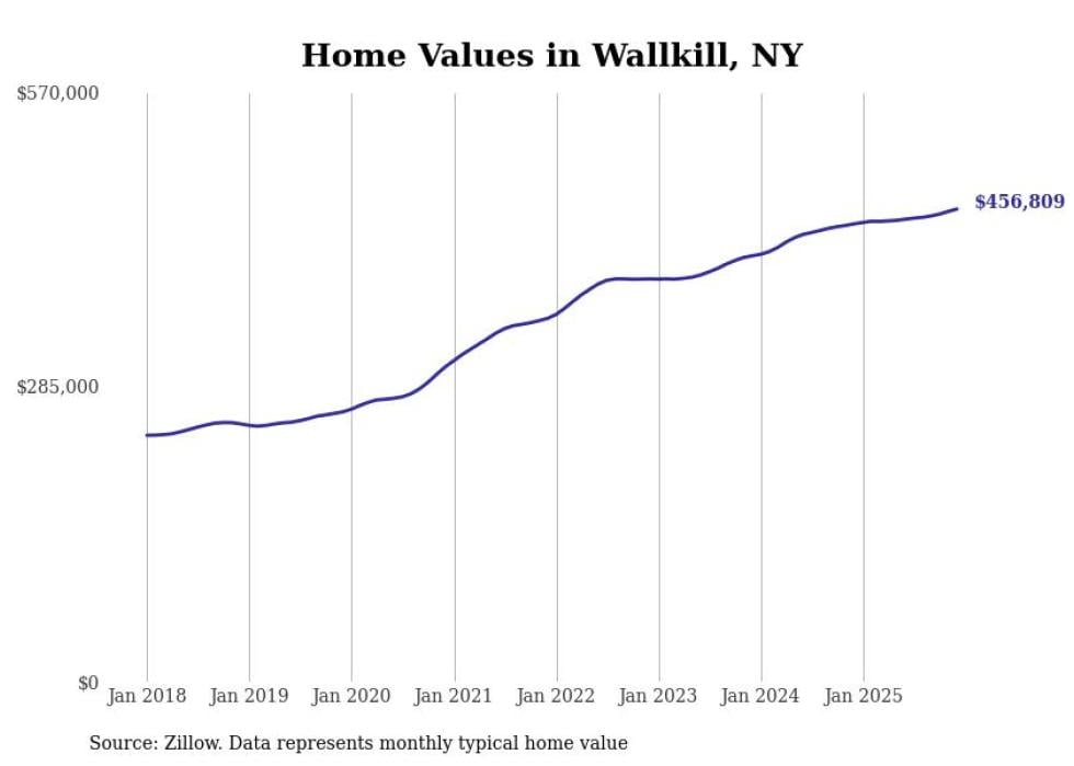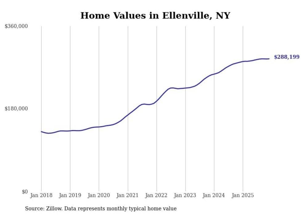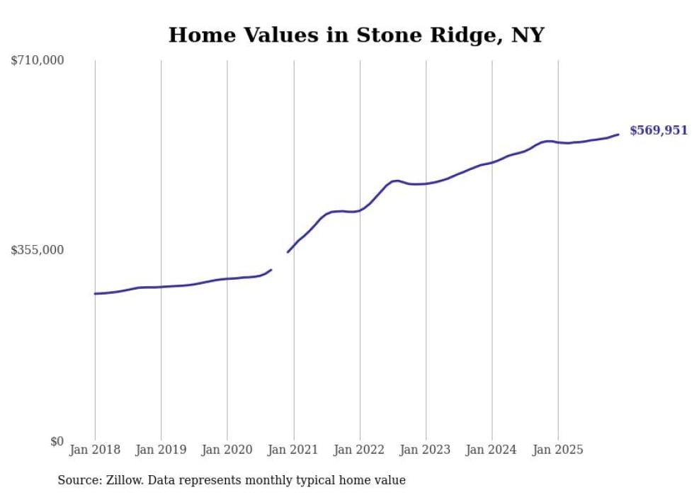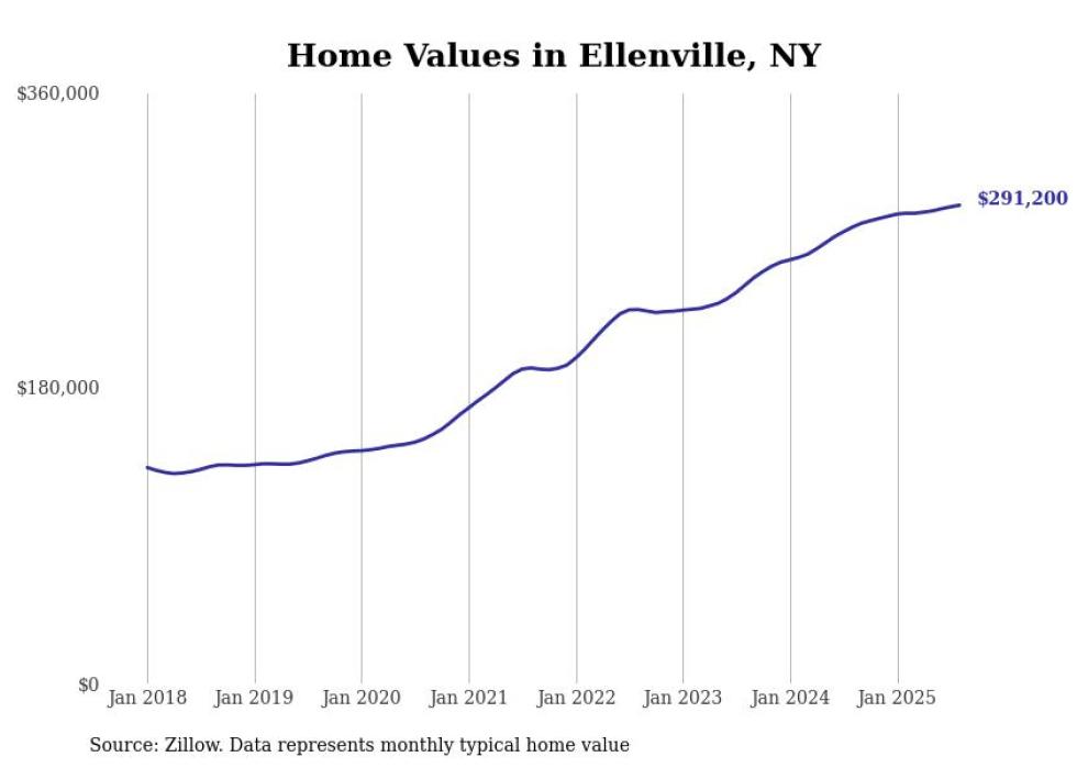 Stacker compiled a list of cities with the most expensive homes in the Kingston, NY metro area using data from Zillow. Charts show the monthly typical home value since January 2018.