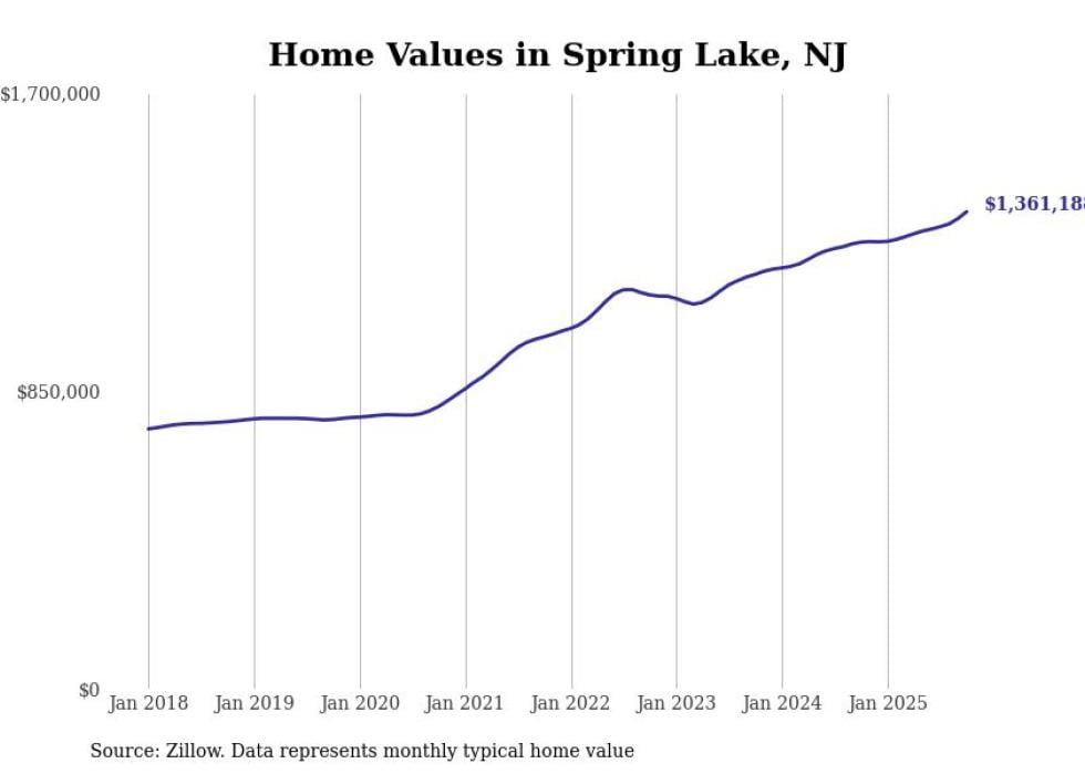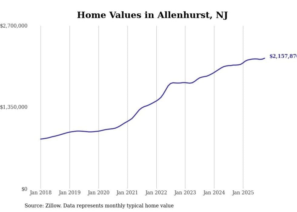 Stacker compiled a list of cities with the most expensive homes in the New York-Newark-Jersey City, NY-NJ-PA metro area using data from Zillow. Charts show the monthly typical home value since January 2018.