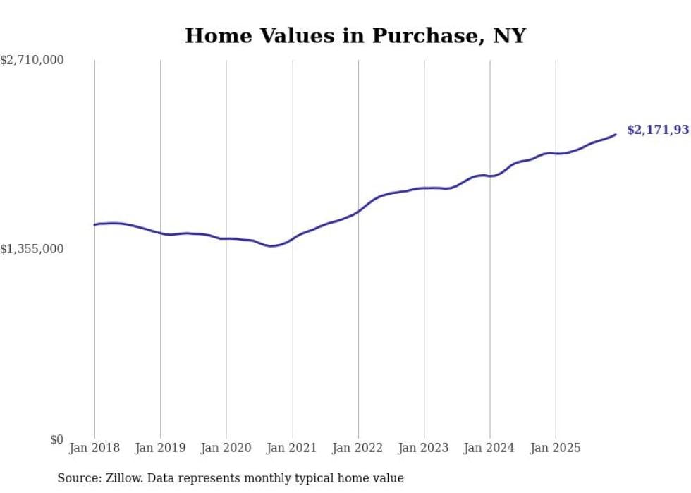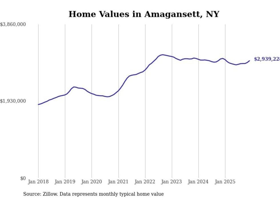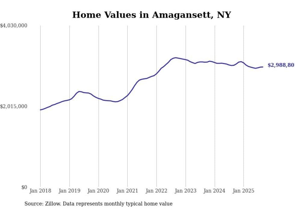 Stacker compiled a list of cities with the most expensive homes in the New York City metro area using data from Zillow. Charts show the monthly typical home value since January 2018. Data was available for 559 cities and towns.