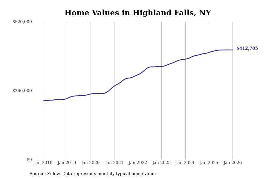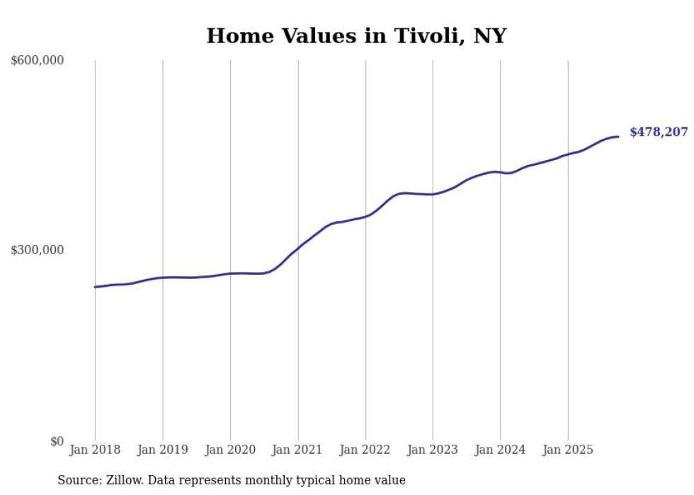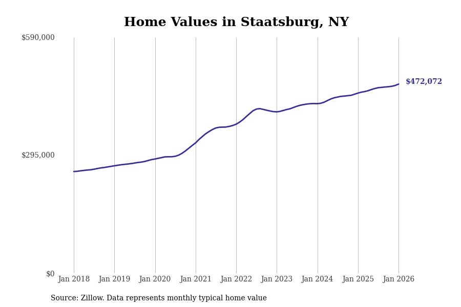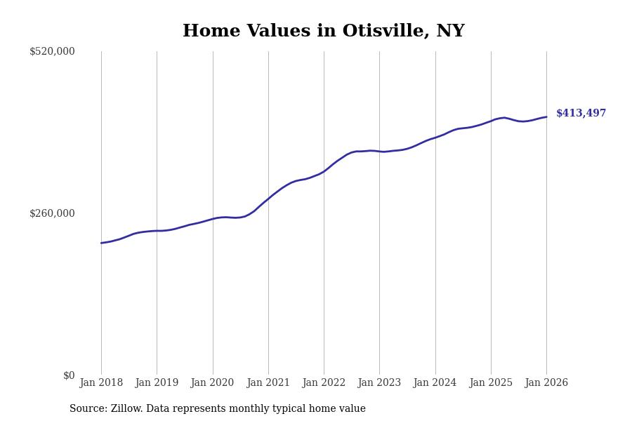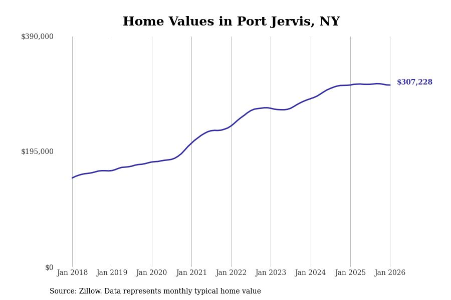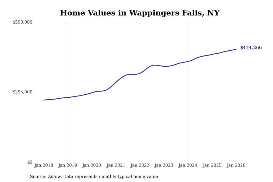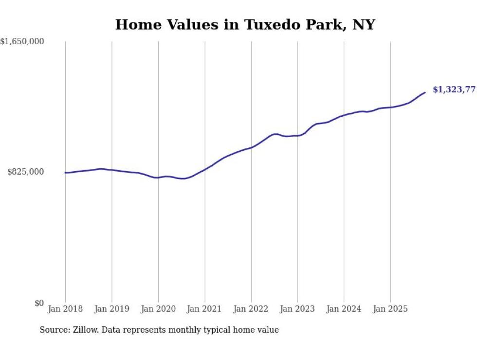 Stacker compiled a list of cities with the most expensive homes in the Poughkeepsie metro area using data from Zillow. Charts show the monthly typical home value since January 2018. All 21 cities and towns with data available were included in the list.