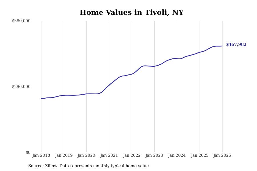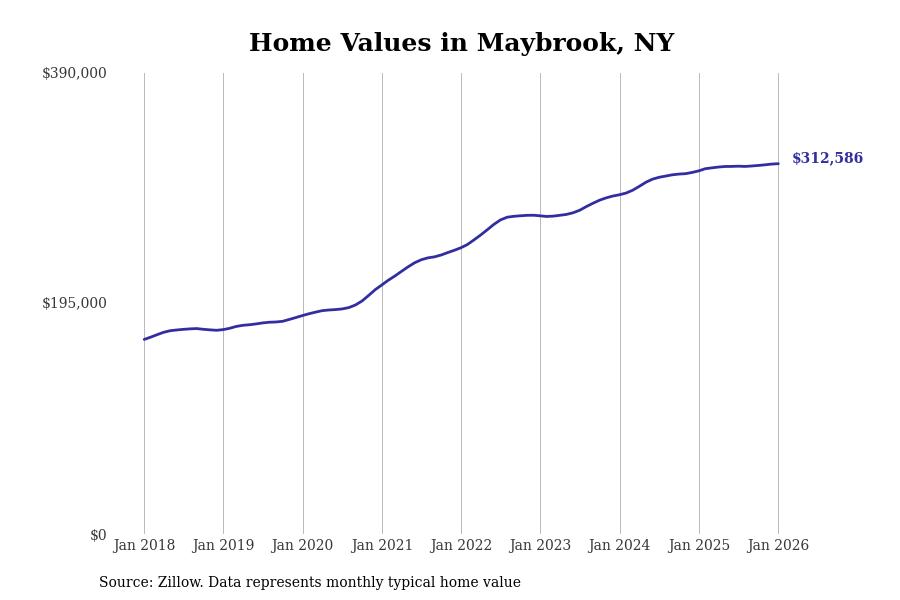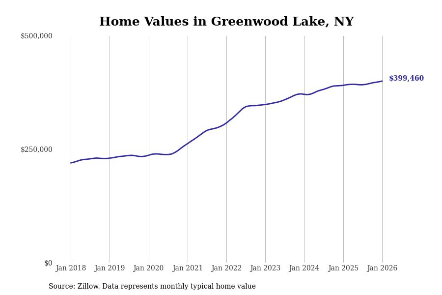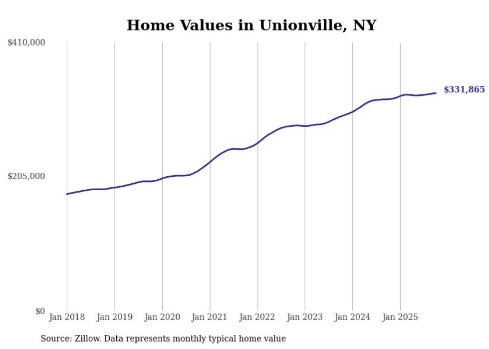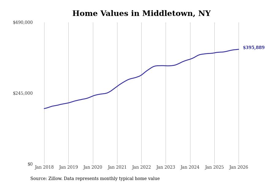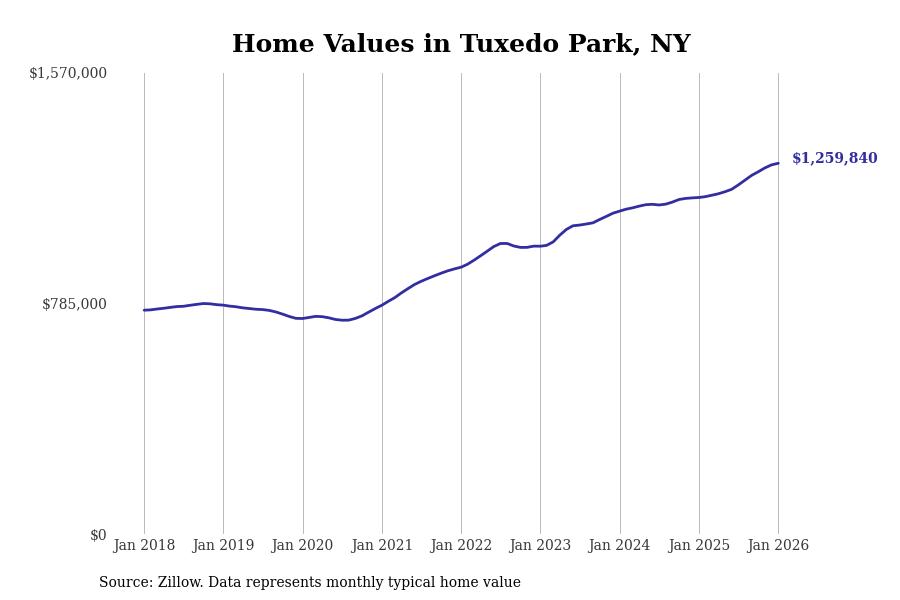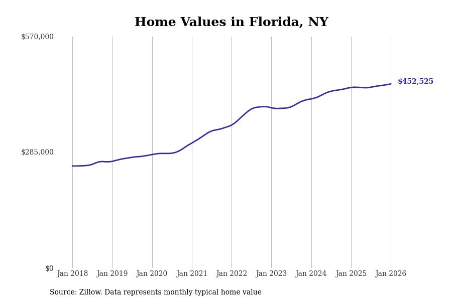 Stacker compiled a list of cities with the most expensive homes in the Poughkeepsie metro area using data from Zillow. Charts show the monthly typical home value since January 2018. All 21 cities and towns with data available were included in the list.