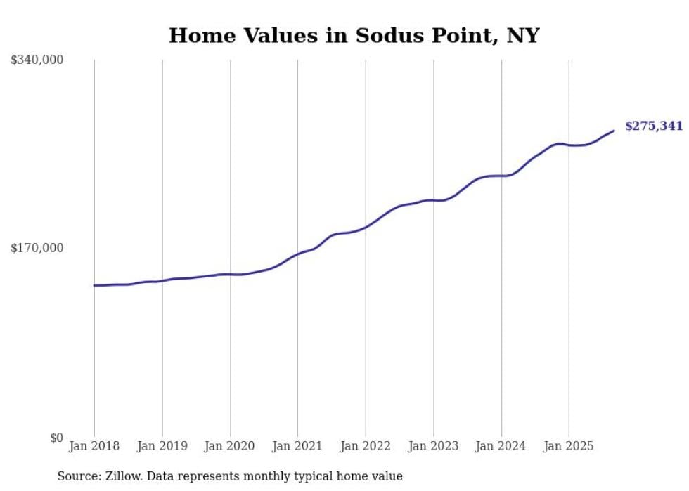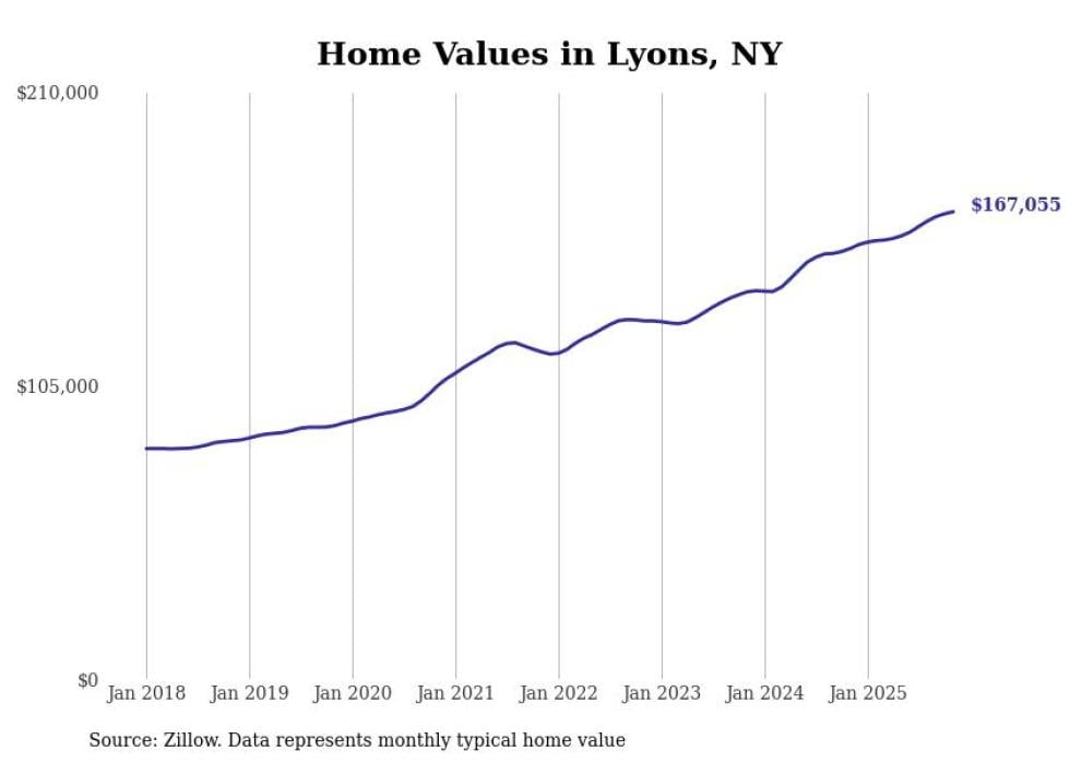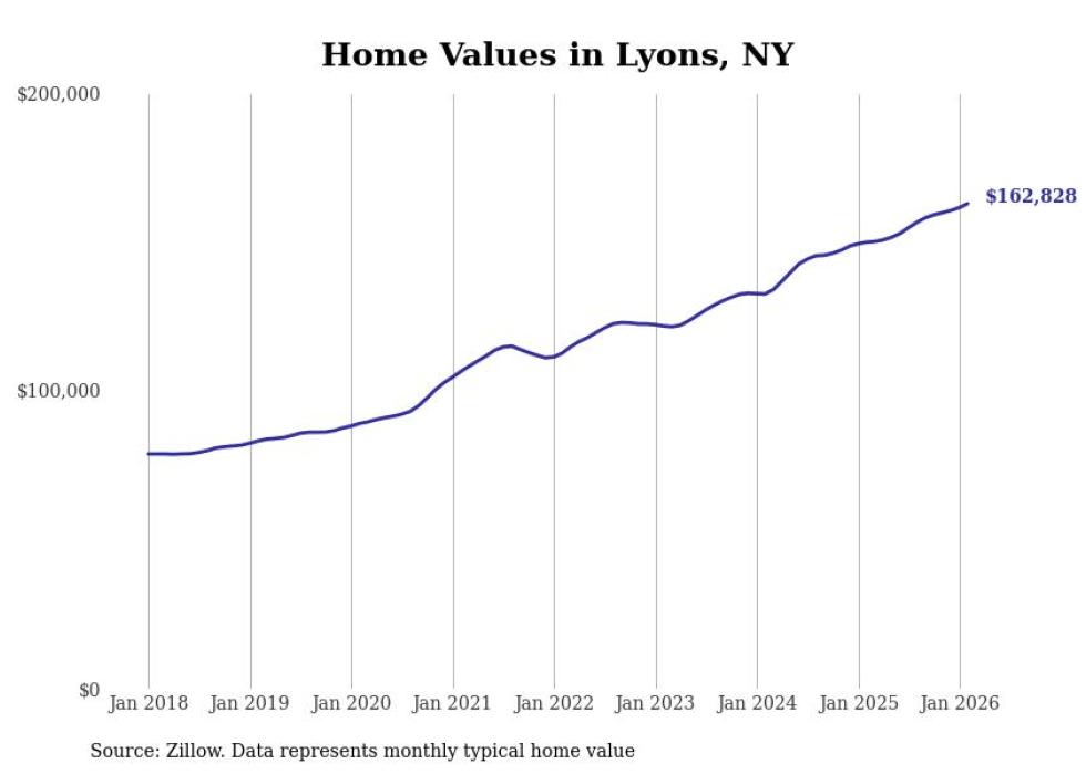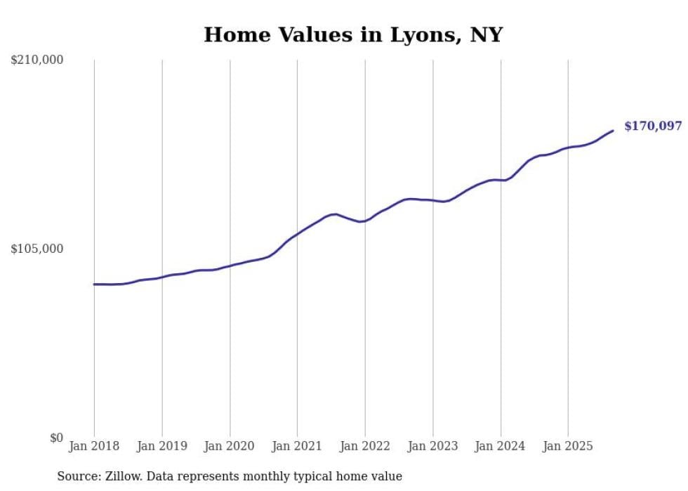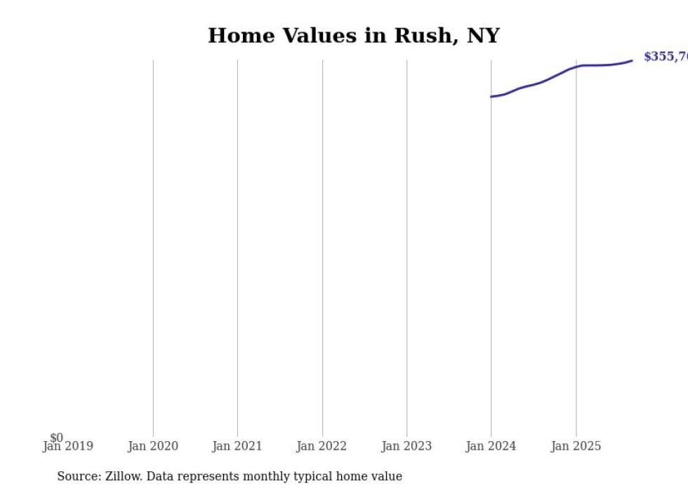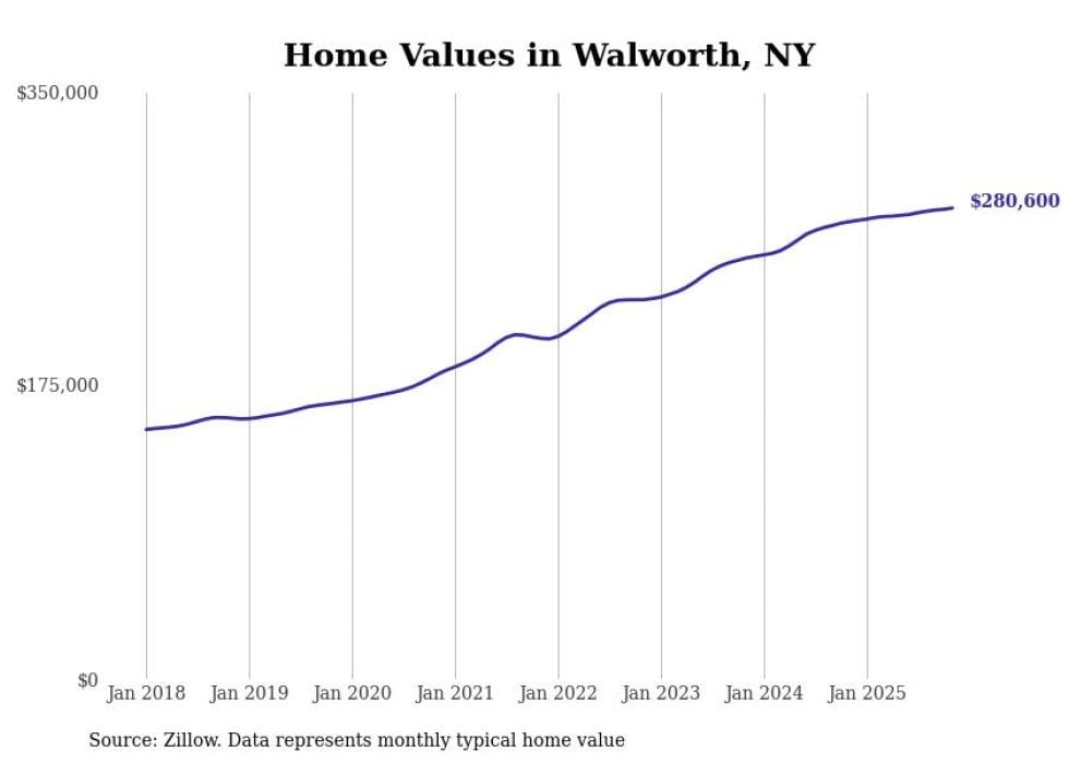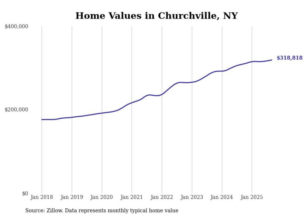 Stacker compiled a list of cities with the most expensive homes in the Rochester, NY metro area using data from Zillow. Charts show the monthly typical home value since January 2018.