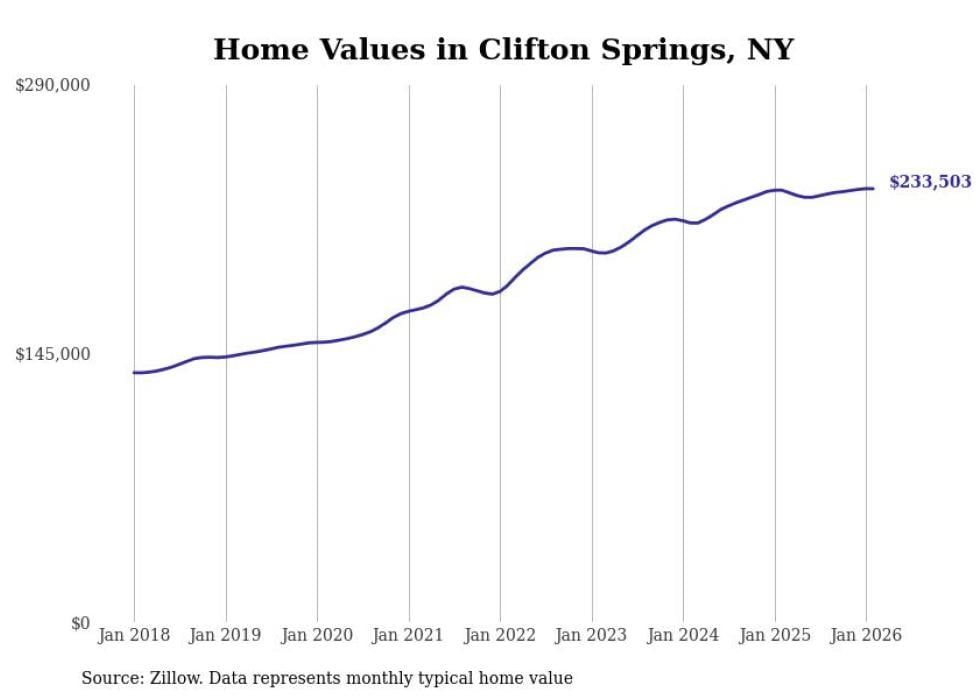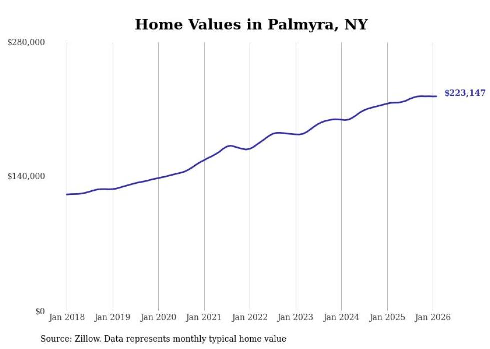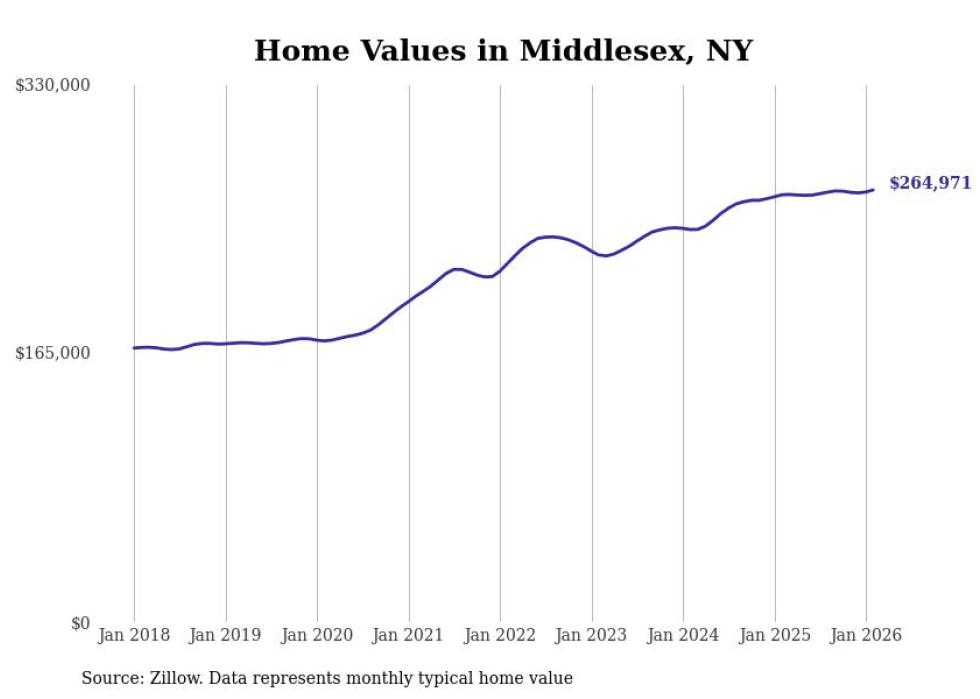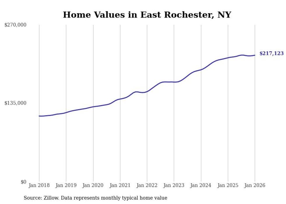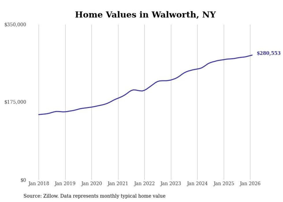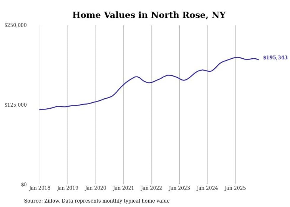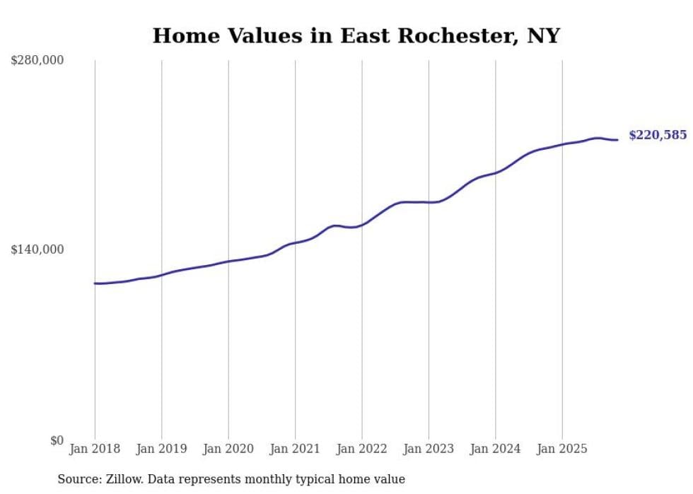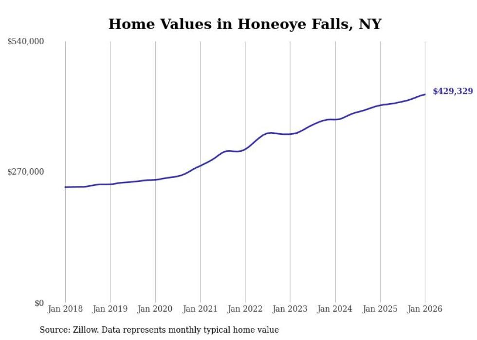 Stacker compiled a list of cities with the most expensive homes in the Rochester metro area using data from Zillow. Charts show the monthly typical home value since January 2018. Data was available for 40 cities and towns.