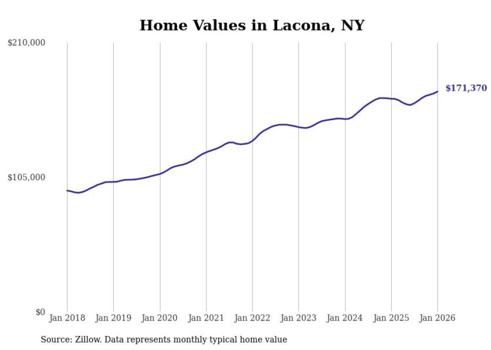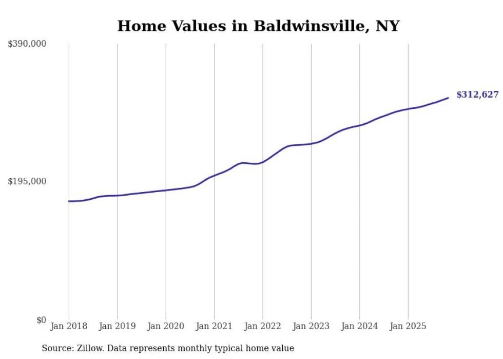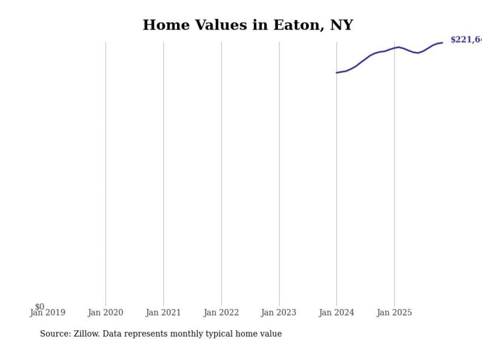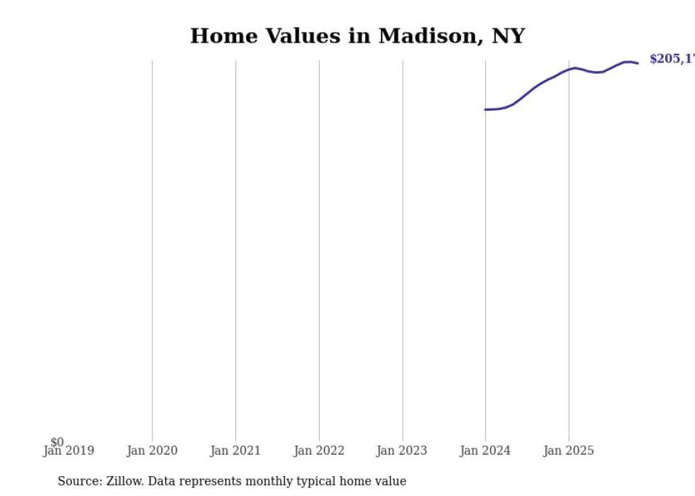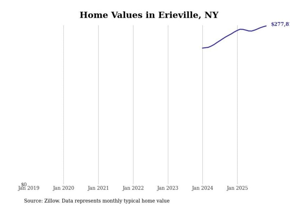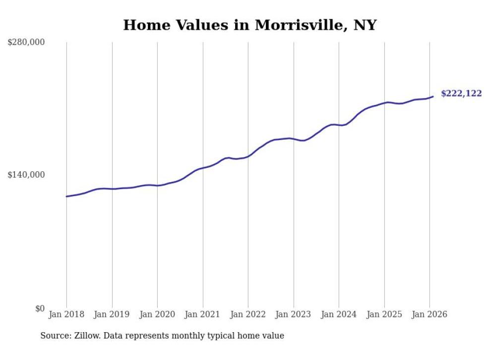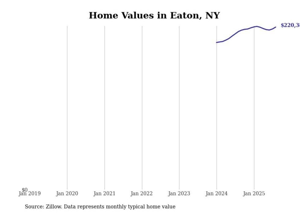 Stacker compiled a list of cities with the most expensive homes in the Syracuse, NY metro area using data from Zillow. Charts show the monthly typical home value since January 2018.