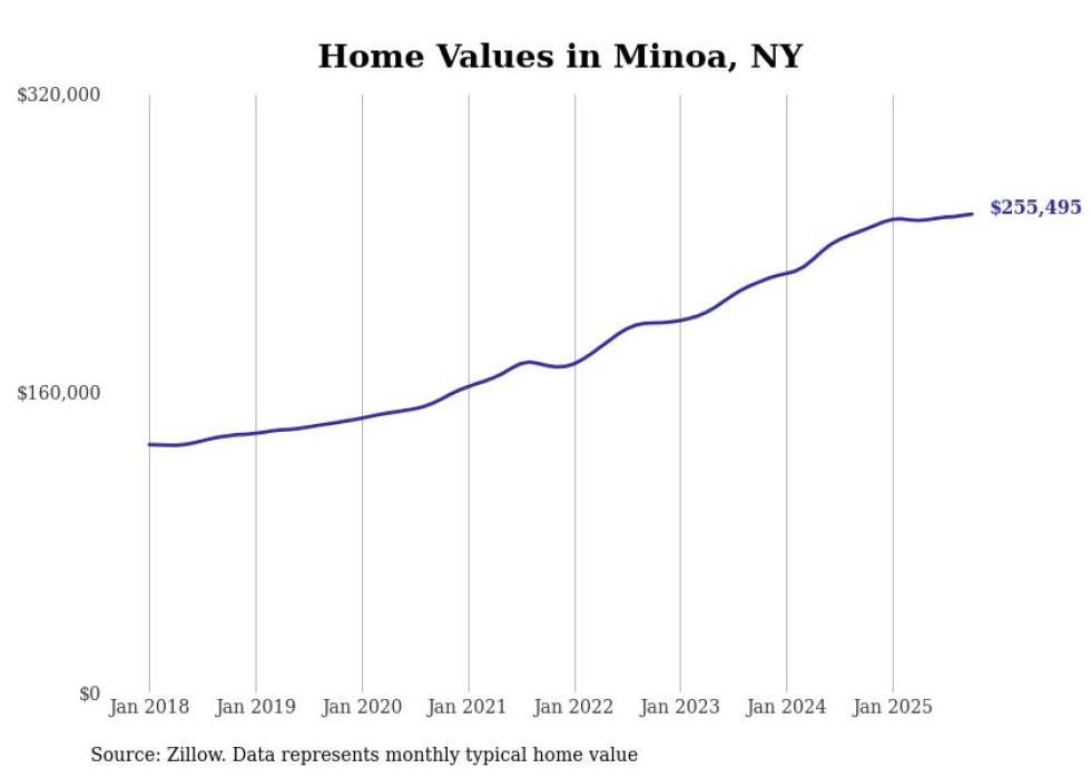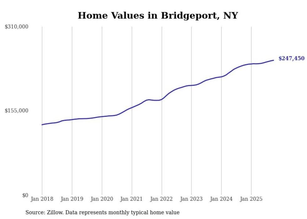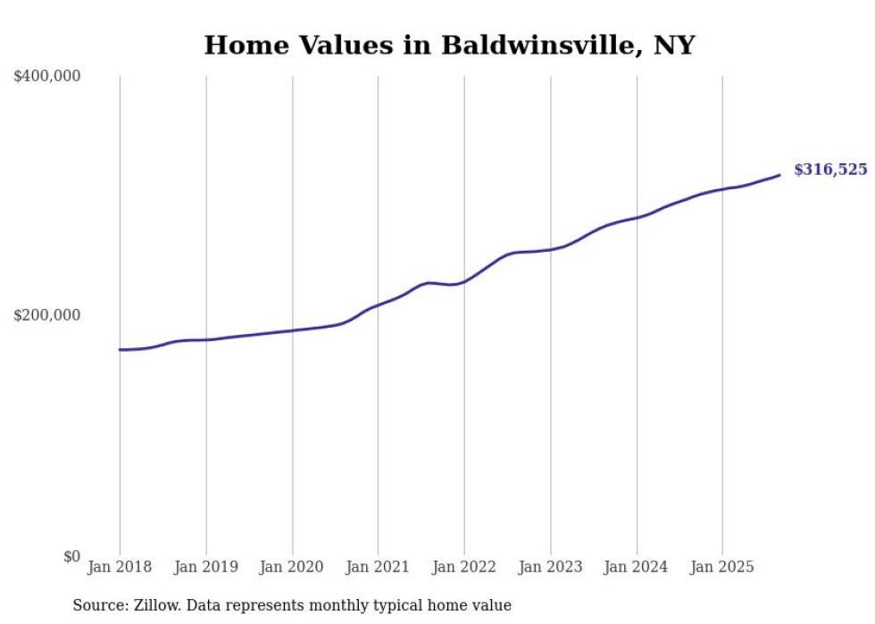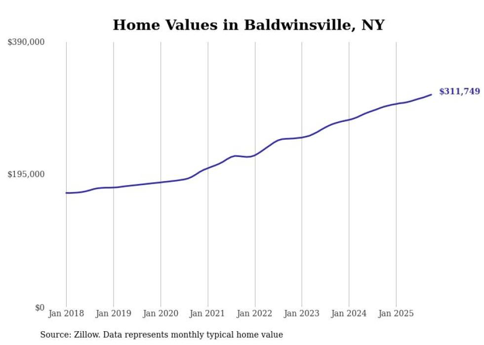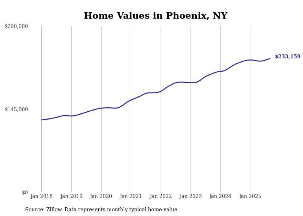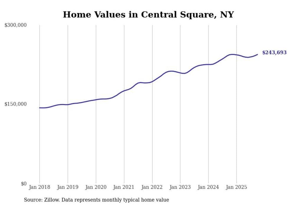 Stacker compiled a list of cities with the most expensive homes in the Syracuse metro area using data from Zillow. Charts show the monthly typical home value since January 2018. All 22 cities and towns with data available were included in the list.