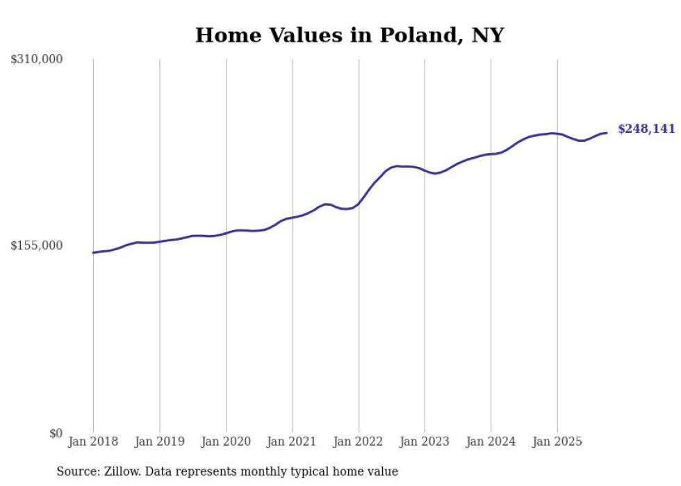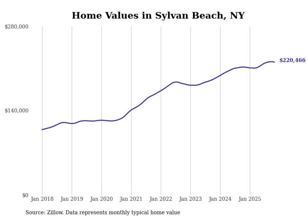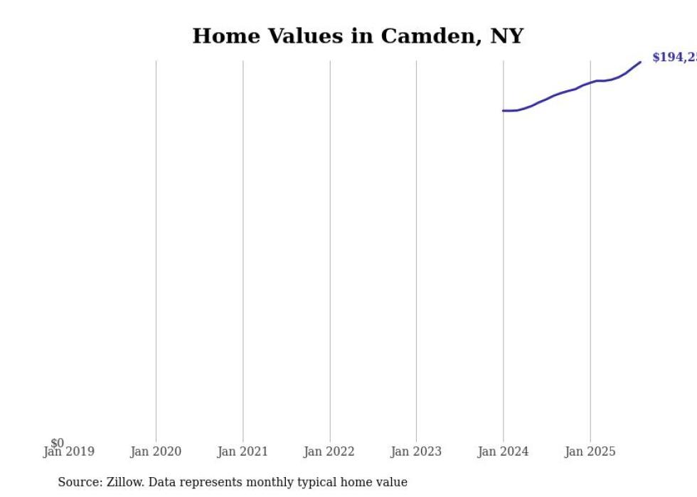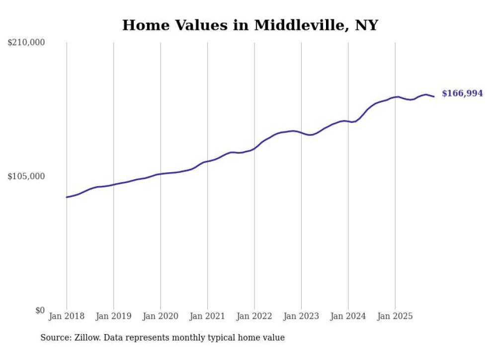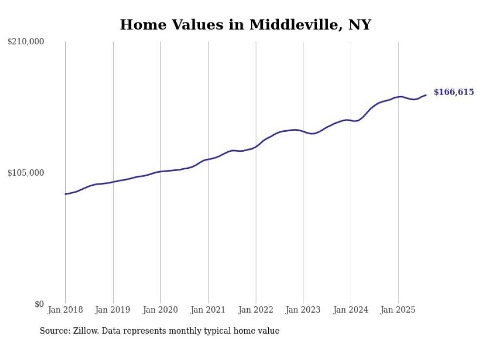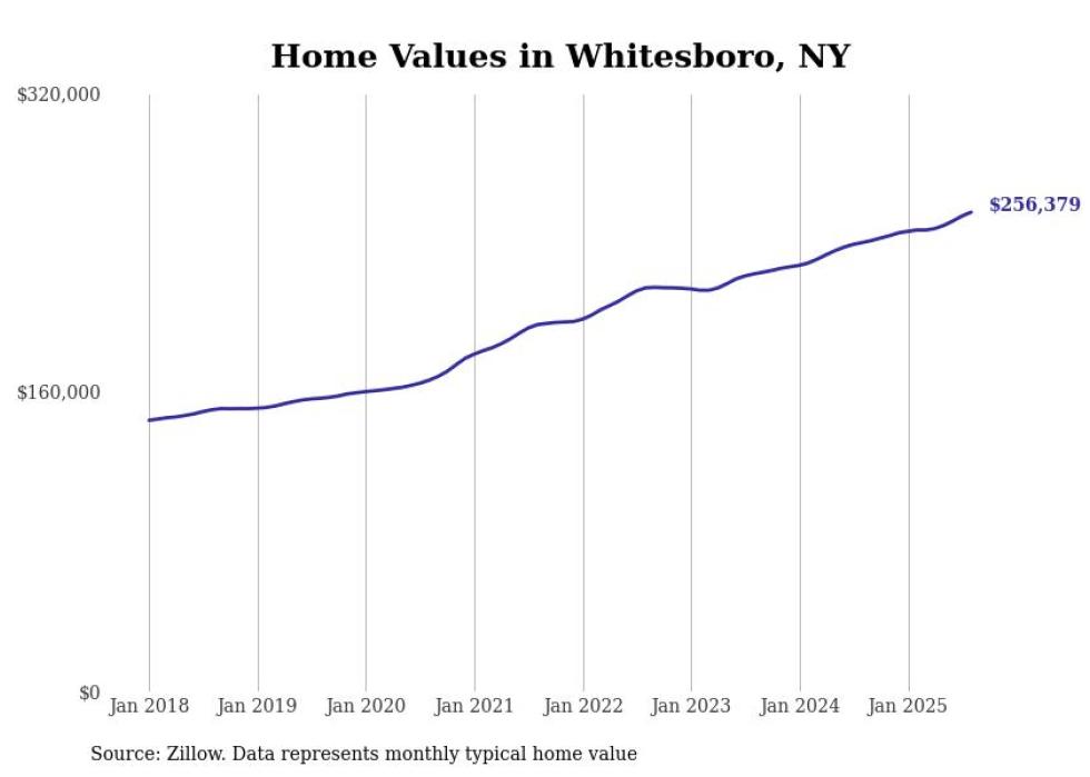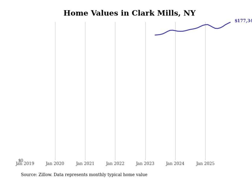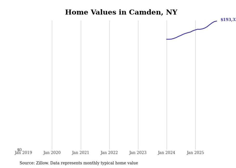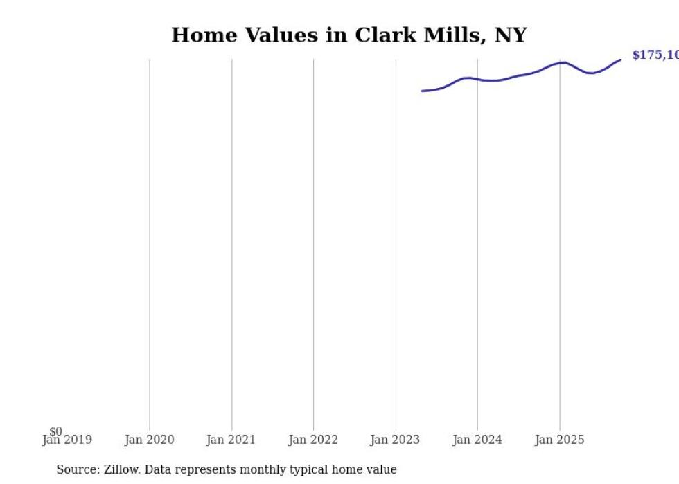 Stacker compiled a list of cities with the most expensive homes in the Utica-Rome, NY metro area using data from Zillow. Charts show the monthly typical home value since January 2018.