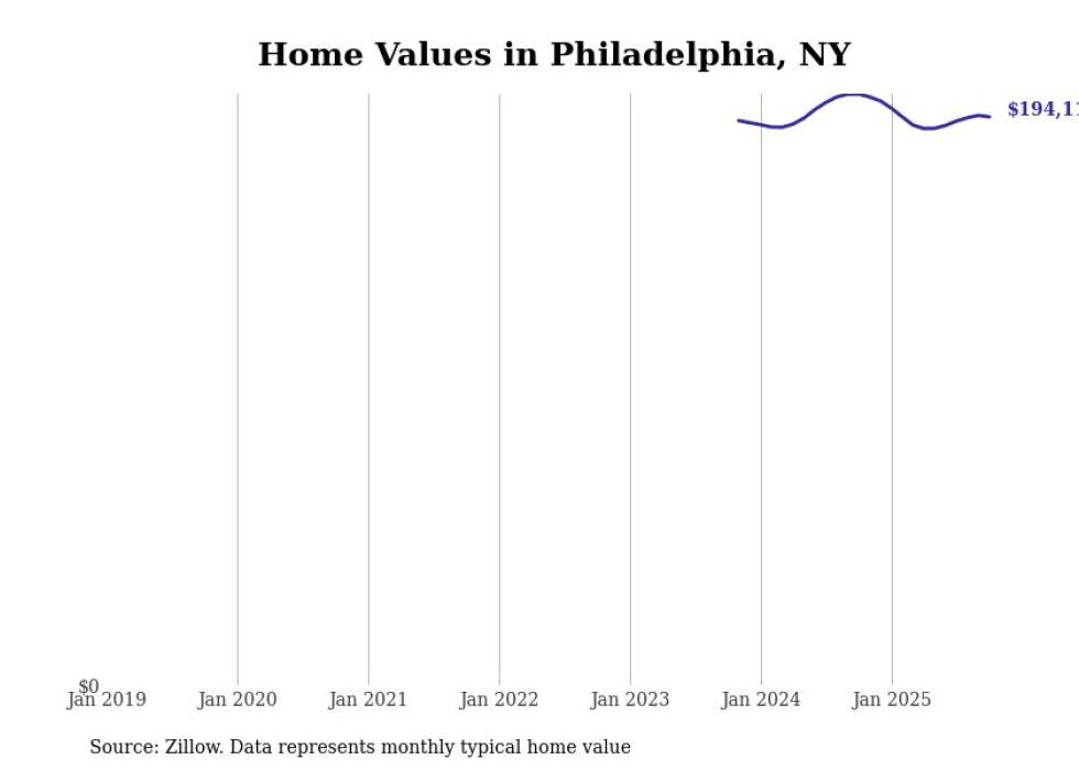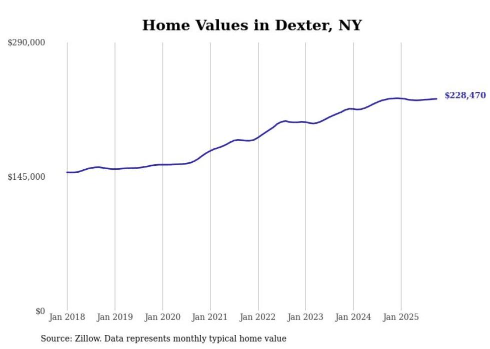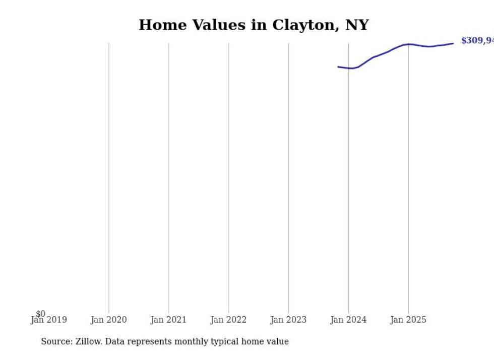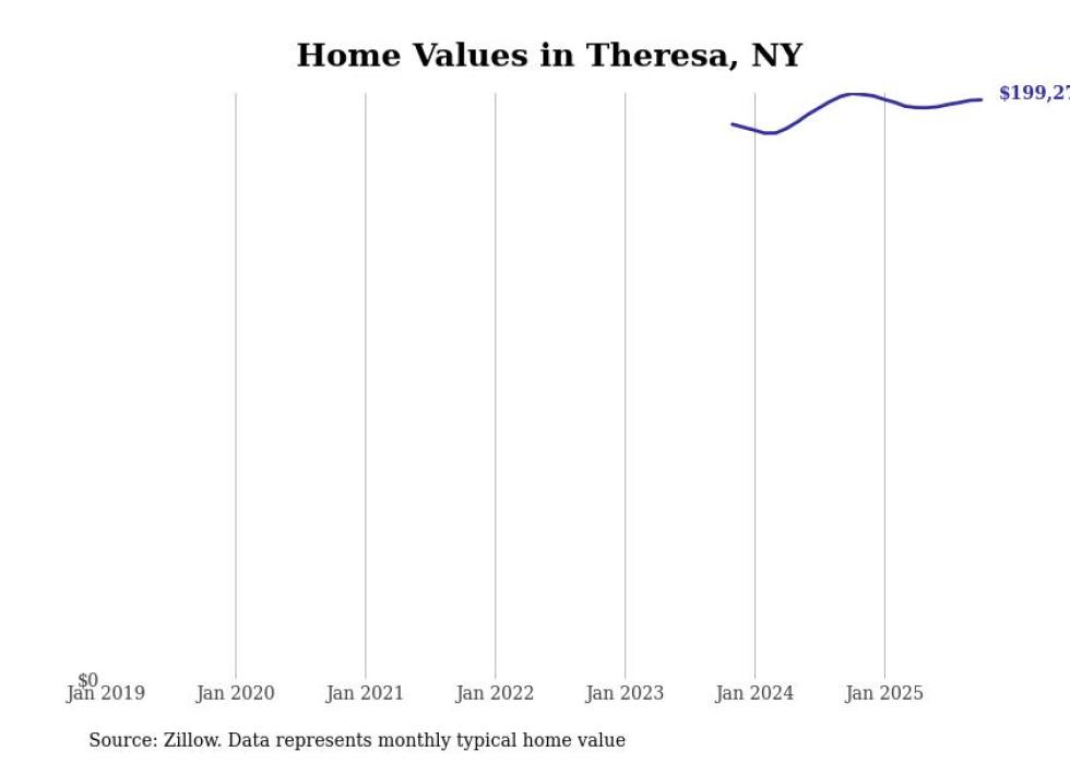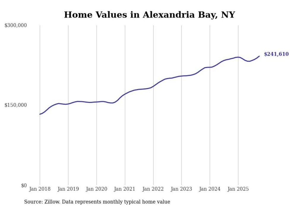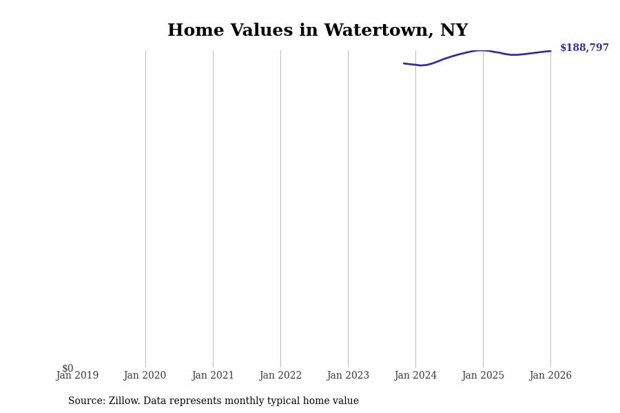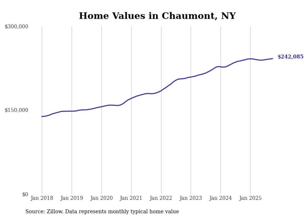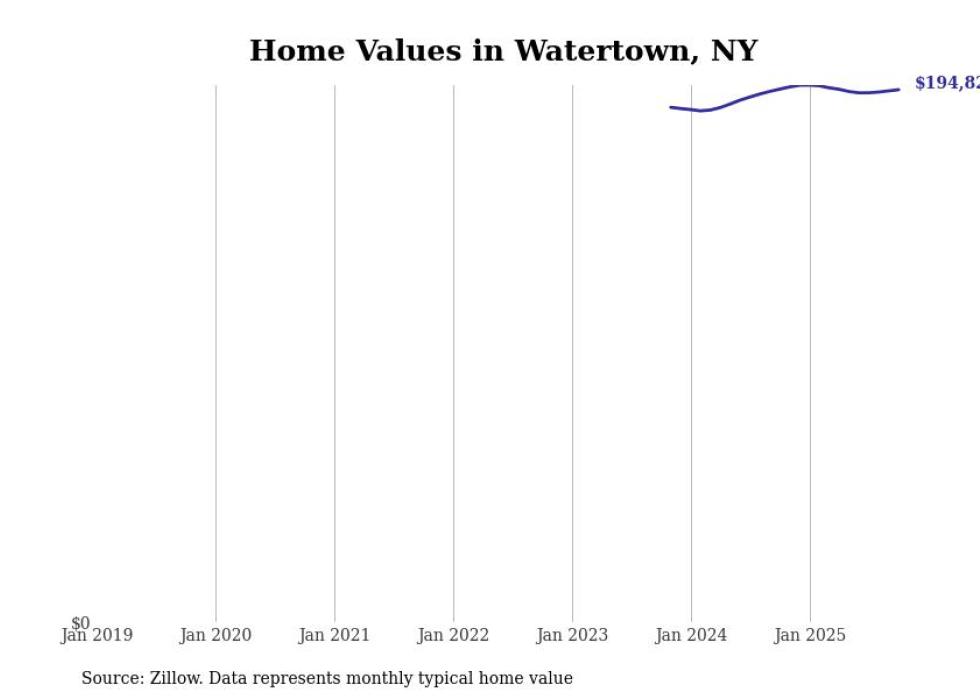 Stacker compiled a list of cities with the most expensive homes in the Watertown-Fort Drum, NY metro area using data from Zillow. Charts show the monthly typical home value since January 2018.