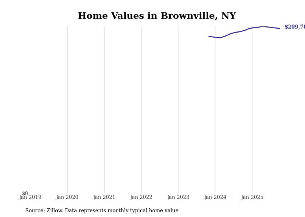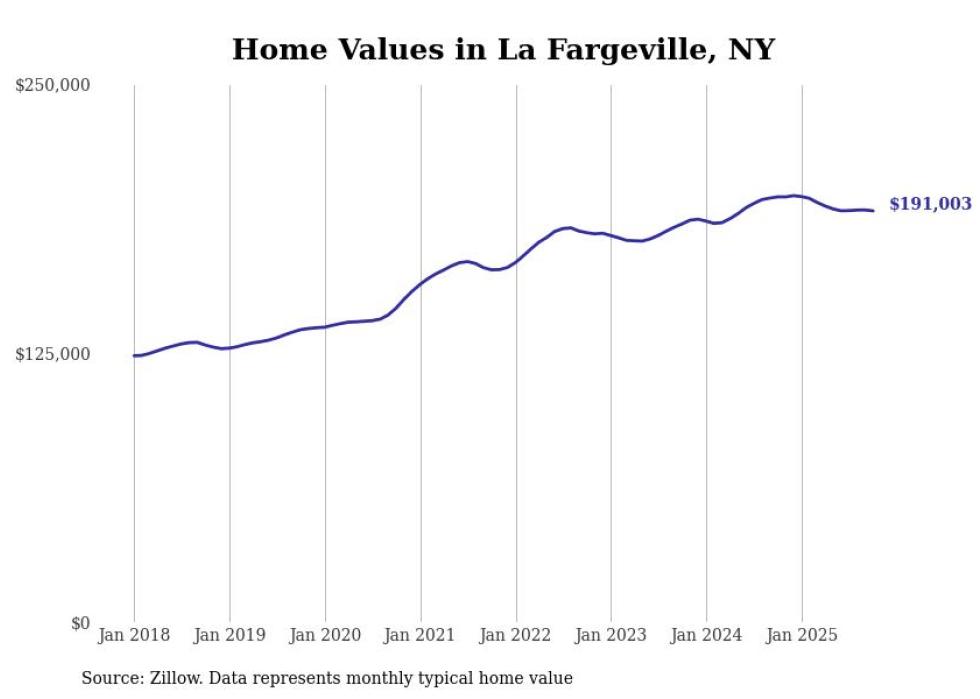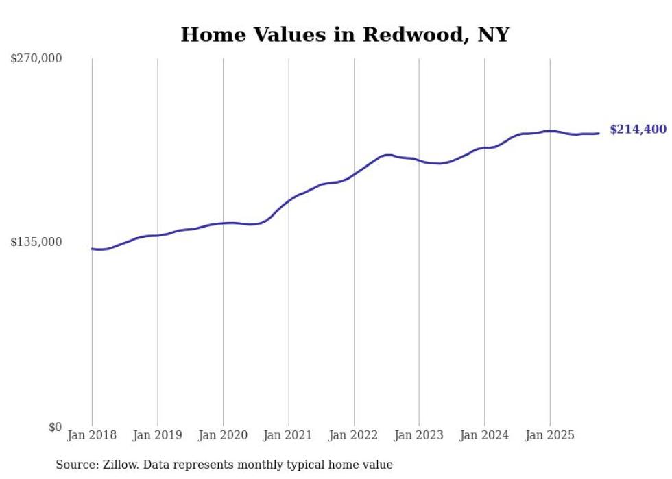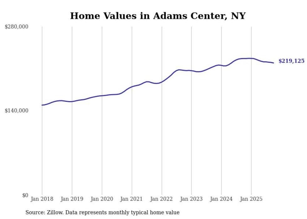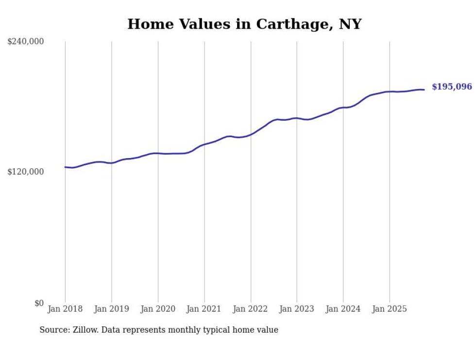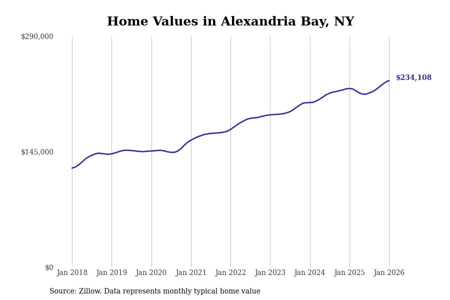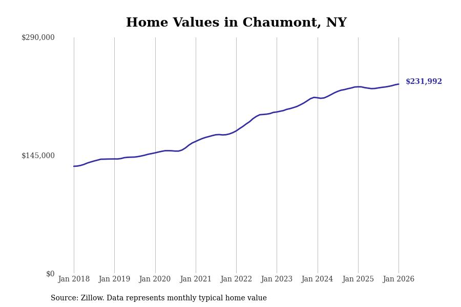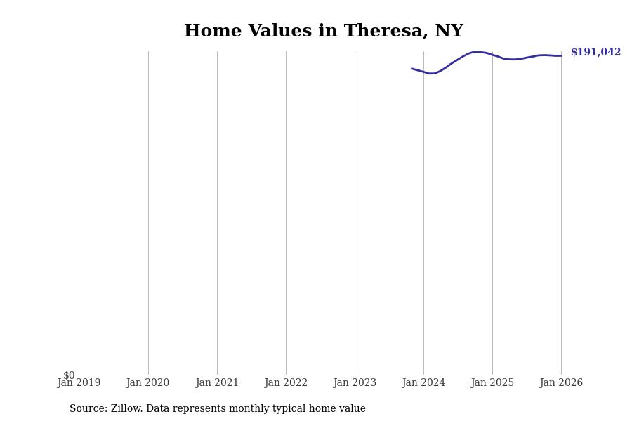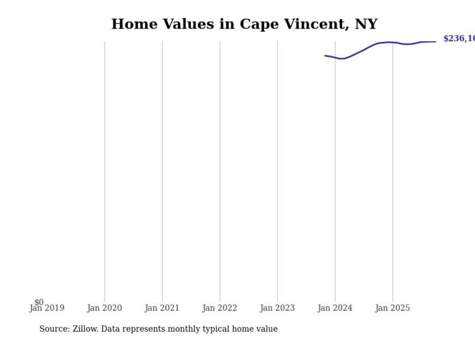 Stacker compiled a list of cities with the most expensive homes in the Watertown-Fort Drum, NY metro area using data from Zillow. Charts show the monthly typical home value since January 2018.