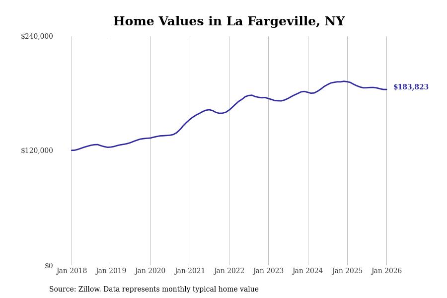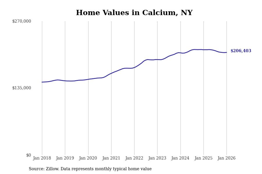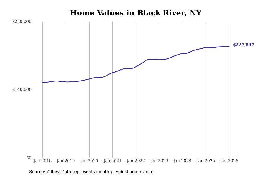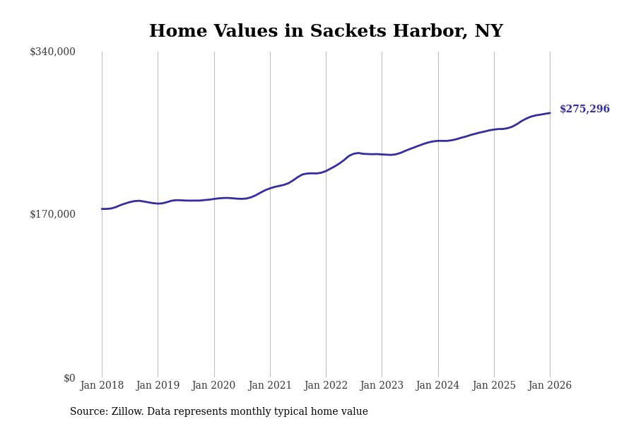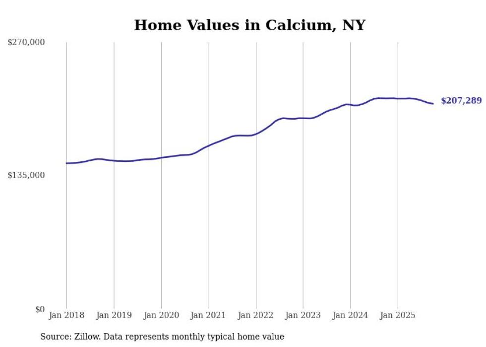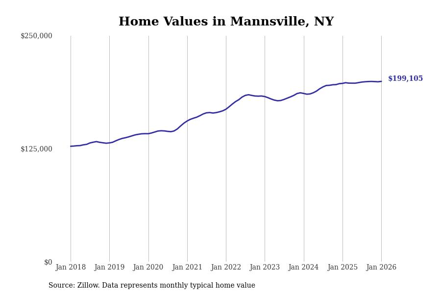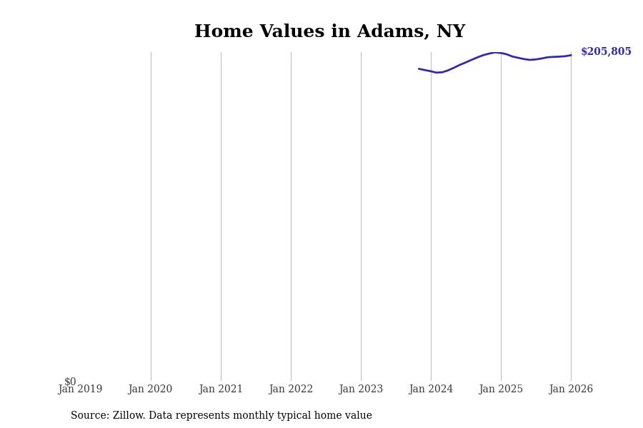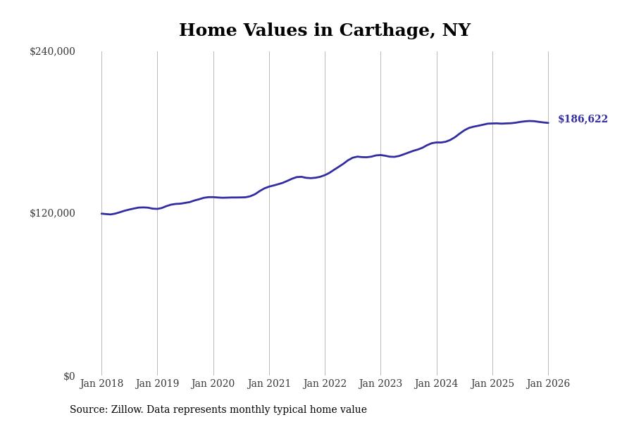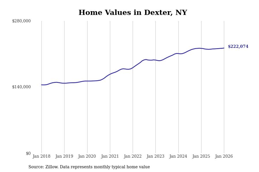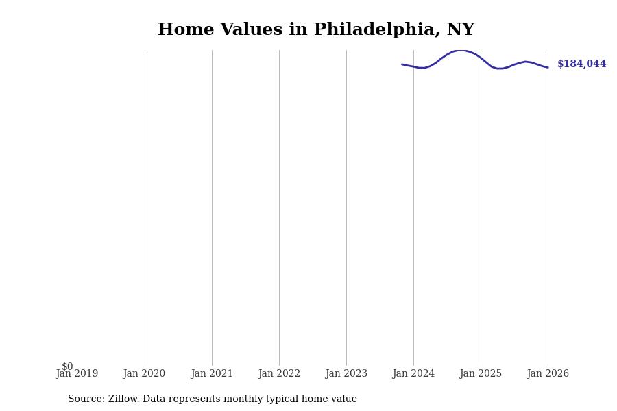 Stacker compiled a list of cities with the most expensive homes in the Watertown-Fort Drum, NY metro area using data from Zillow. Charts show the monthly typical home value since January 2018.