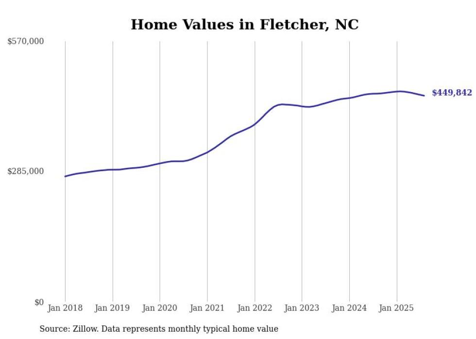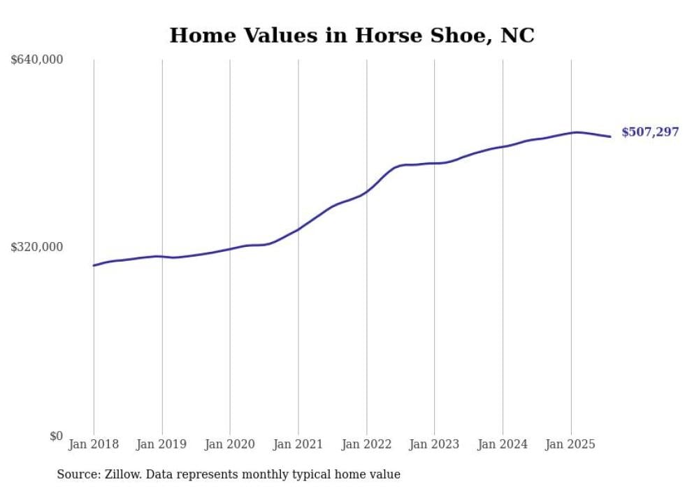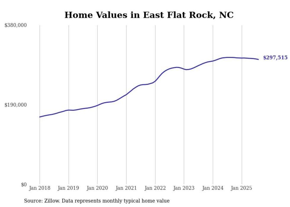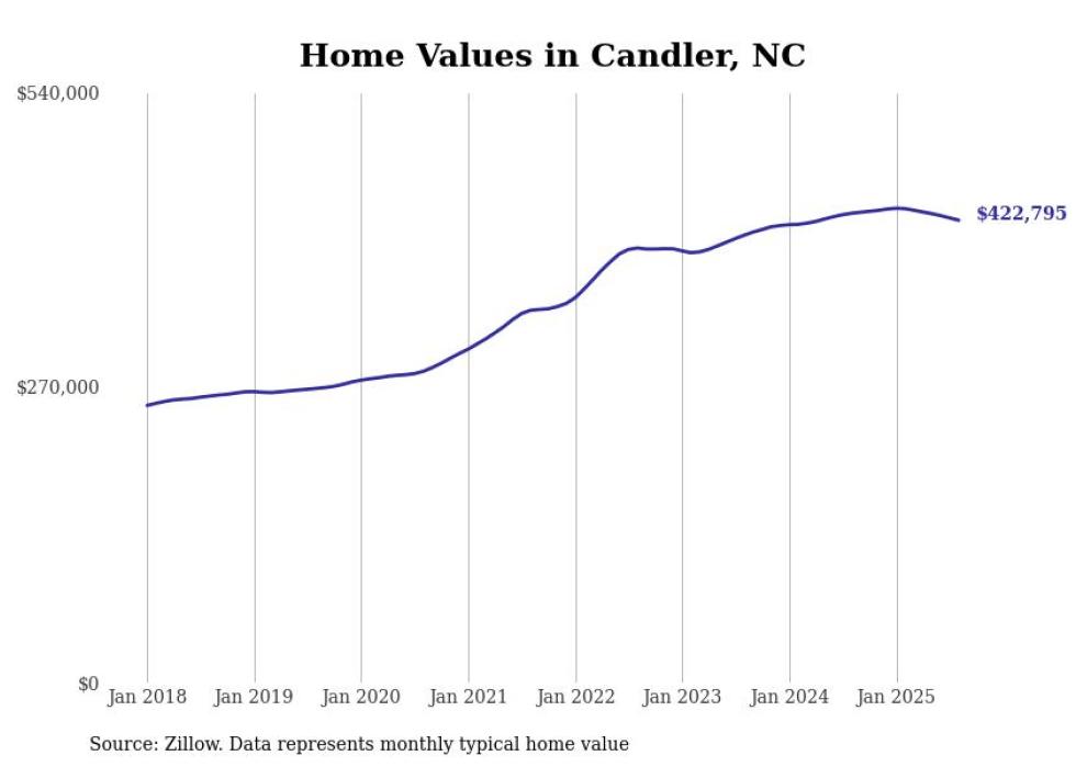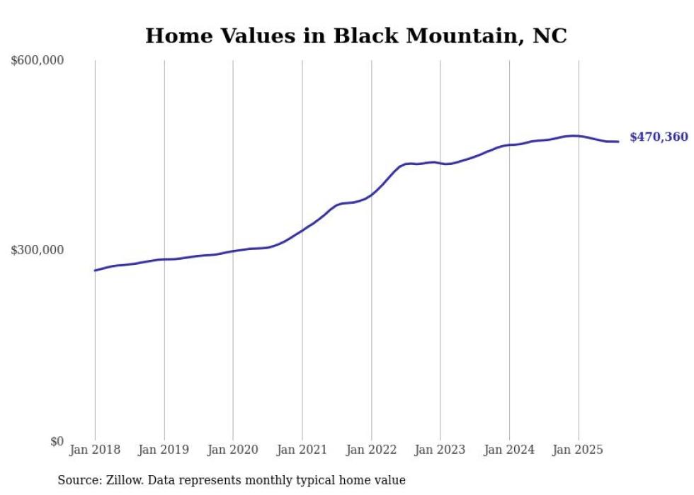 Stacker compiled a list of cities with the most expensive homes in the Asheville, NC metro area using data from Zillow. Charts show the monthly typical home value since January 2018.