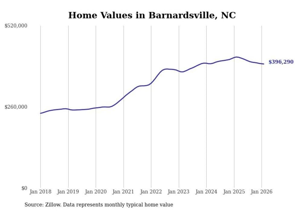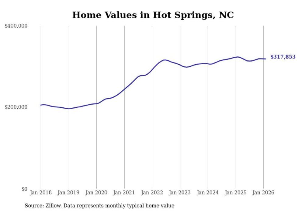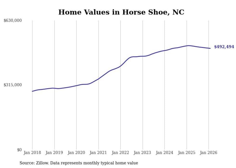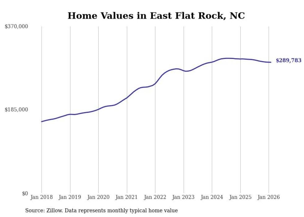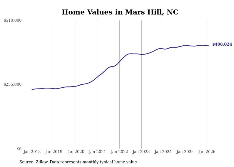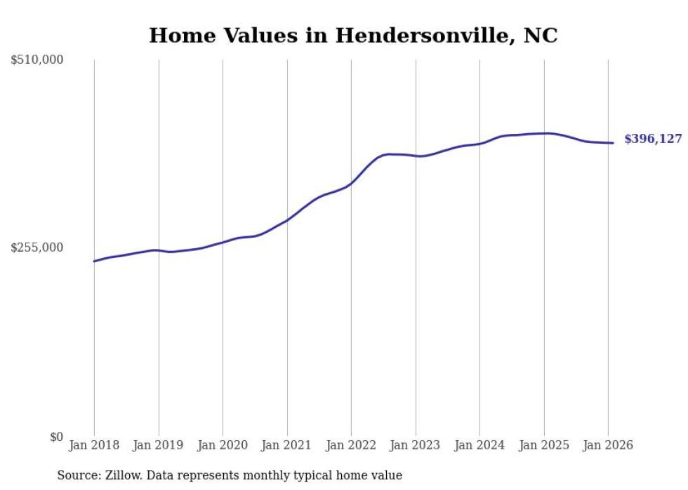 Stacker compiled a list of cities with the most expensive homes in the Asheville, NC metro area using data from Zillow. Charts show the monthly typical home value since January 2018.