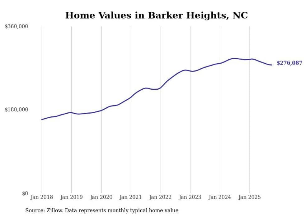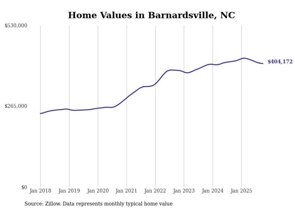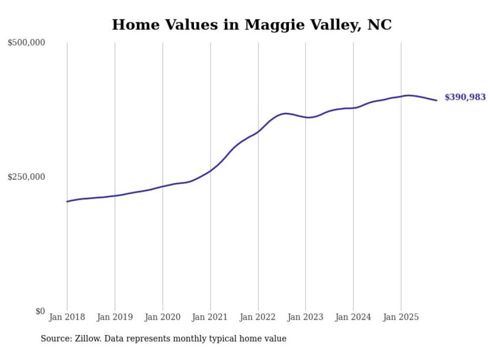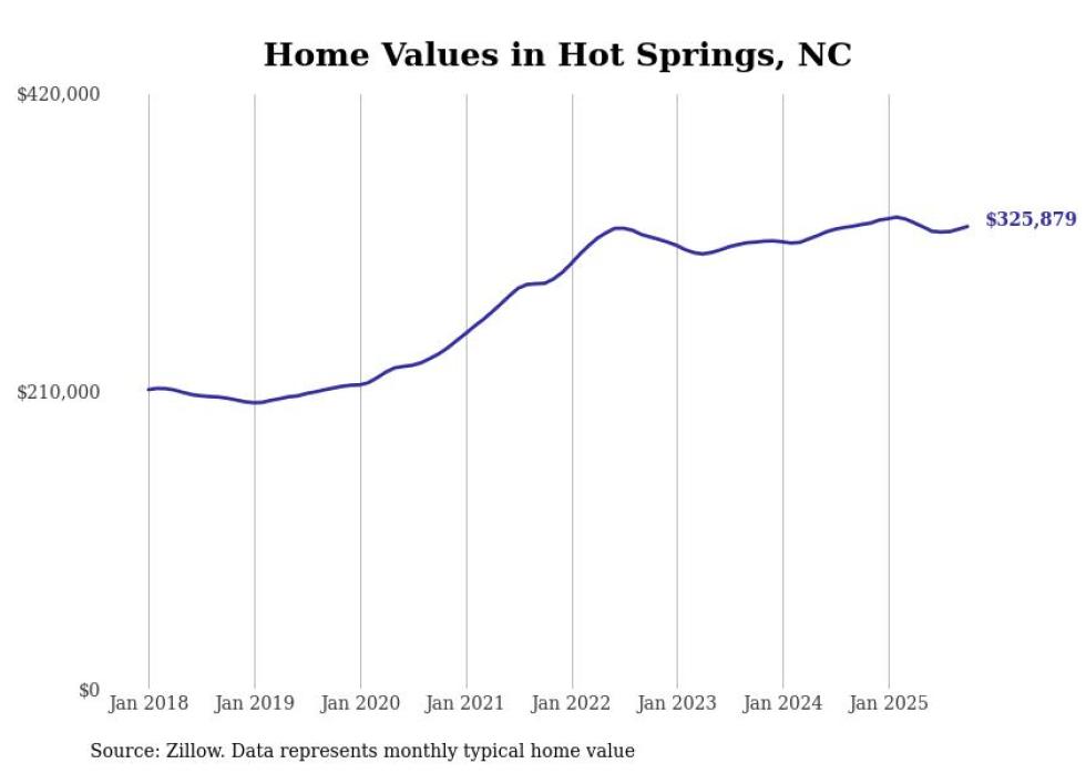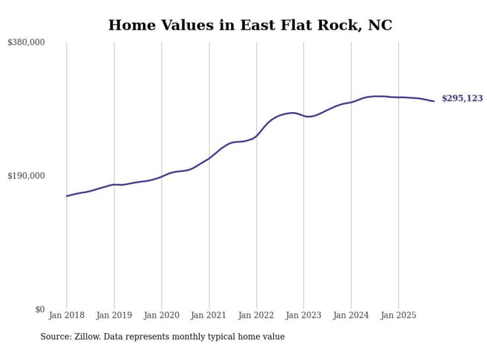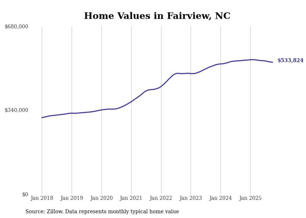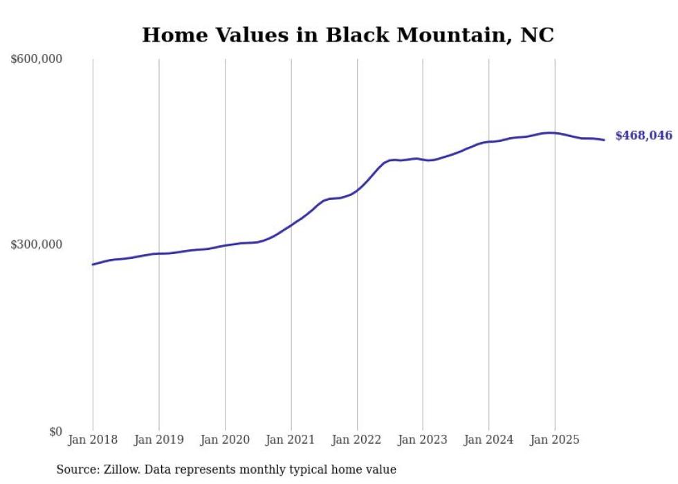 Stacker compiled a list of cities with the most expensive homes in the Asheville metro area using data from Zillow. Charts show the monthly typical home value since January 2018. Data was available for 30 cities and towns.