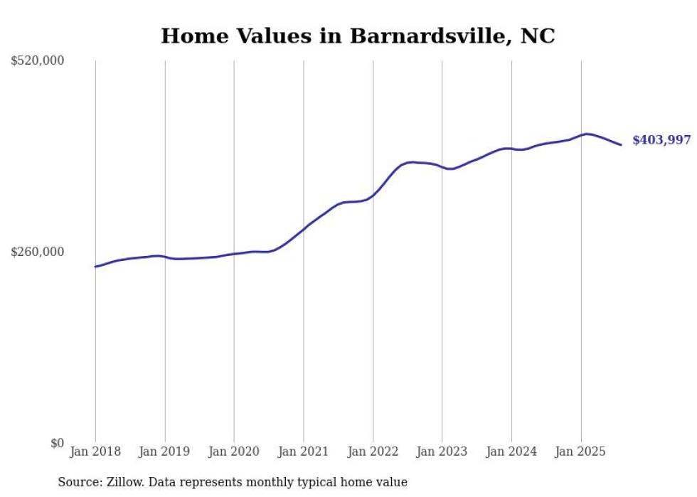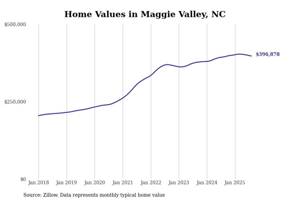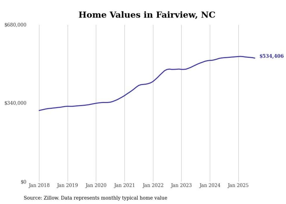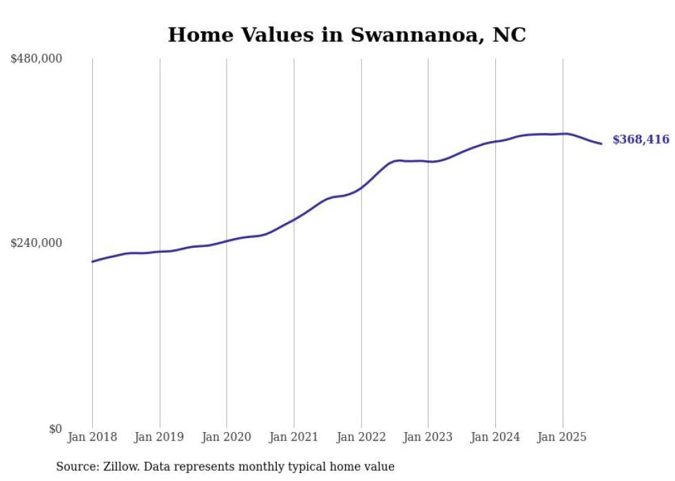 Stacker compiled a list of cities with the most expensive homes in the Asheville metro area using data from Zillow. Charts show the monthly typical home value since January 2018. Data was available for 31 cities and towns.