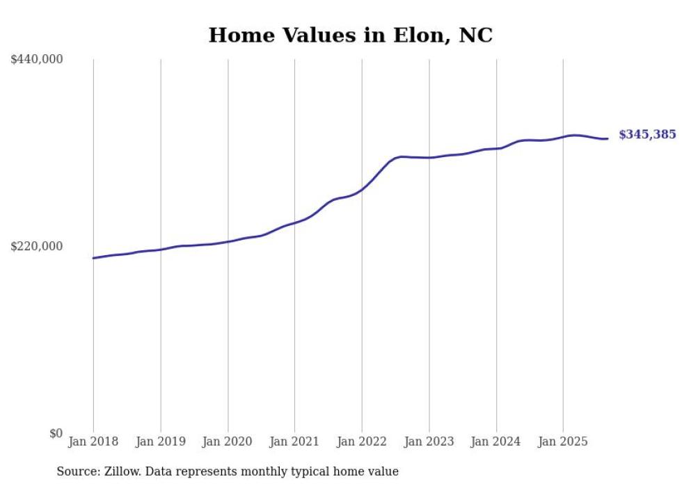 Stacker compiled a list of cities with the most expensive homes in the Burlington, NC metro area using data from Zillow. Charts show the monthly typical home value since January 2018.