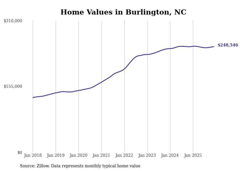 Cities with the most expensive homes in the Burlington, North Carolina metro area
