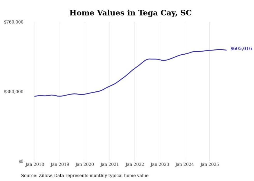 Stacker compiled a list of cities with the most expensive homes in the Charlotte-Concord-Gastonia, NC-SC metro area using data from Zillow. Charts show the monthly typical home value since January 2018.