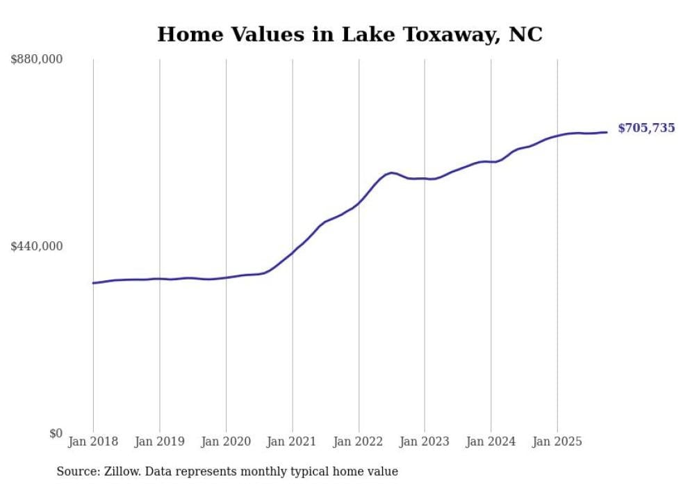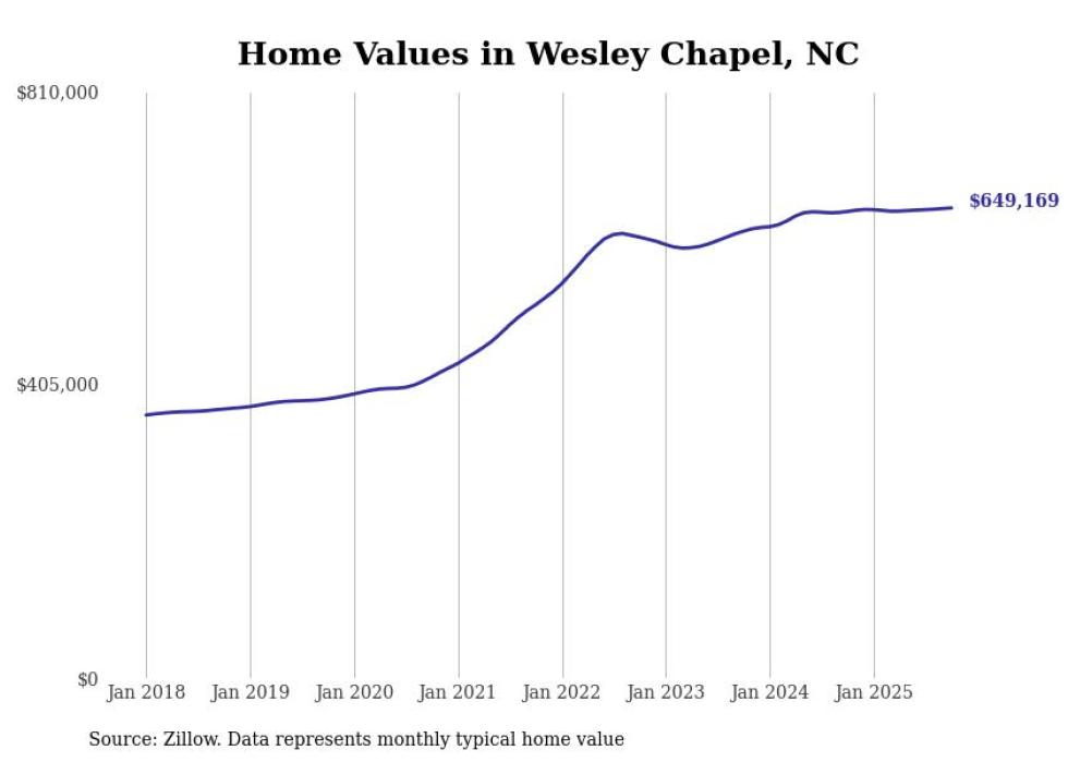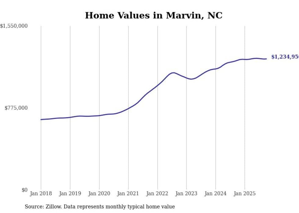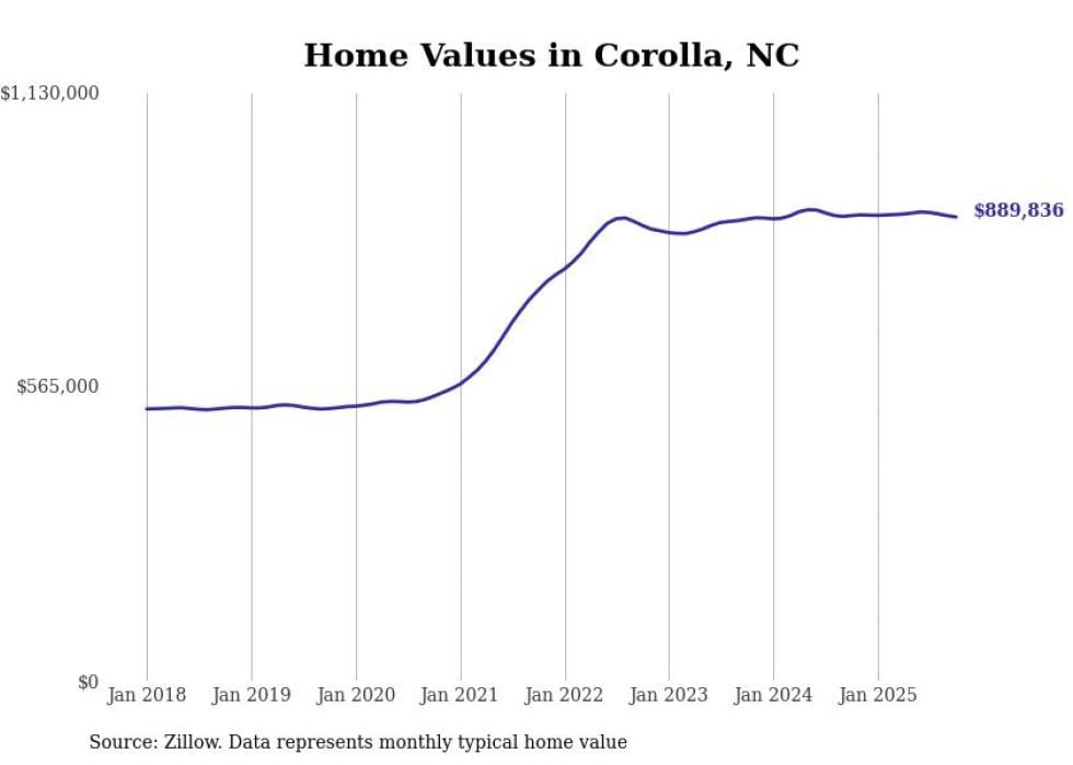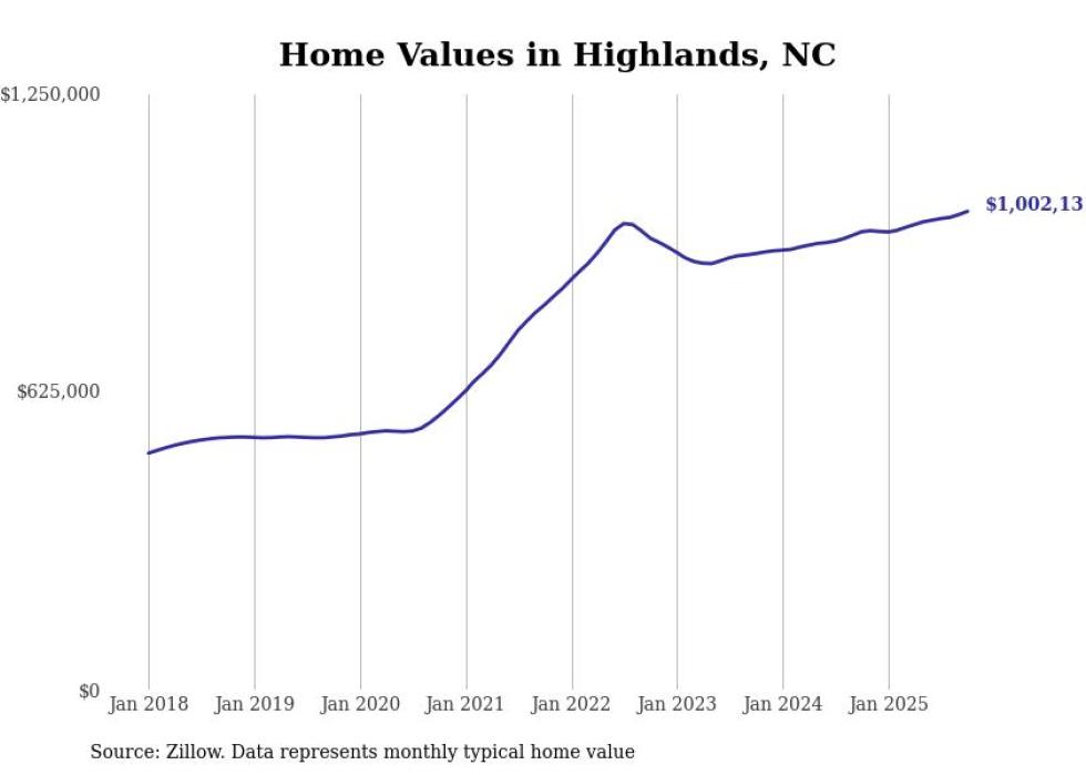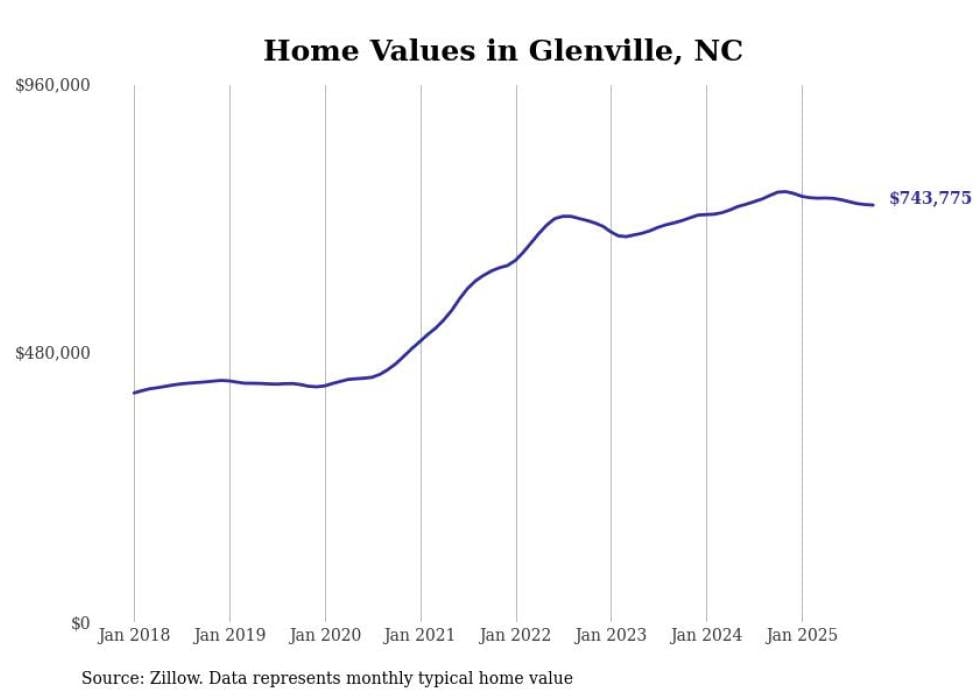 Stacker compiled a list of cities with the most expensive homes in North Carolina using data from Zillow. Cities are ranked by the Zillow Home Values Index for all homes as of October 2025. The charts in this story were created automatically using Matplotlib.