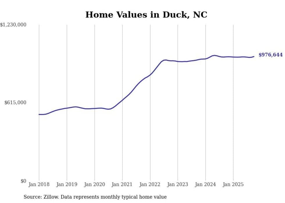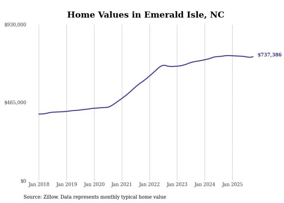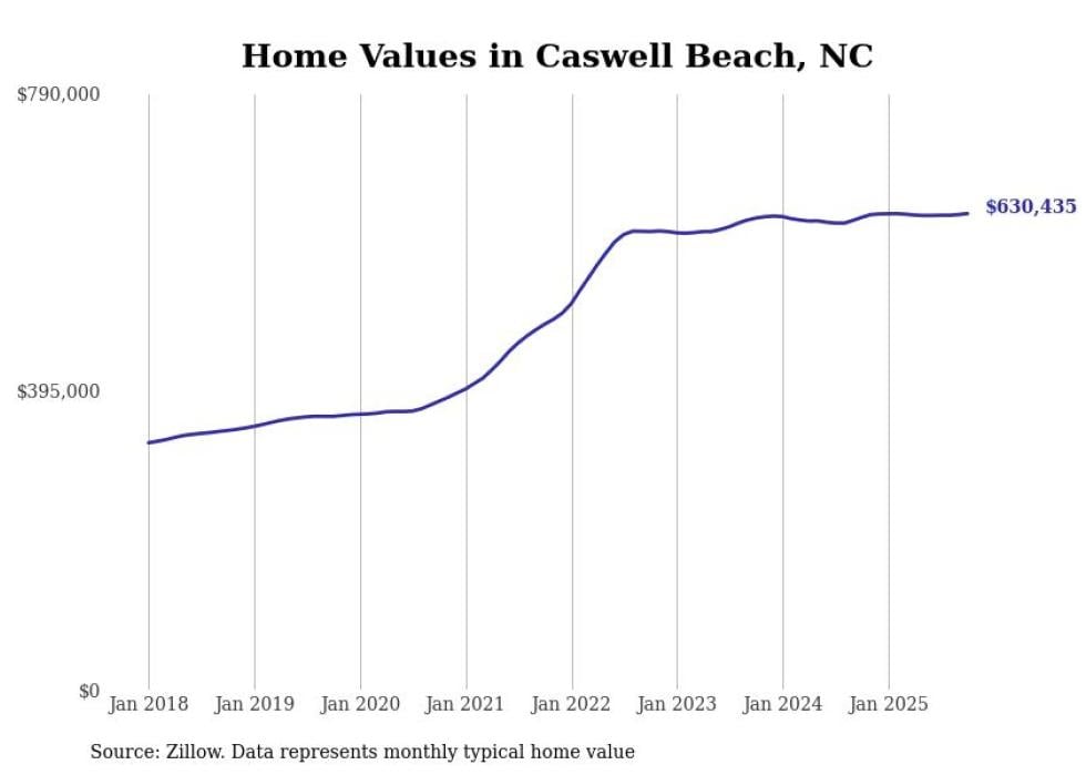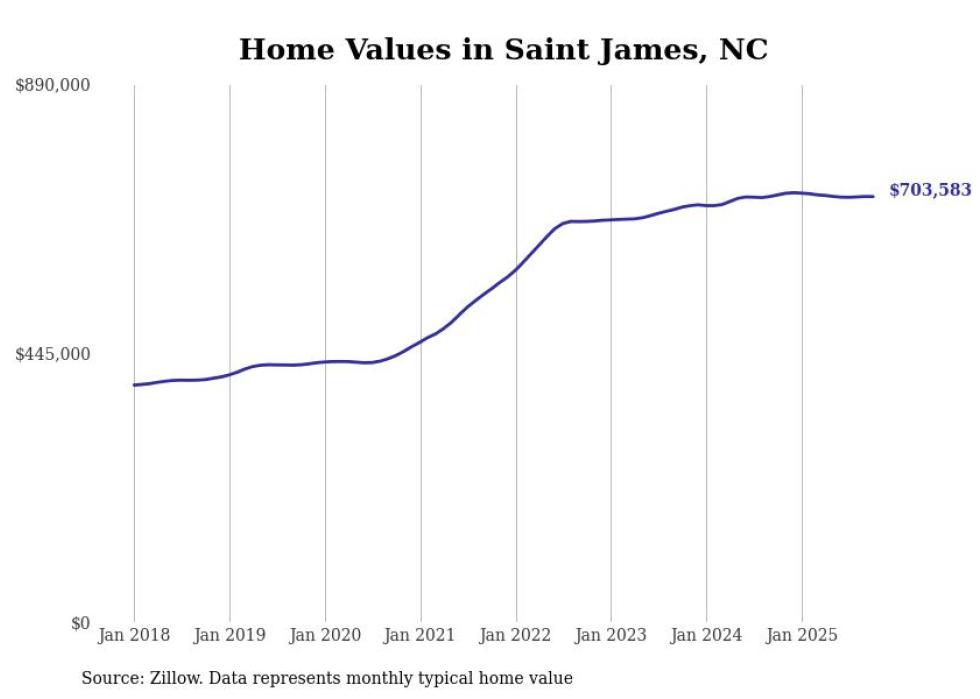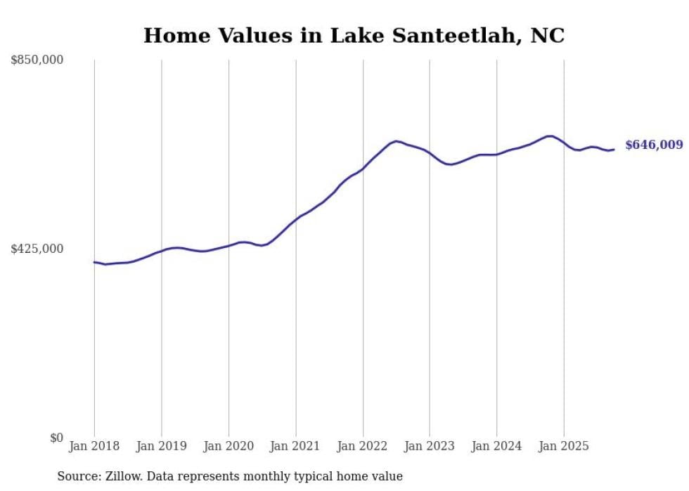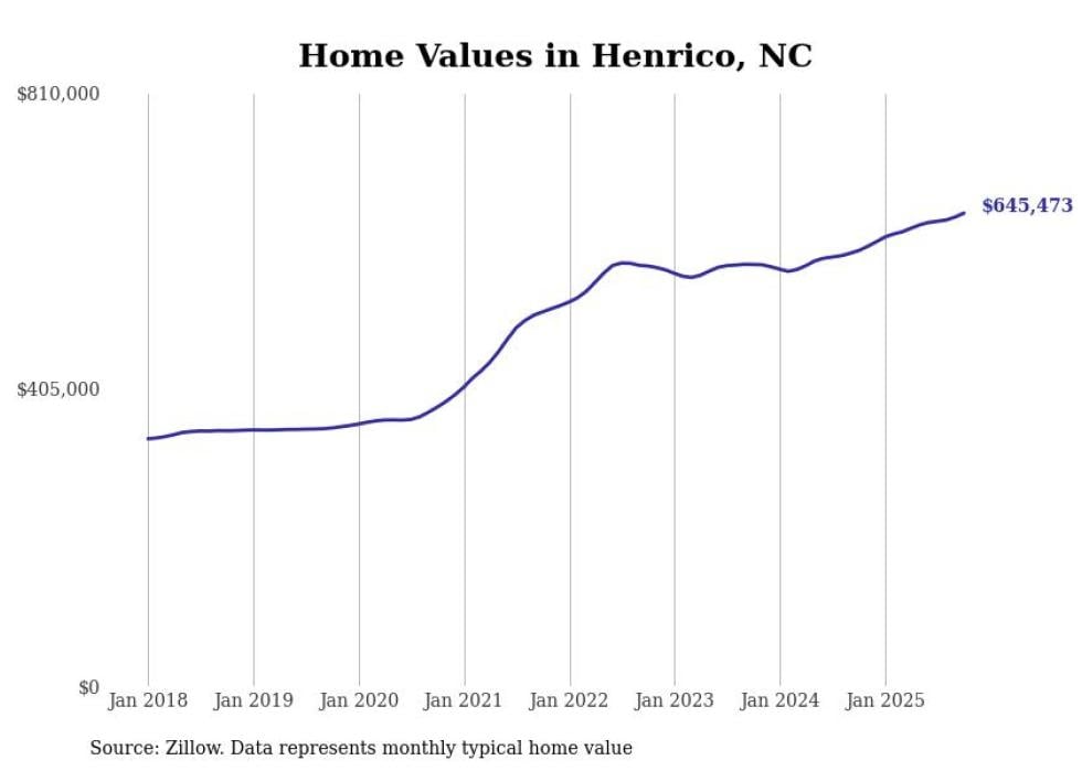 Stacker compiled a list of cities with the most expensive homes in North Carolina using data from Zillow. Cities are ranked by the Zillow Home Values Index for all homes as of October 2025. The charts in this story were created automatically using Matplotlib.