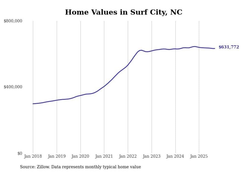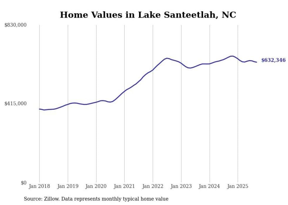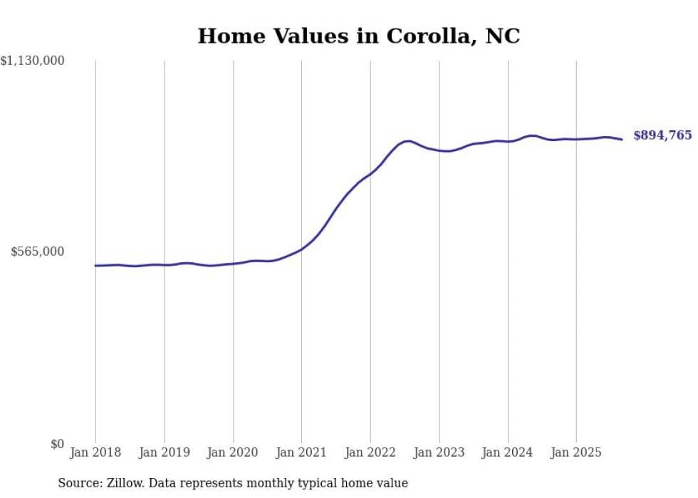 Stacker compiled a list of cities with the most expensive homes in North Carolina using data from Zillow. Cities are ranked by the Zillow Home Values Index for all homes as of September 2025. The charts in this story were created automatically using Matplotlib.