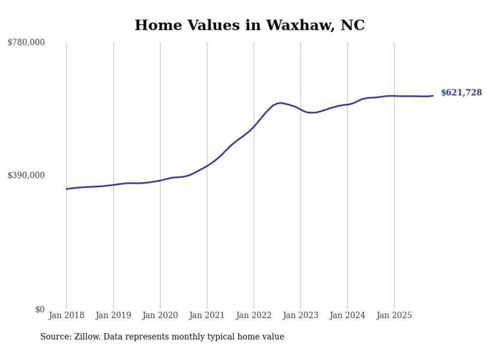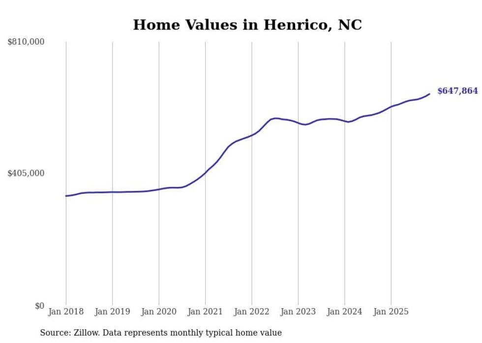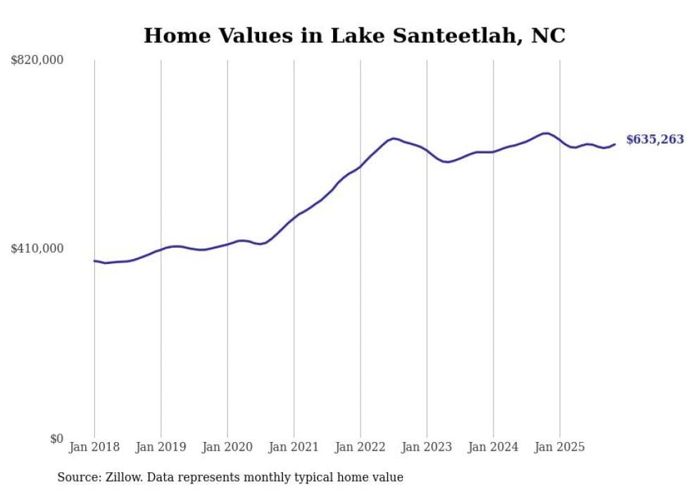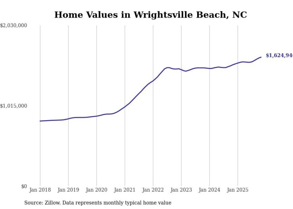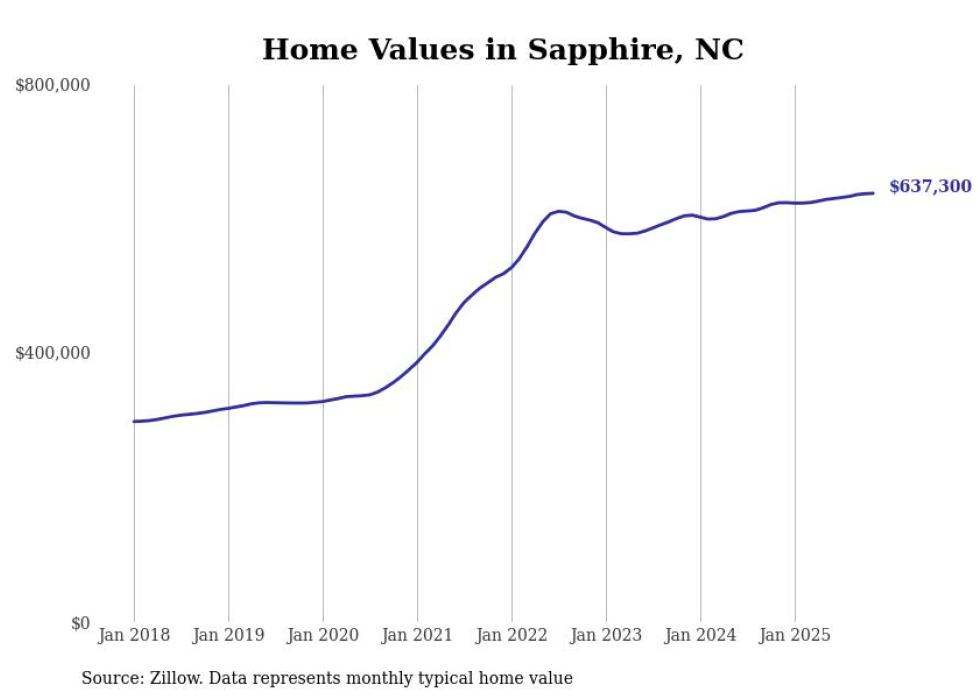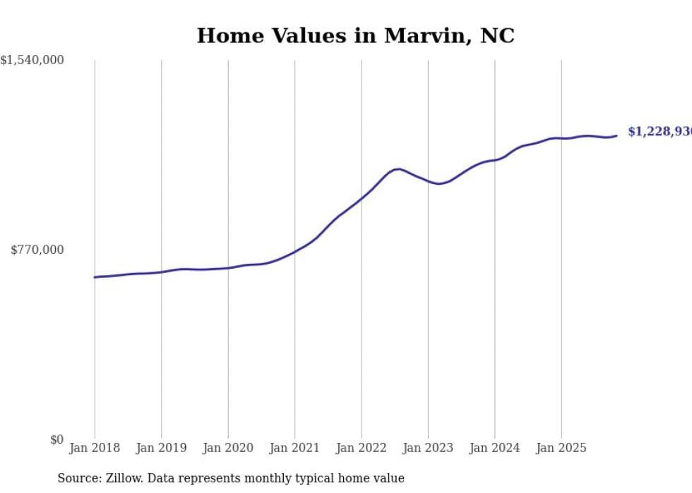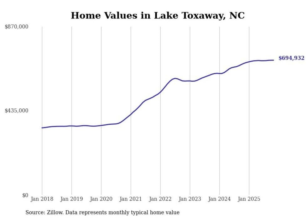 Stacker compiled a list of cities with the most expensive homes in North Carolina using data from Zillow. Cities are ranked by the Zillow Home Values Index for all homes as of November 2025. The charts in this story were created automatically using Matplotlib.