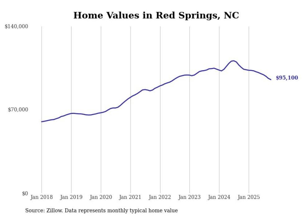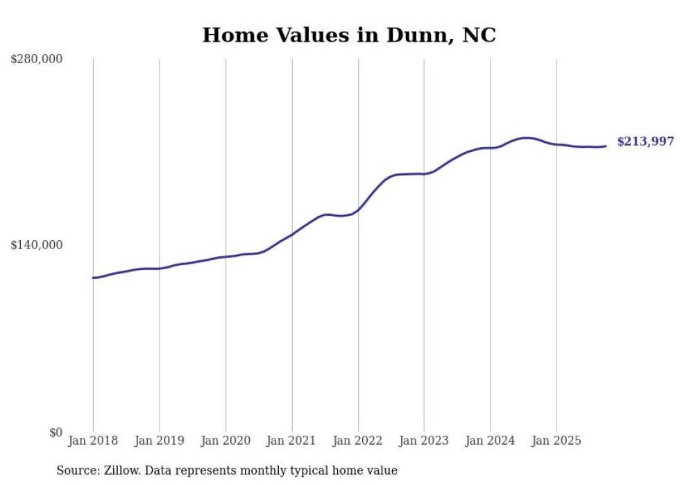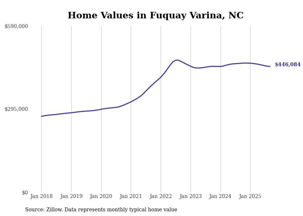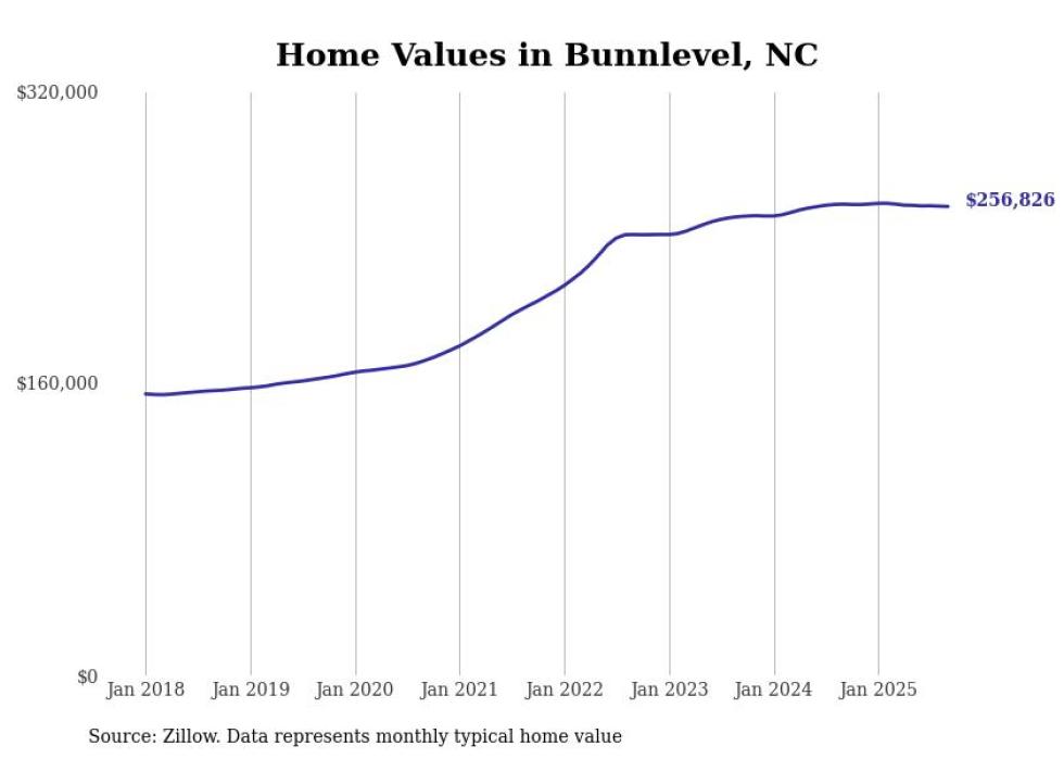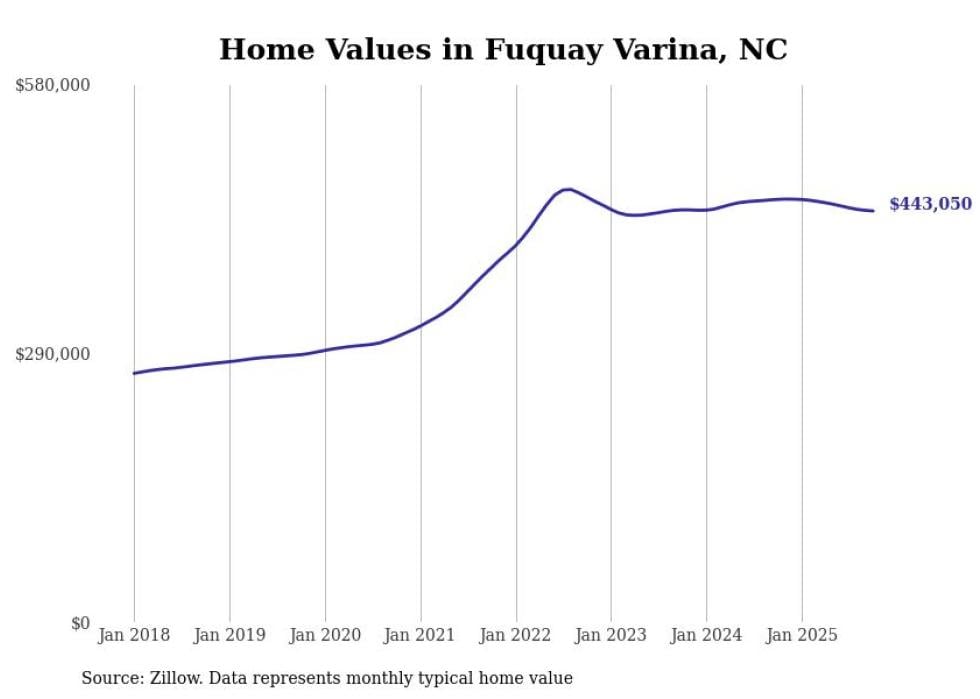 Stacker compiled a list of cities with the most expensive homes in the Fayetteville, NC metro area using data from Zillow. Charts show the monthly typical home value since January 2018.