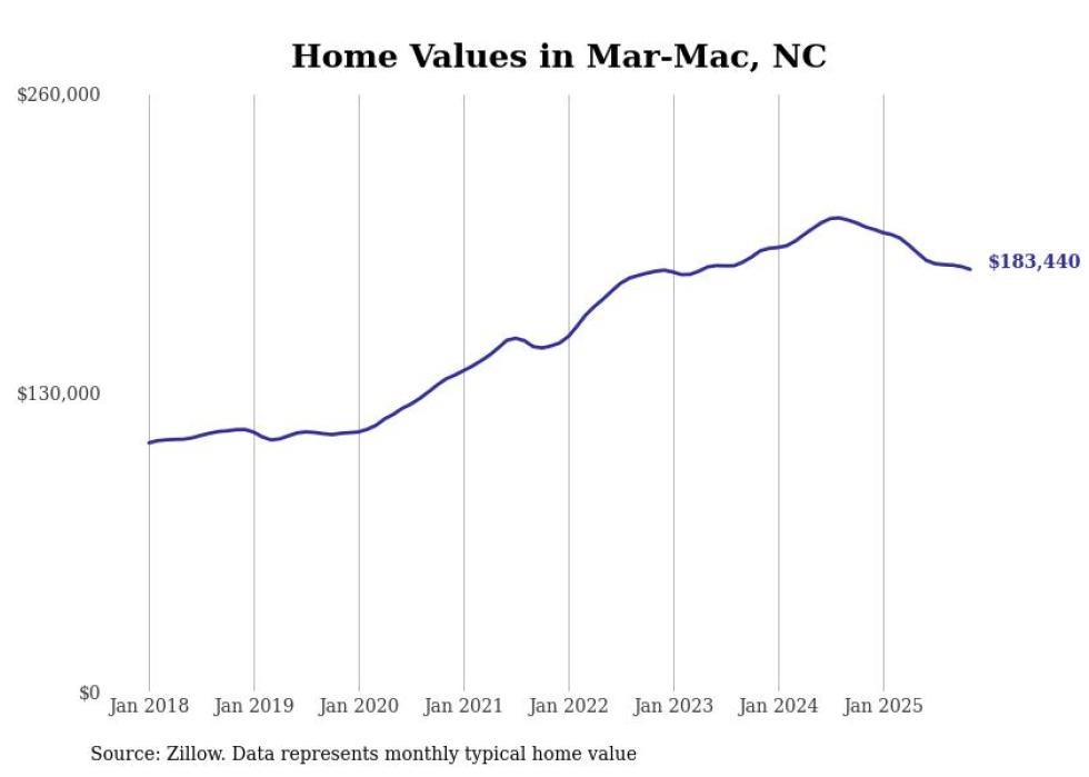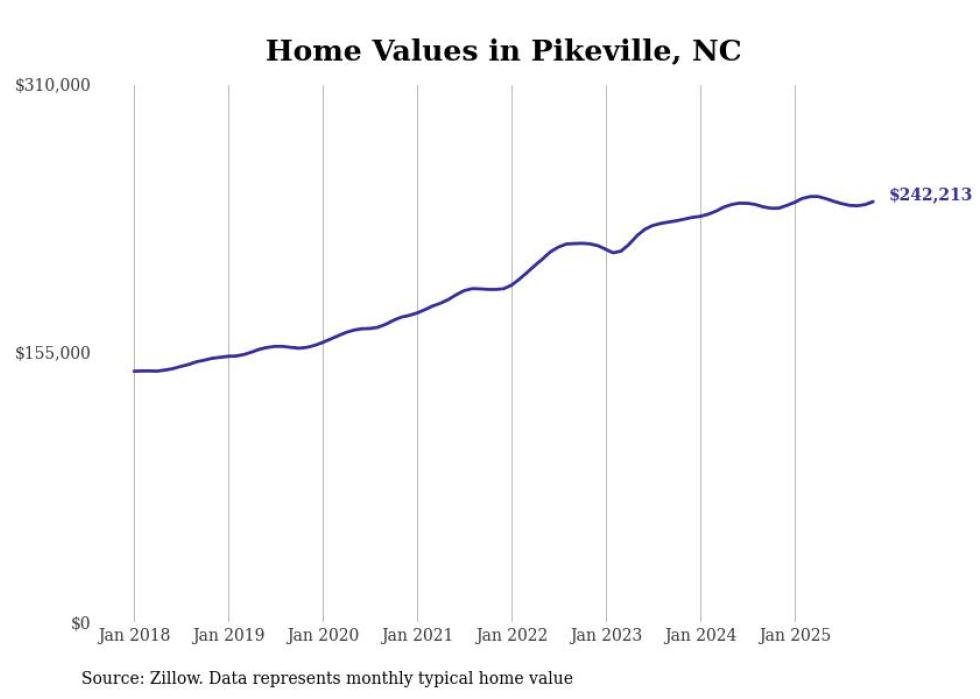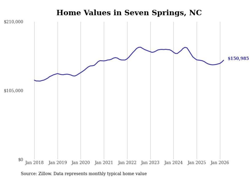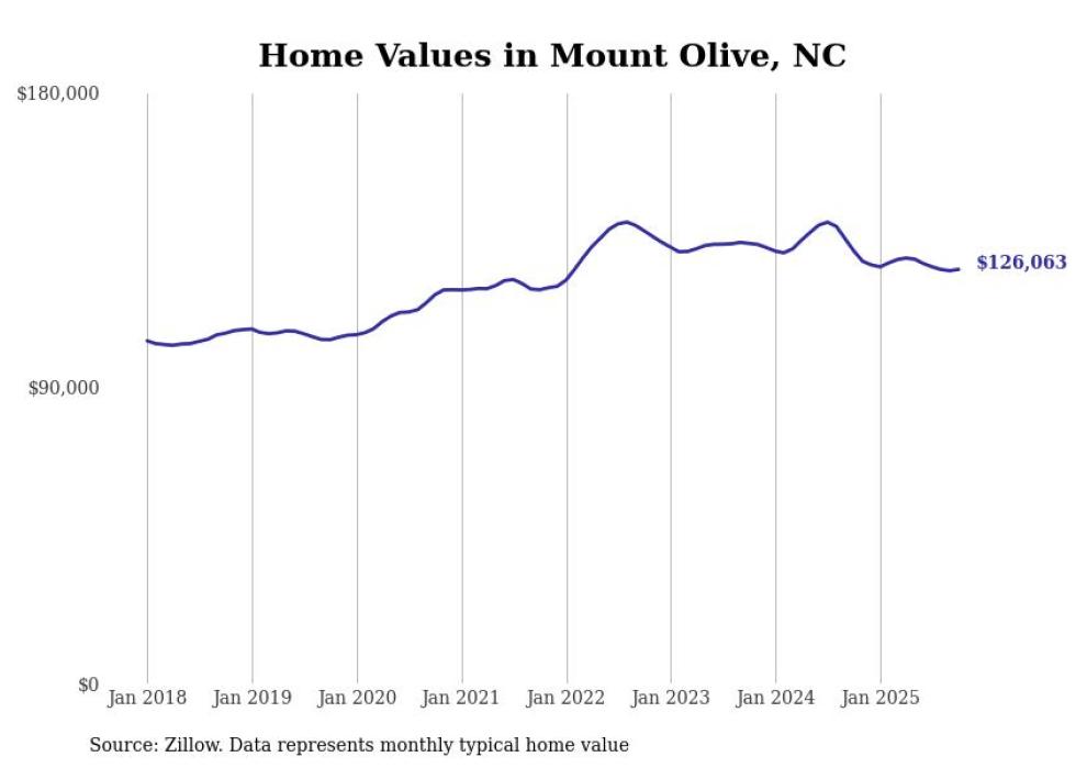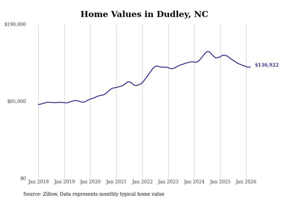 Stacker compiled a list of cities with the most expensive homes in the Goldsboro, NC metro area using data from Zillow. Charts show the monthly typical home value since January 2018.