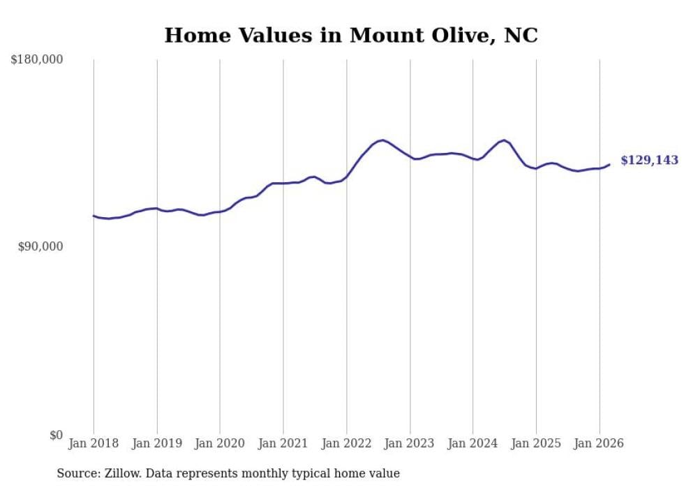 Cities with the fastest-growing home prices in the Goldsboro metro area