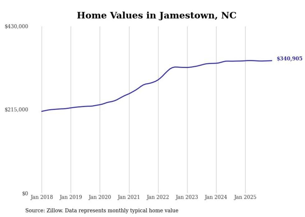 Stacker compiled a list of cities with the most expensive homes in the Greensboro-High Point, NC metro area using data from Zillow. Charts show the monthly typical home value since January 2018.