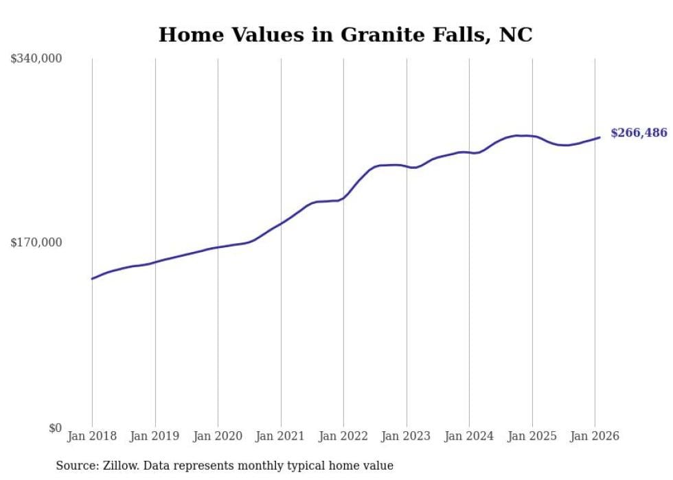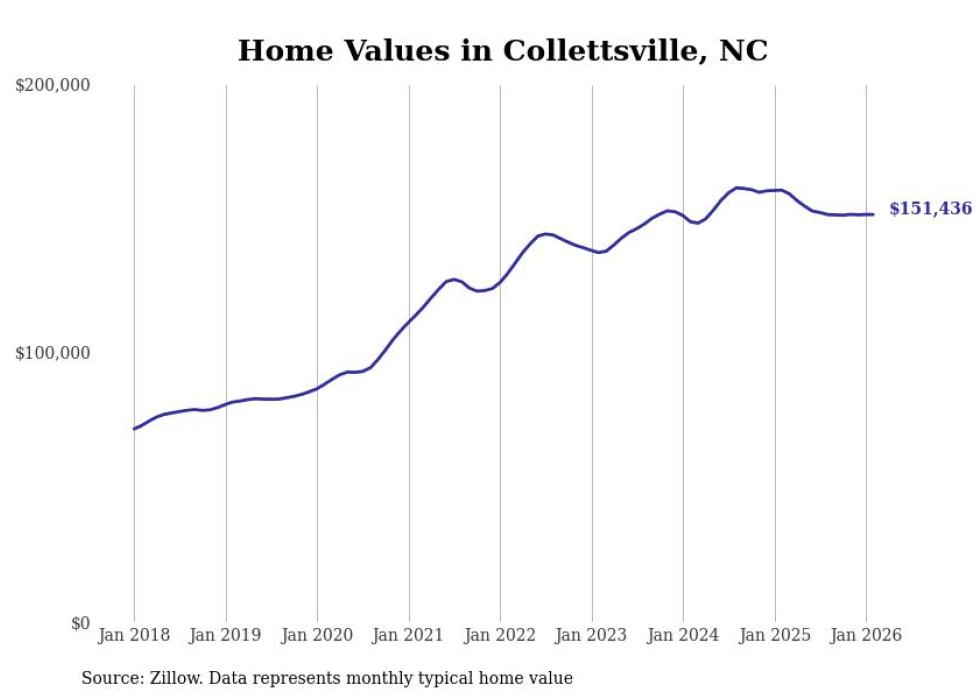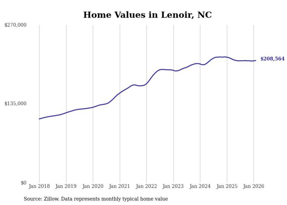 Stacker compiled a list of cities with the most expensive homes in the Hickory-Lenoir-Morganton, NC metro area using data from Zillow. Charts show the monthly typical home value since January 2018.