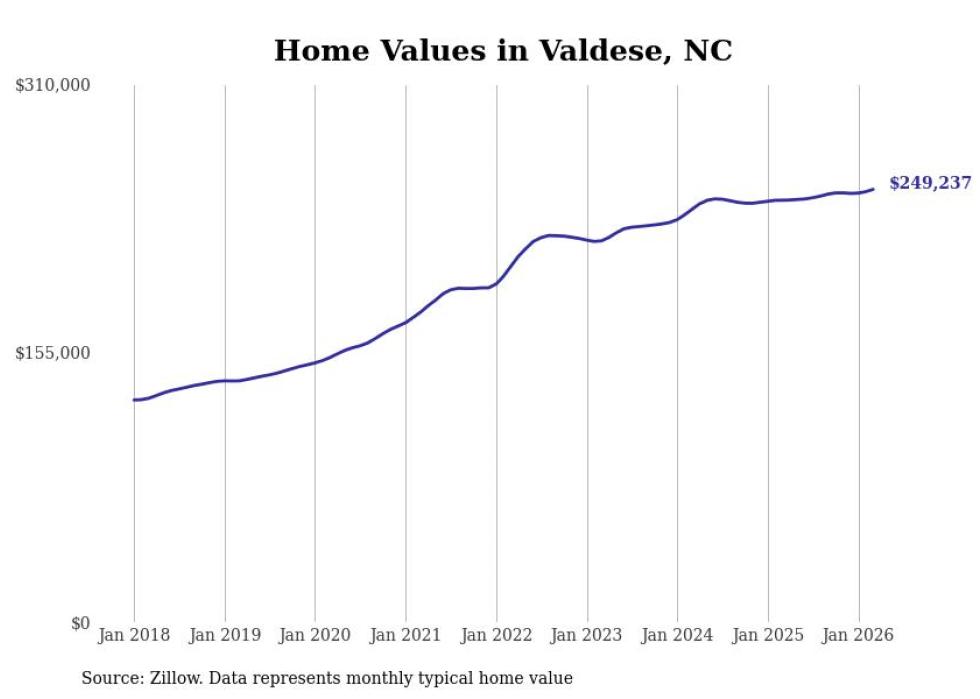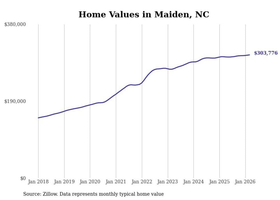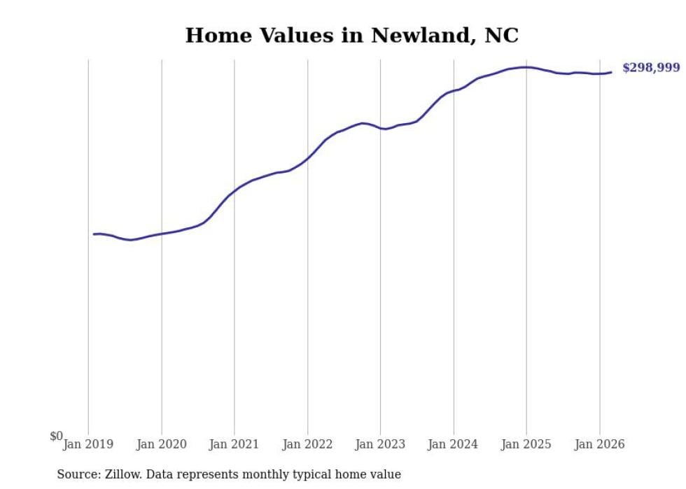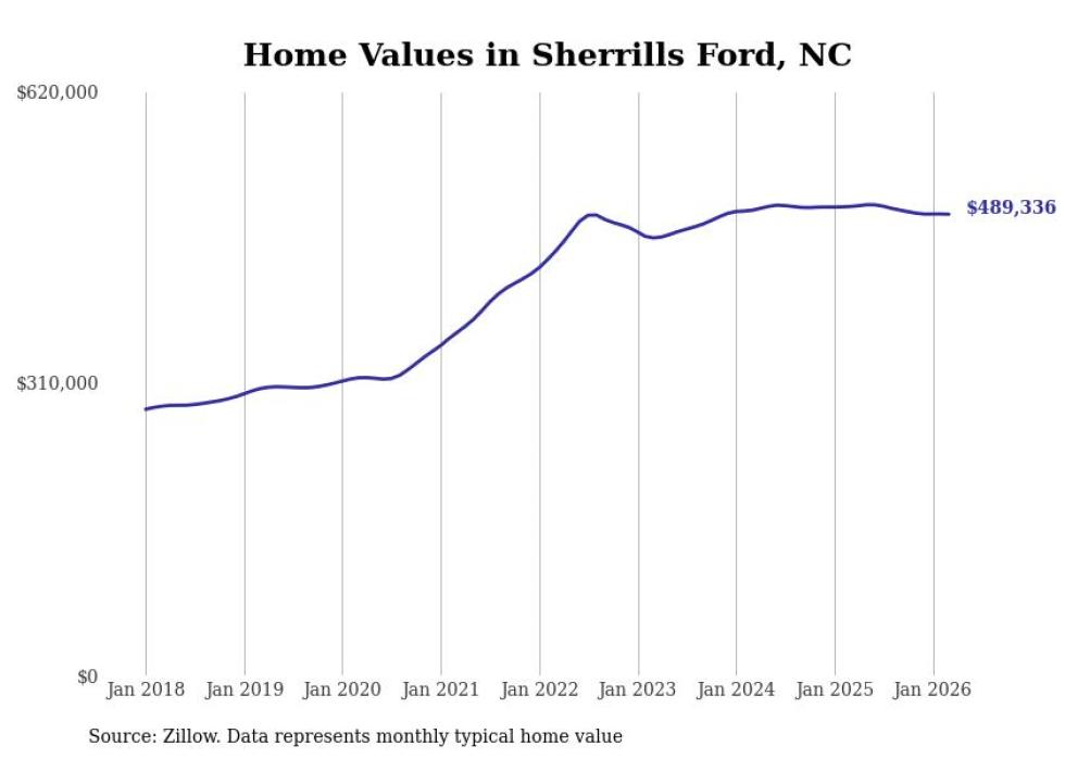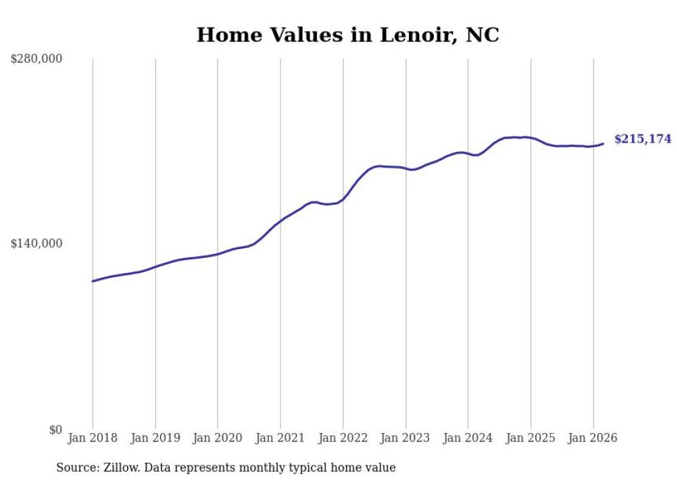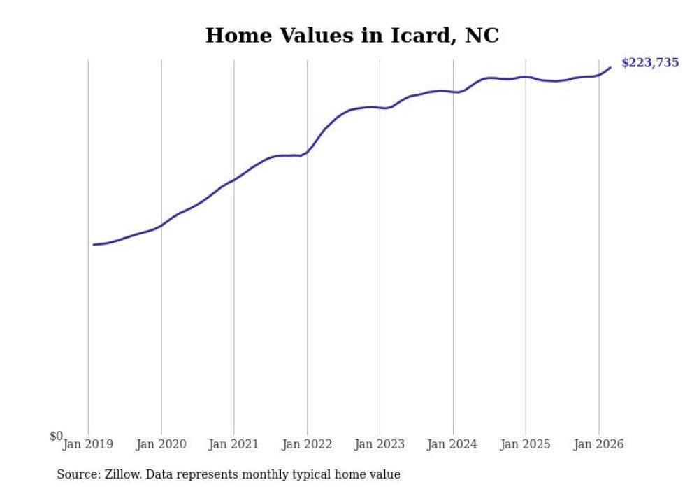 Stacker compiled a list of cities with the most expensive homes in the Hickory metro area using data from Zillow. Charts show the monthly typical home value since January 2018. All 25 cities and towns with data available were included in the list.