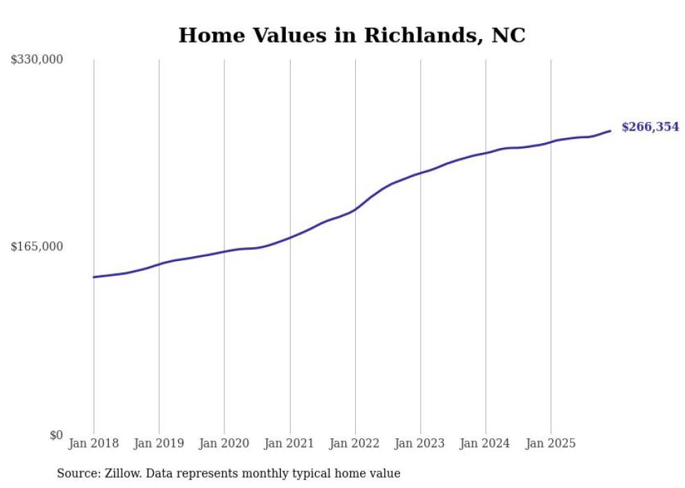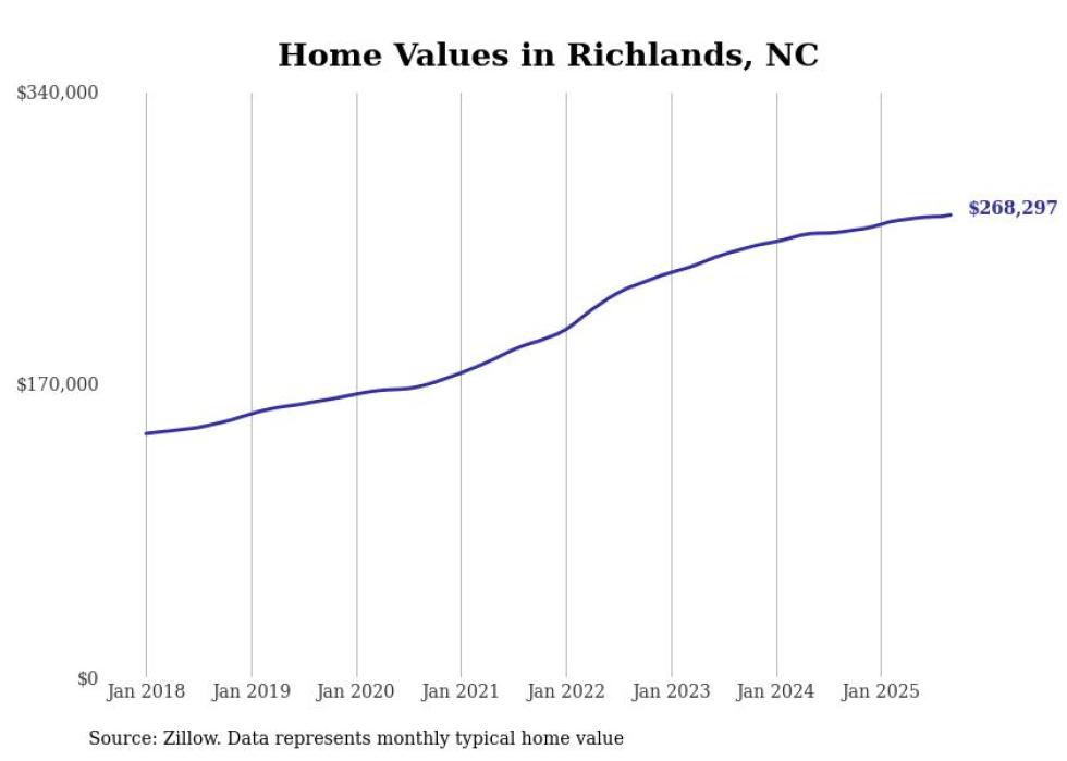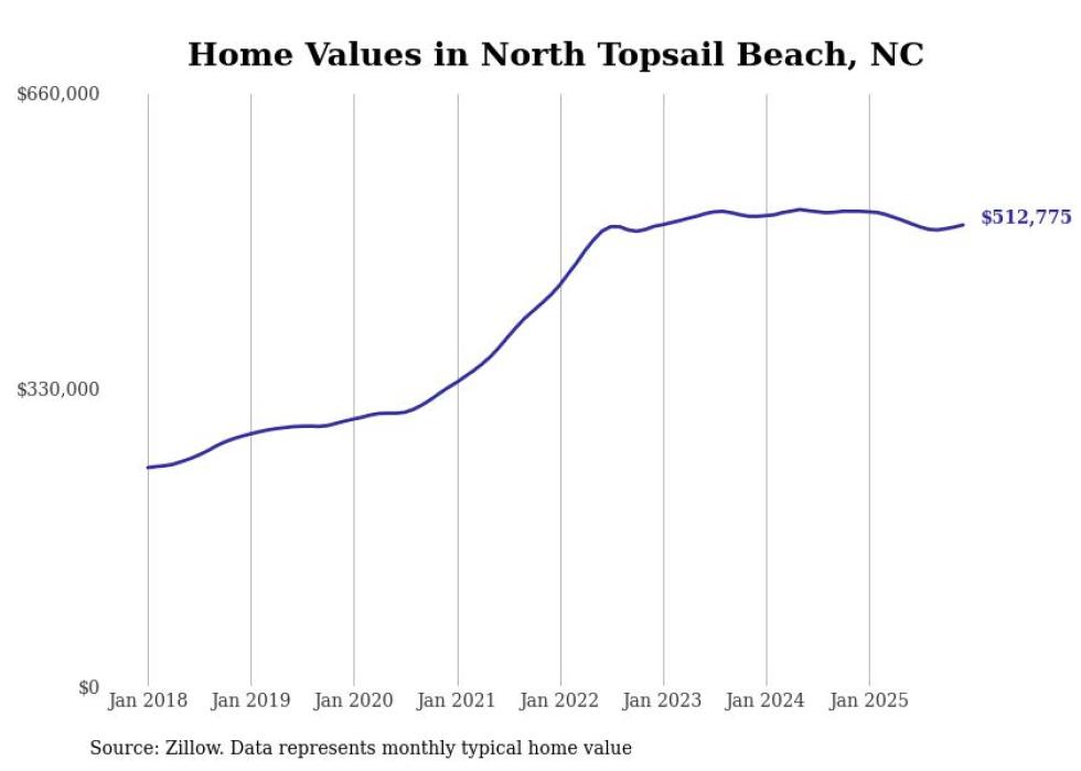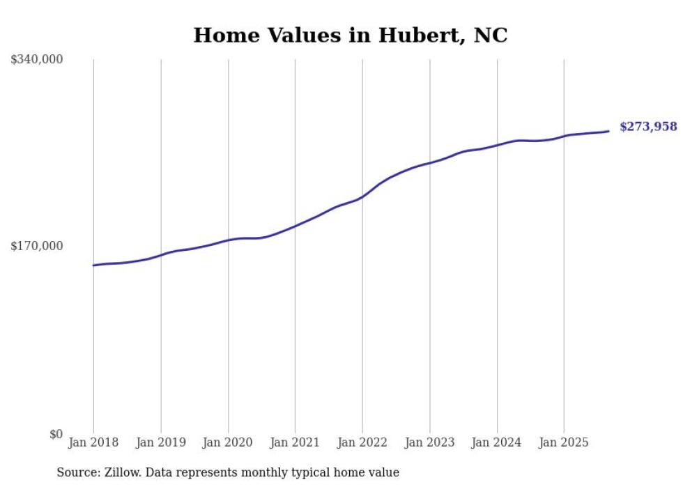 Cities with the fastest-growing home prices in the Jacksonville, North Carolina metro area