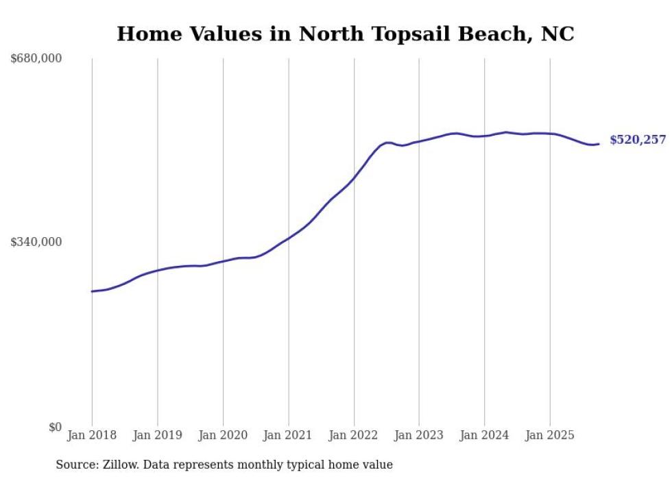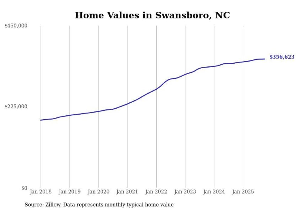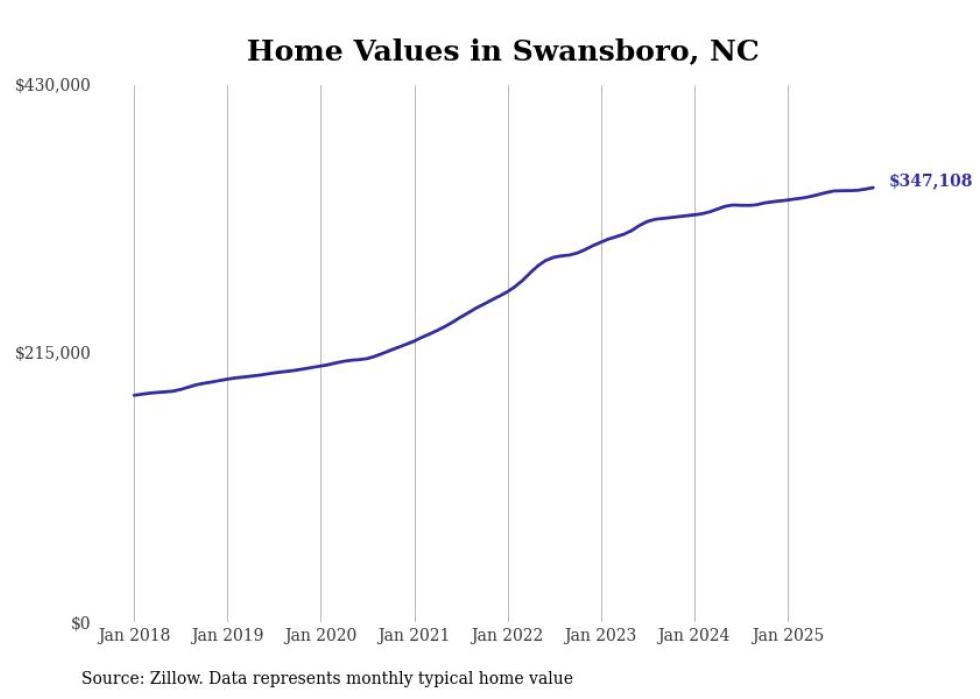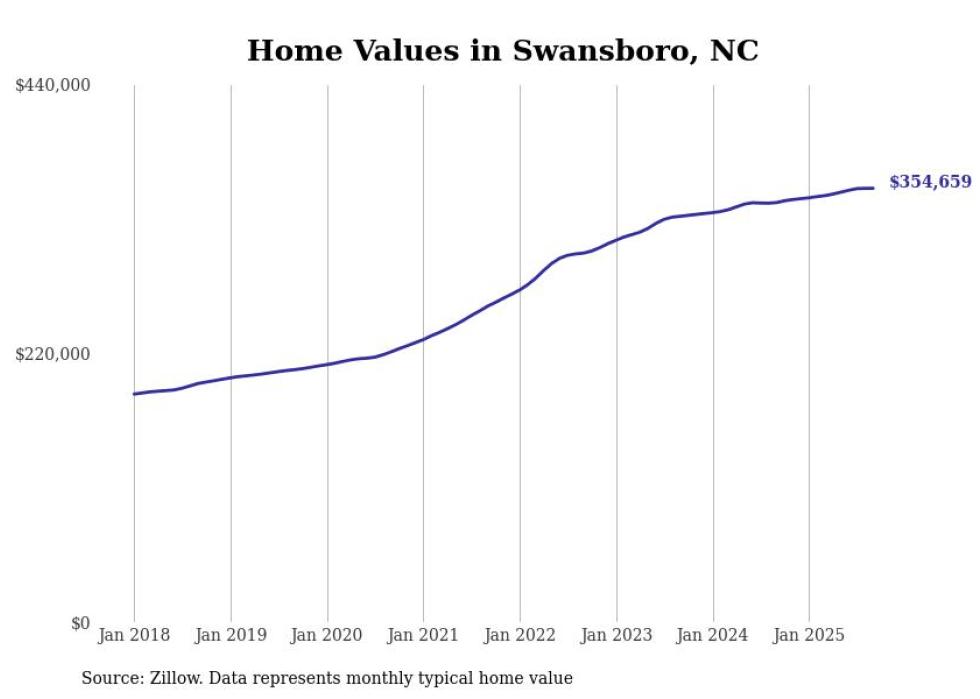 Stacker compiled a list of cities with the most expensive homes in the Jacksonville, NC metro area using data from Zillow. Charts show the monthly typical home value since January 2018.