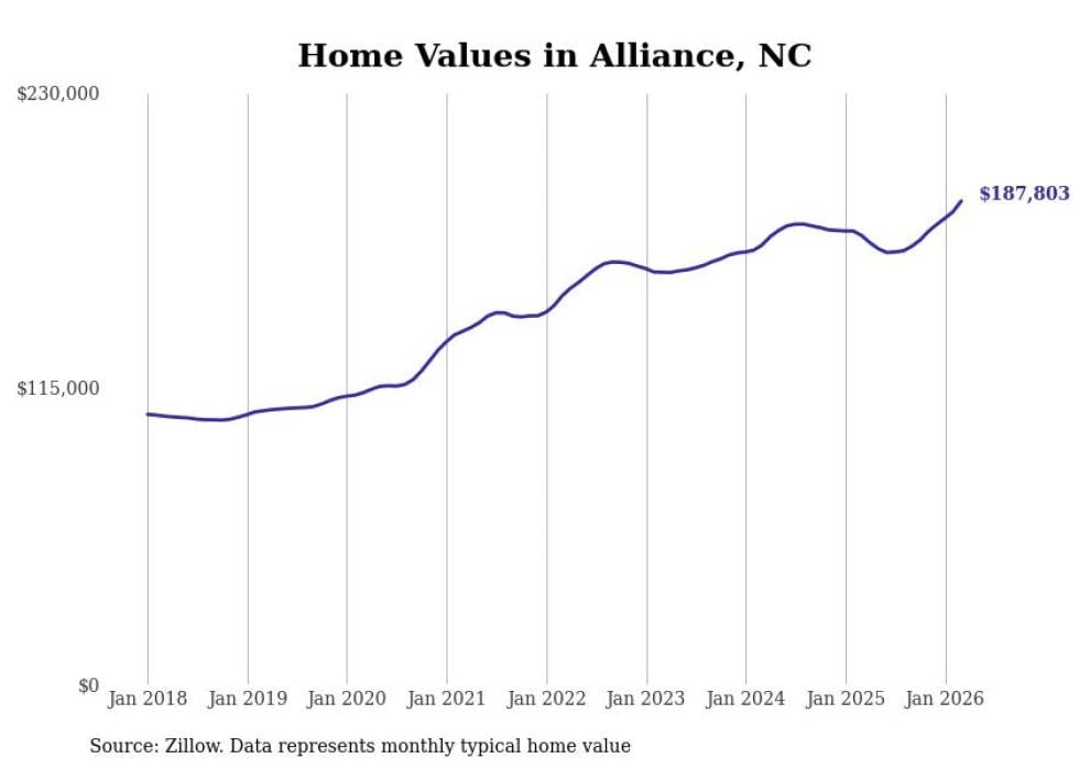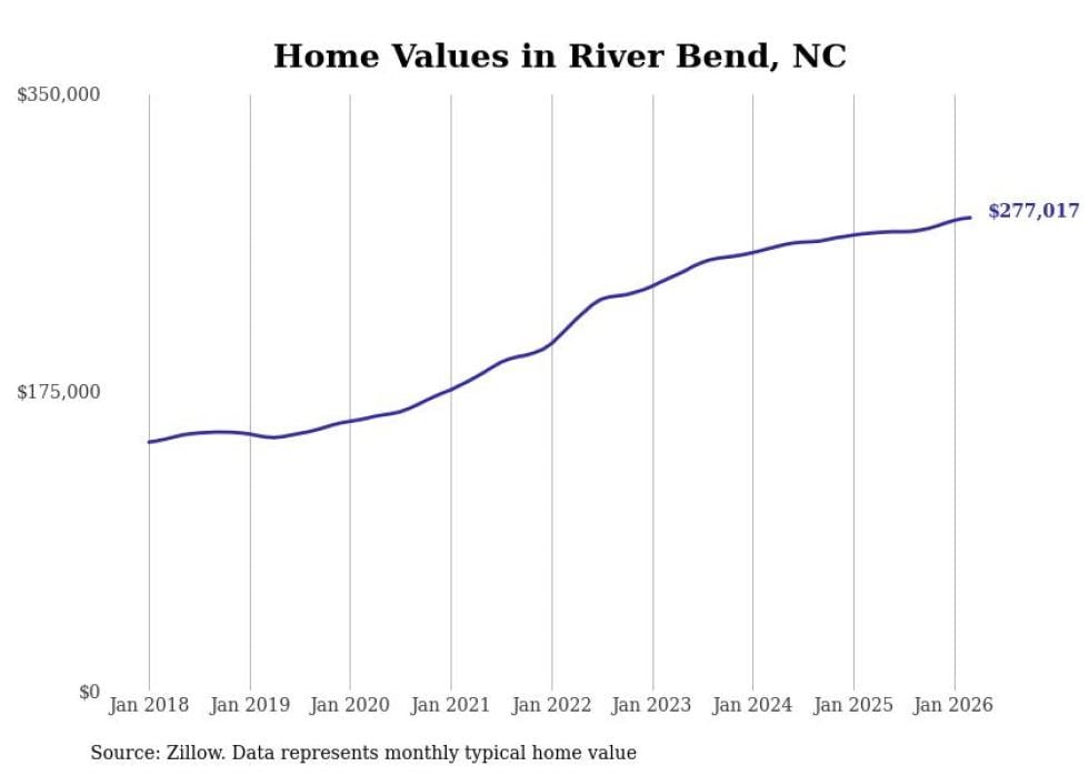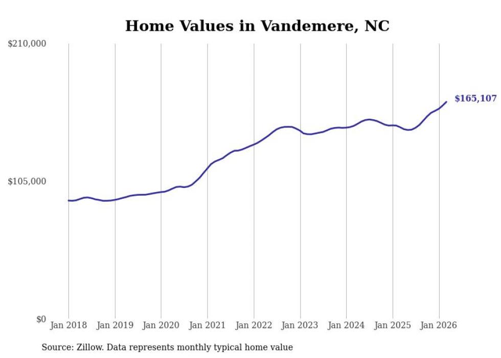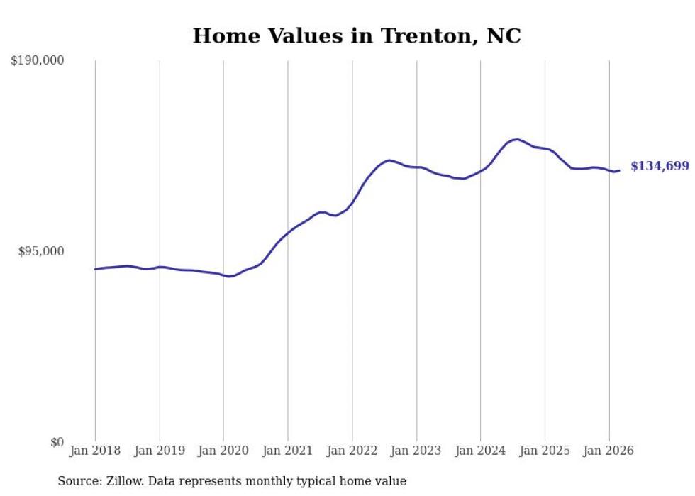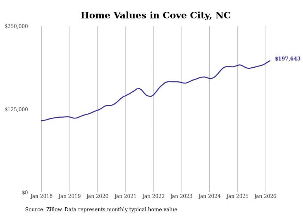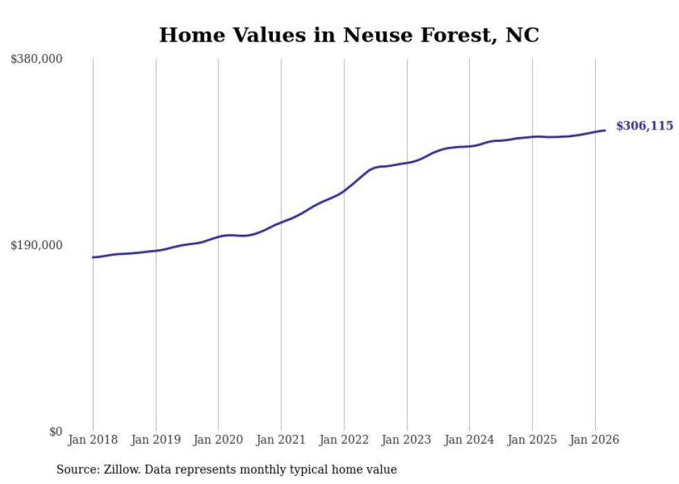 Stacker compiled a list of cities with the most expensive homes in the New Bern, NC metro area using data from Zillow. Charts show the monthly typical home value since January 2018.