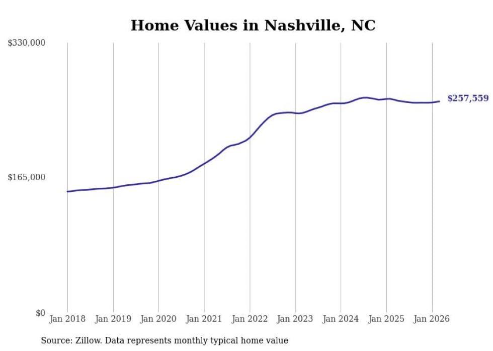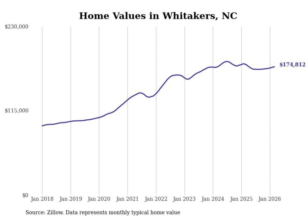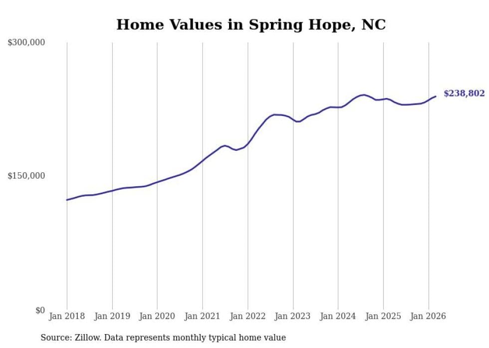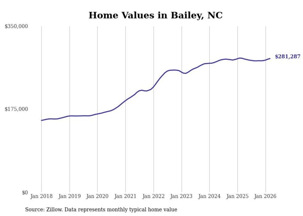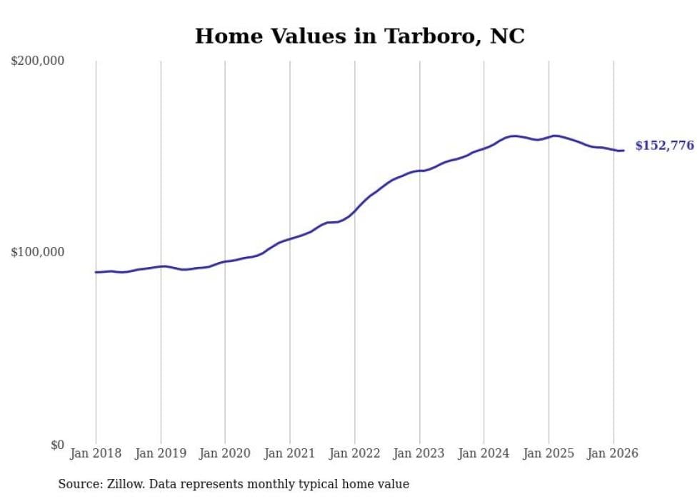 Stacker compiled a list of cities with the most expensive homes in the Rocky Mount, NC metro area using data from Zillow. Charts show the monthly typical home value since January 2018.
