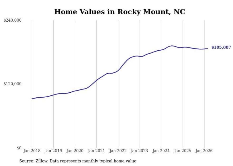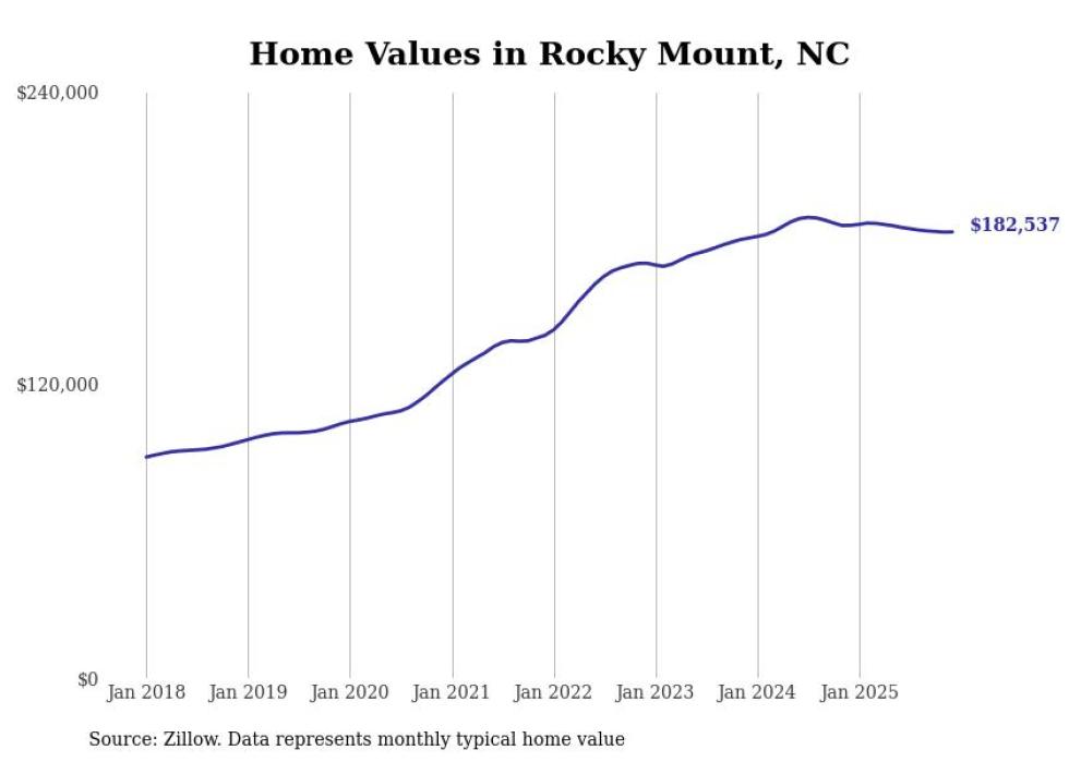 Cities with the fastest-growing home prices in the Rocky Mount metro area