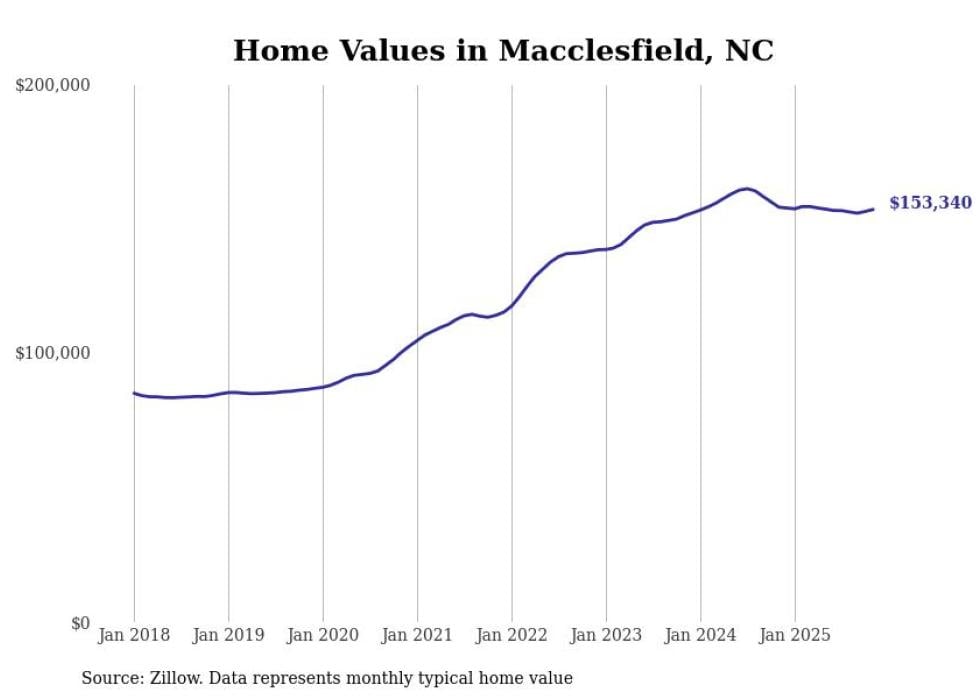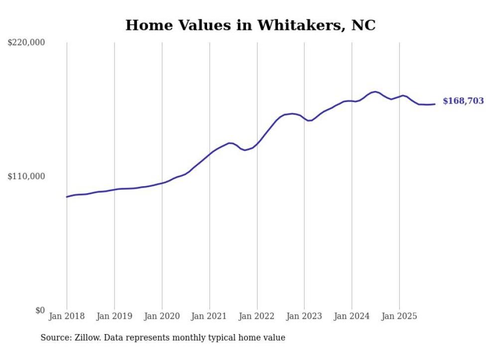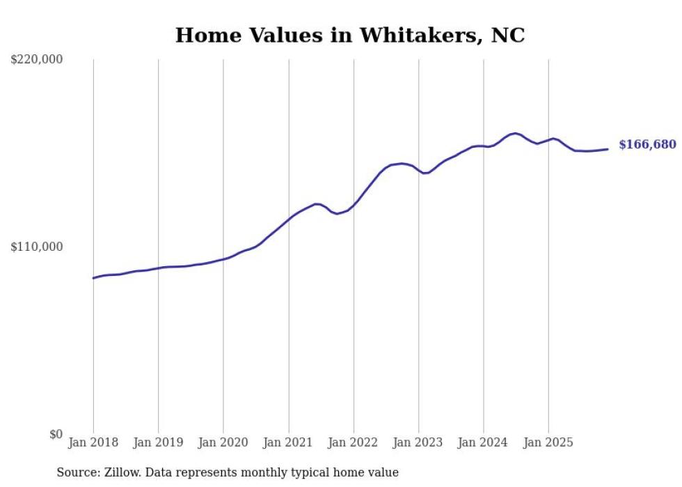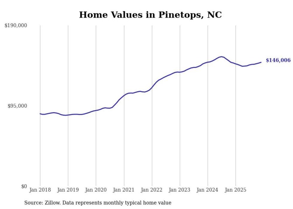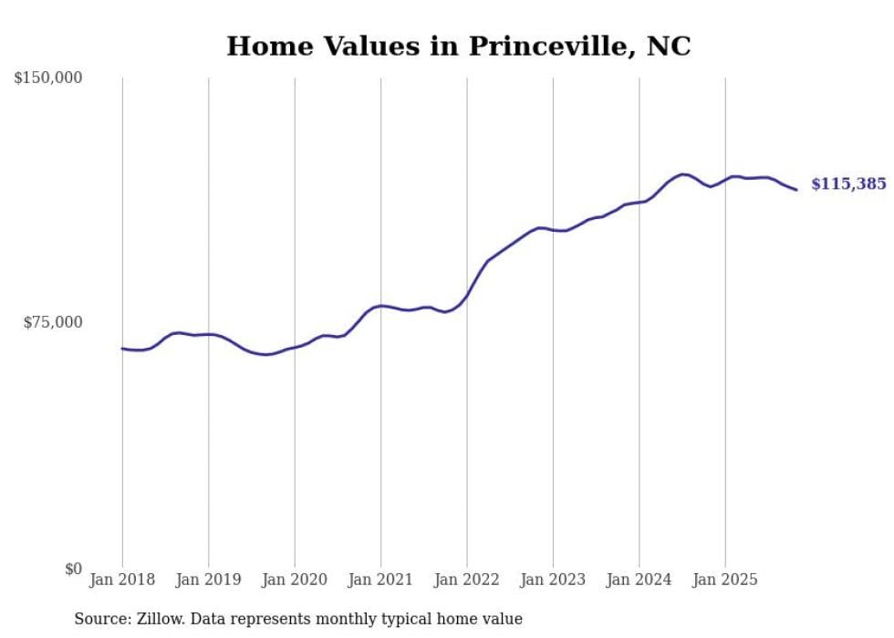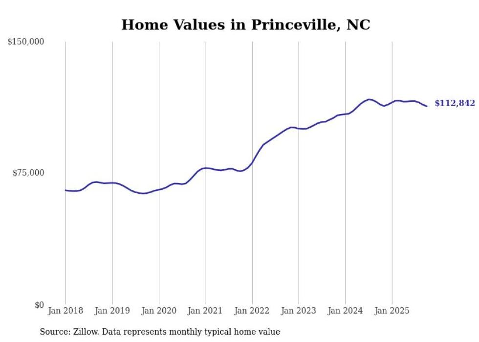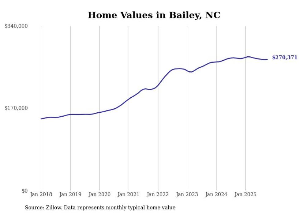 Stacker compiled a list of cities with the most expensive homes in the Rocky Mount metro area using data from Zillow. Charts show the monthly typical home value since January 2018. All 13 cities and towns with data available were included in the list.