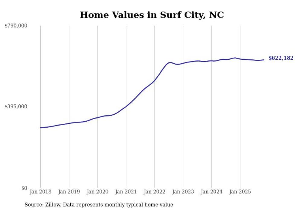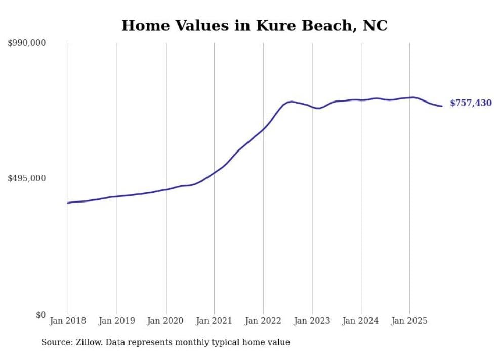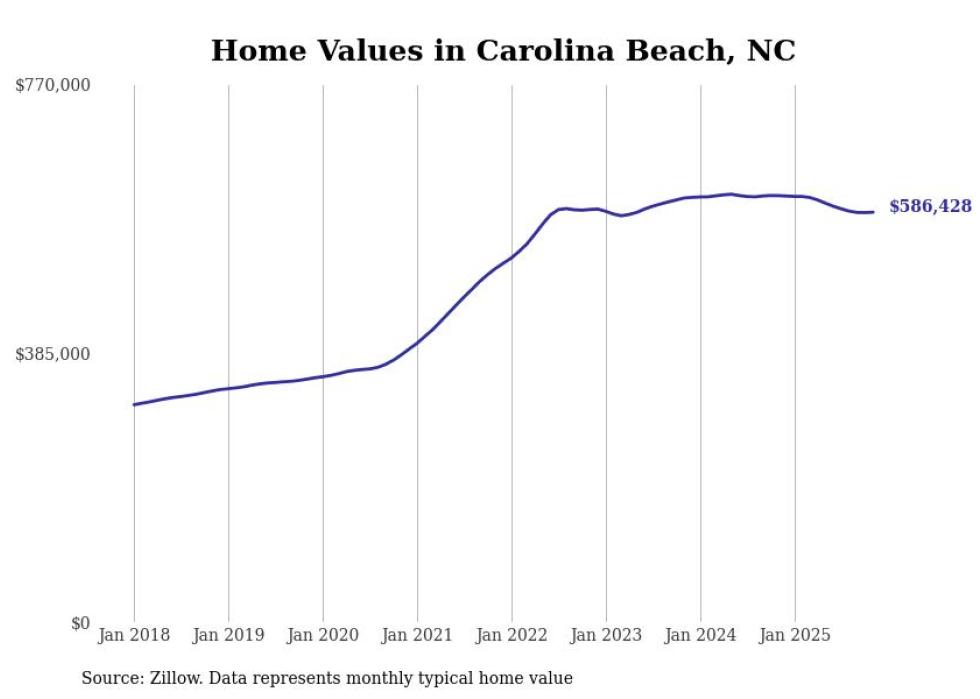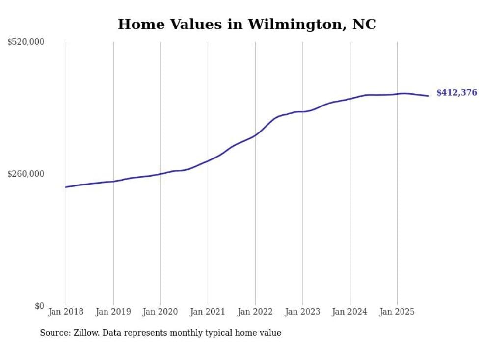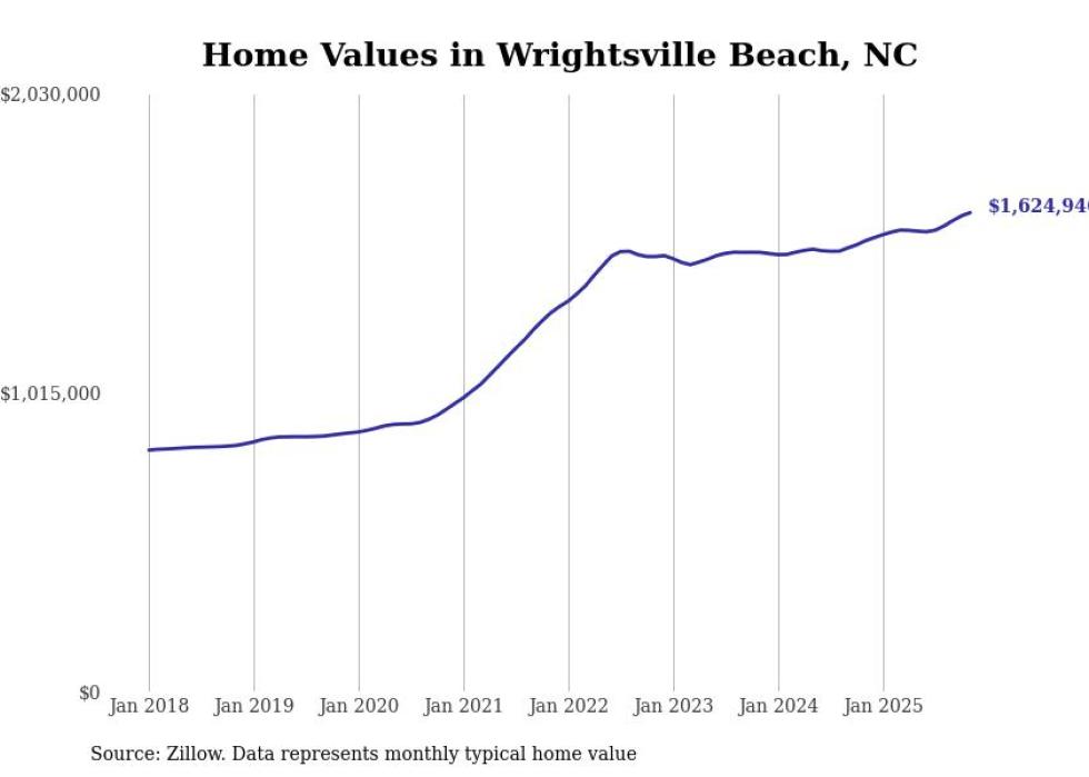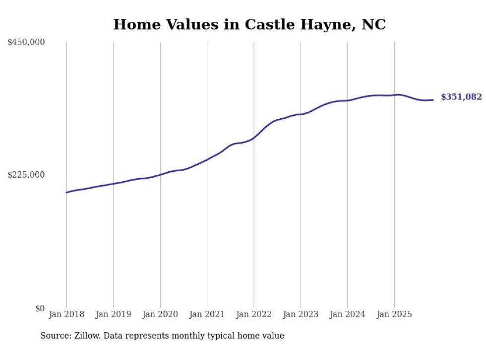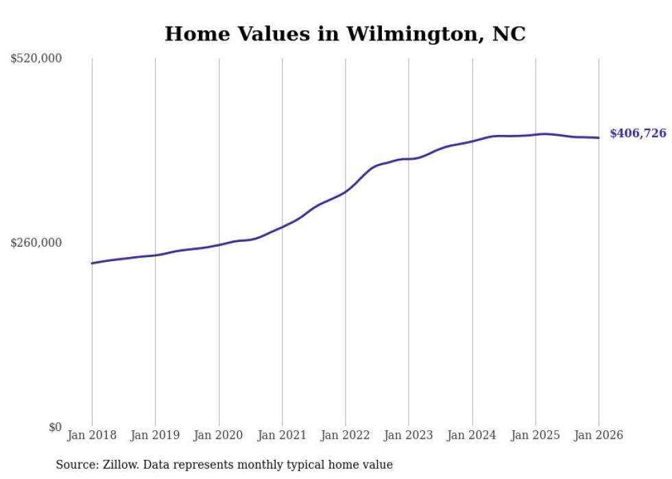 Stacker compiled a list of cities with the most expensive homes in the Wilmington metro area using data from Zillow. Charts show the monthly typical home value since January 2018. All 14 cities and towns with data available were included in the list.