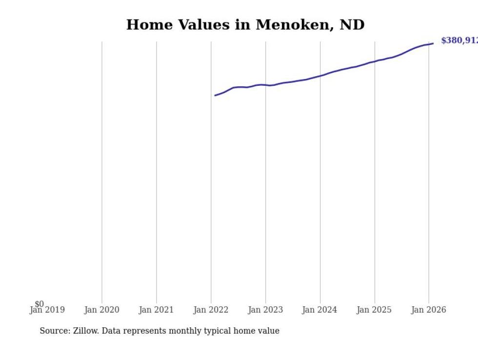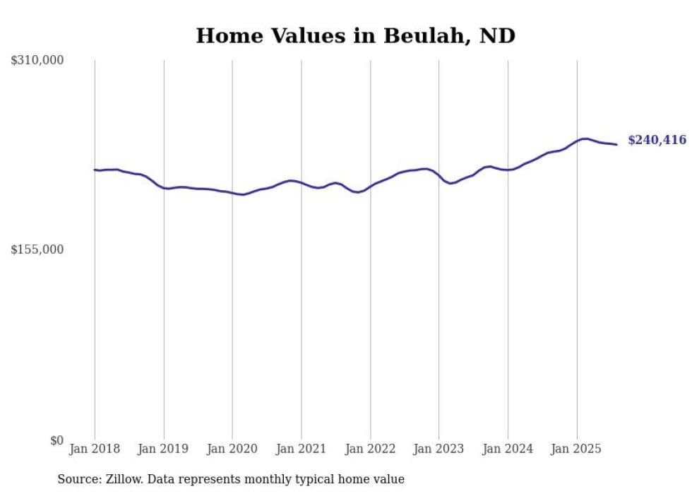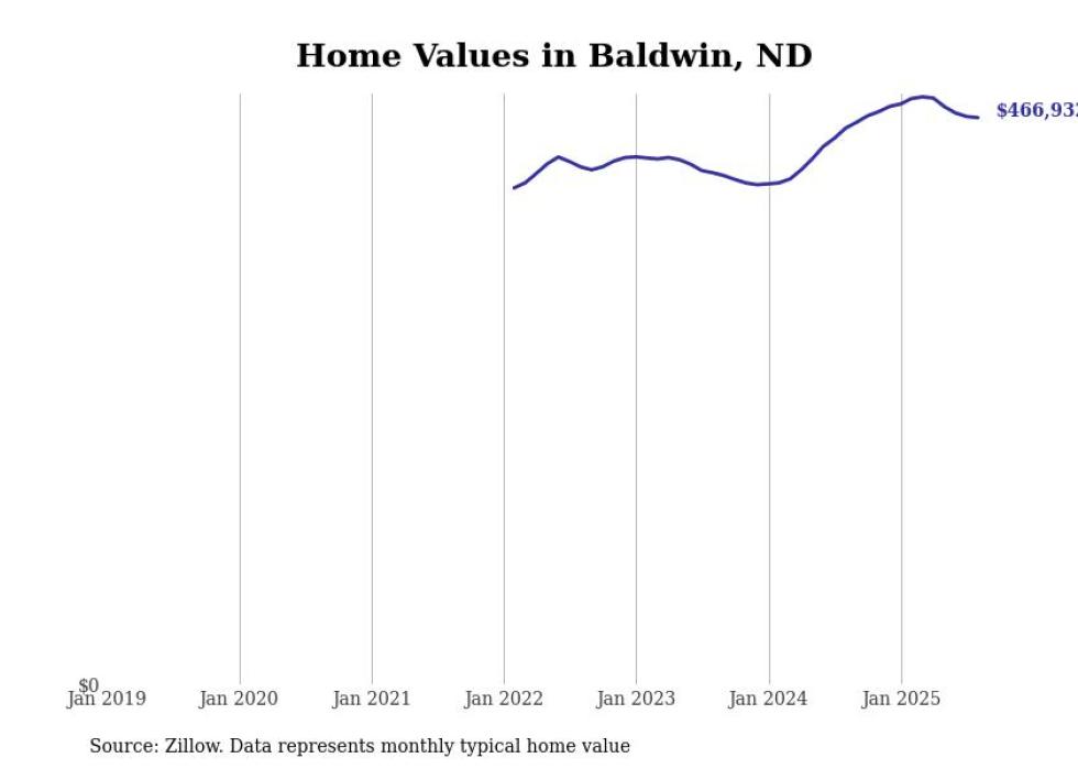 Stacker compiled a list of cities with the most expensive homes in the Bismarck, ND metro area using data from Zillow. Charts show the monthly typical home value since January 2018.