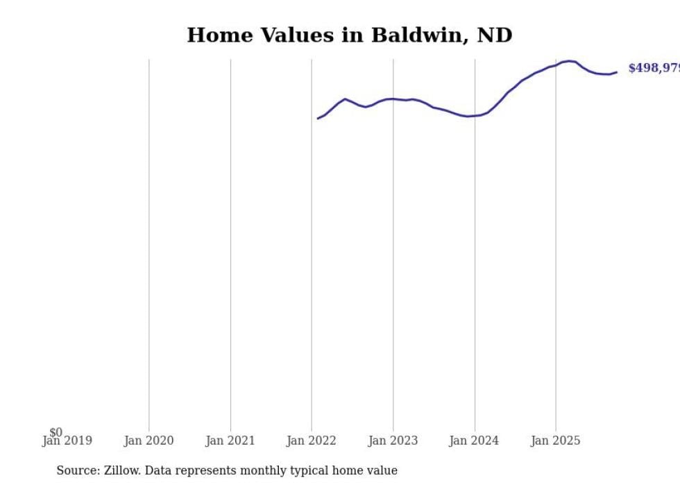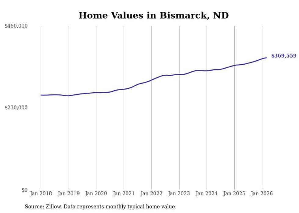 Stacker compiled a list of cities with the most expensive homes in the Bismarck metro area using data from Zillow. Charts show the monthly typical home value since January 2018. All 10 cities and towns with data available were included in the list.