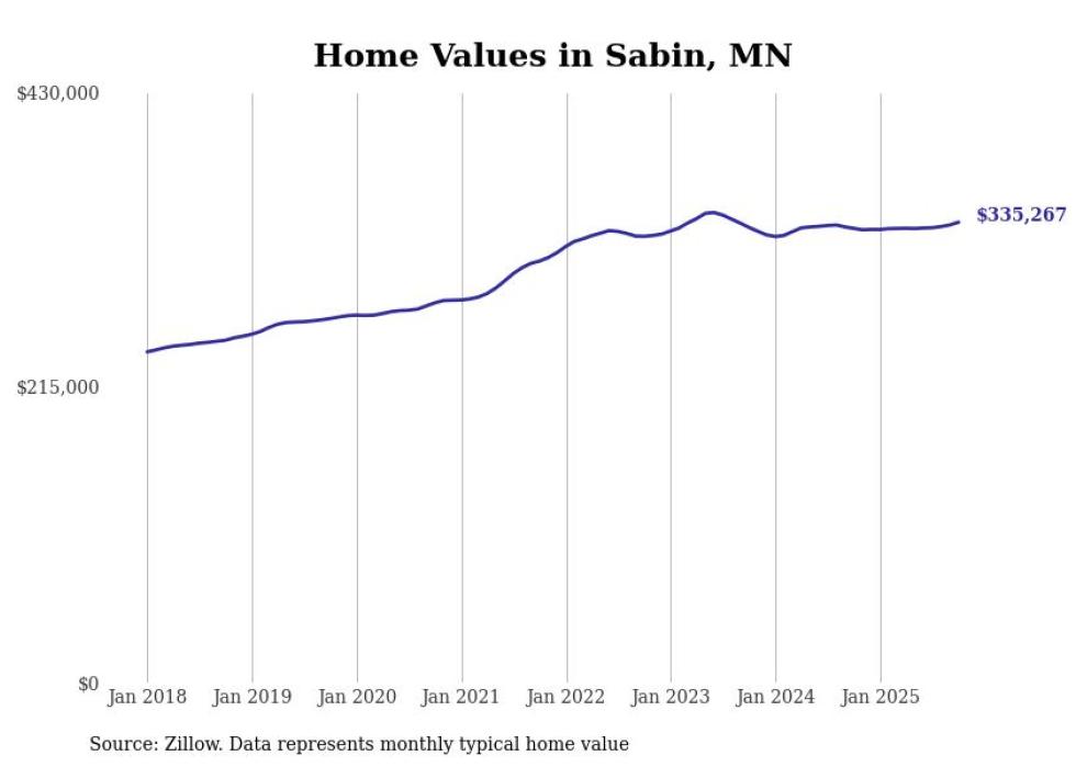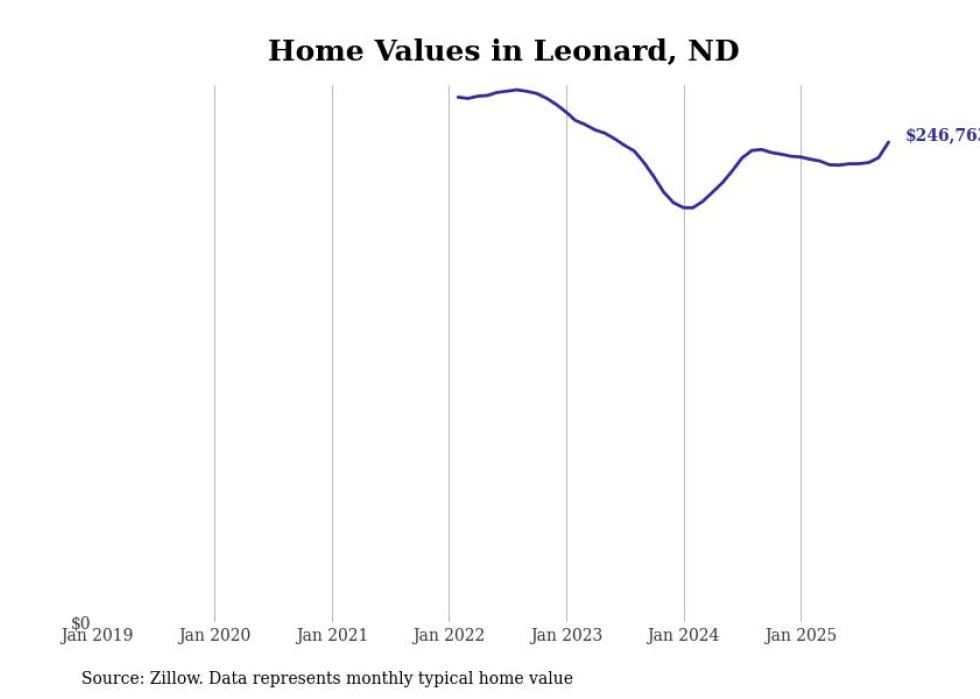 Stacker compiled a list of cities with the most expensive homes in the Fargo metro area using data from Zillow. Charts show the monthly typical home value since January 2018. All 24 cities and towns with data available were included in the list.