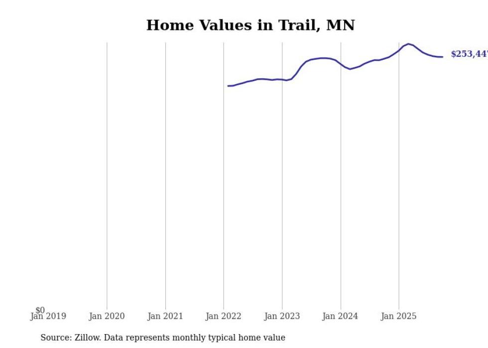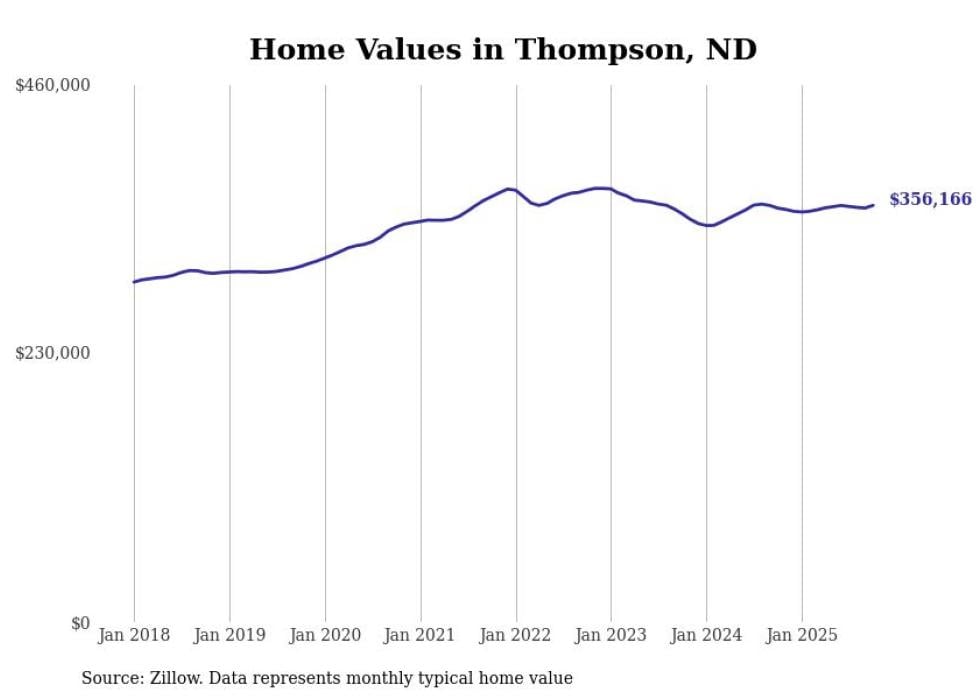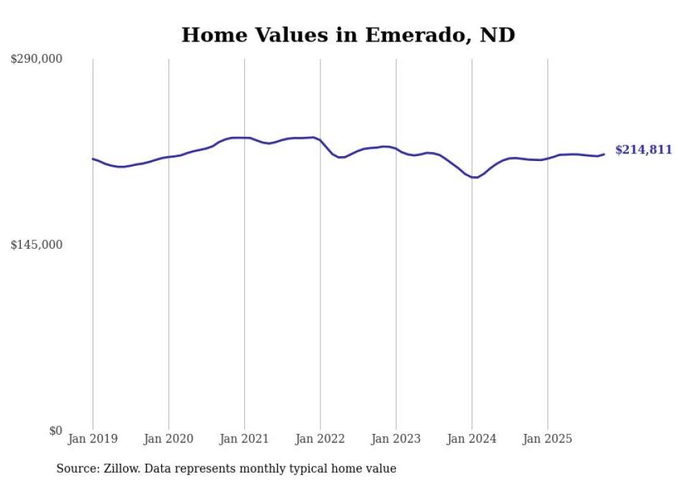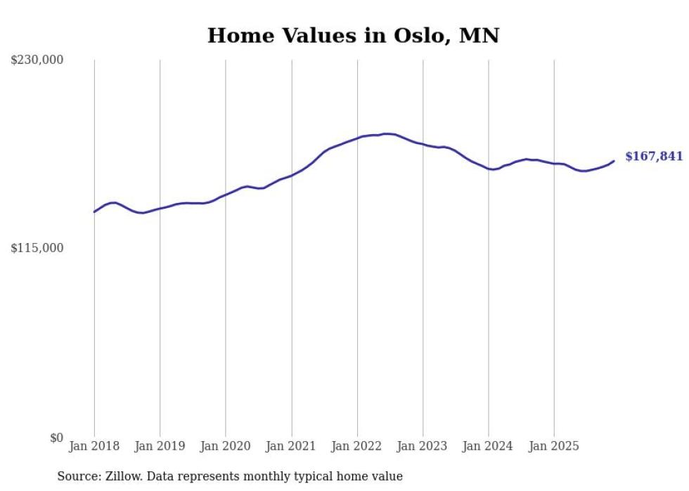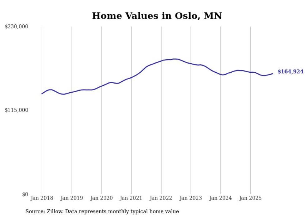 Stacker compiled a list of cities with the most expensive homes in the Grand Forks, ND-MN metro area using data from Zillow. Charts show the monthly typical home value since January 2018.