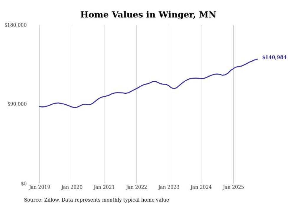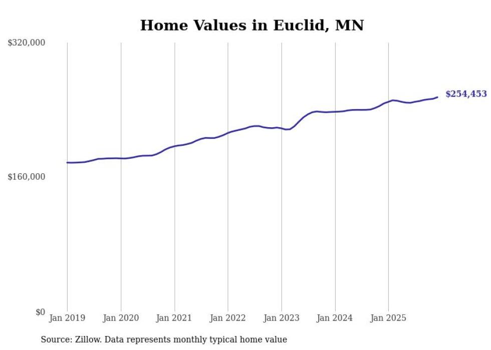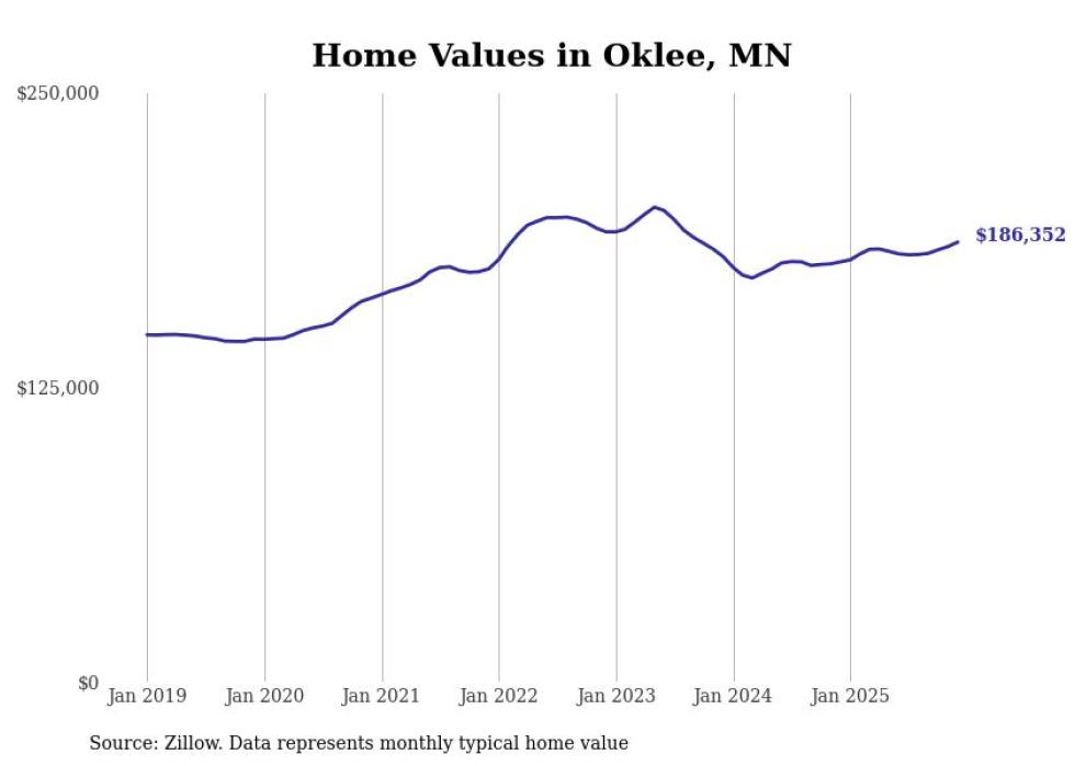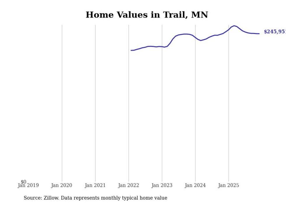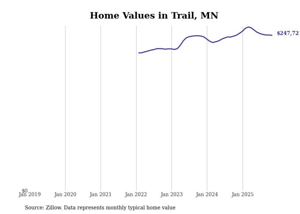 Stacker compiled a list of cities with the most expensive homes in the Grand Forks, ND-MN metro area using data from Zillow. Charts show the monthly typical home value since January 2018.