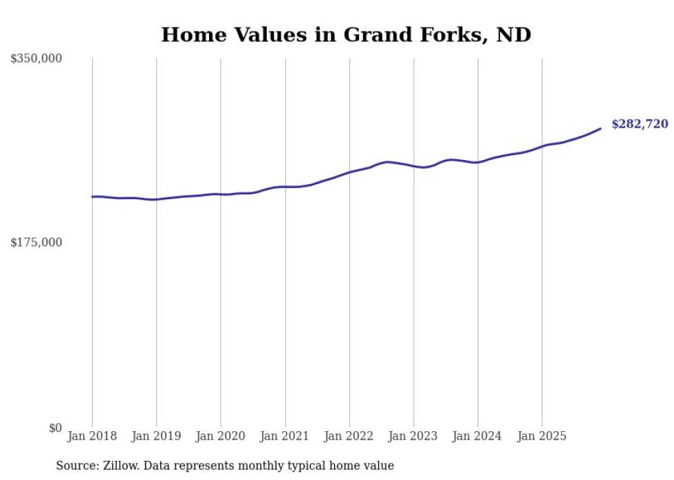 Cities with the fastest-growing home prices in the Grand Forks metro area