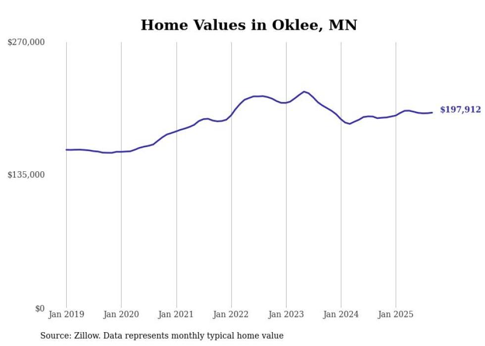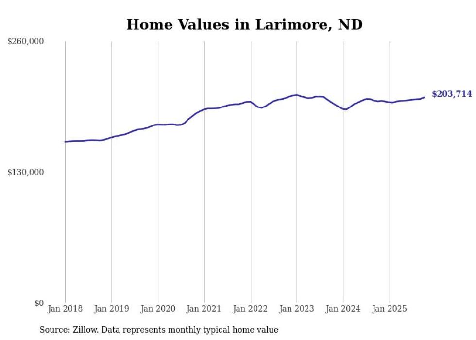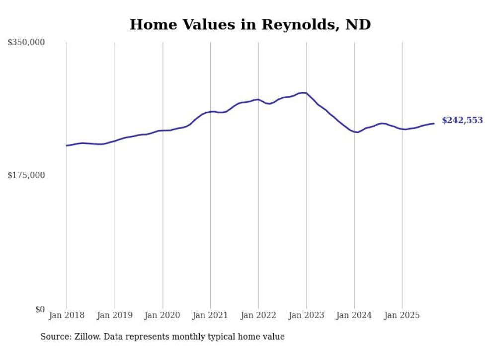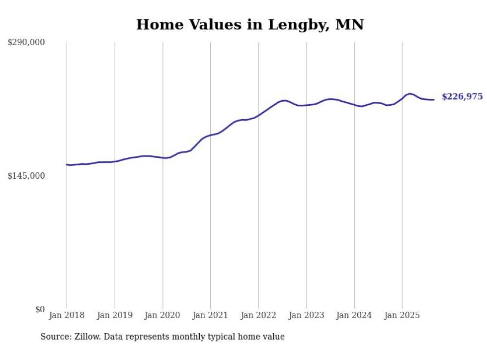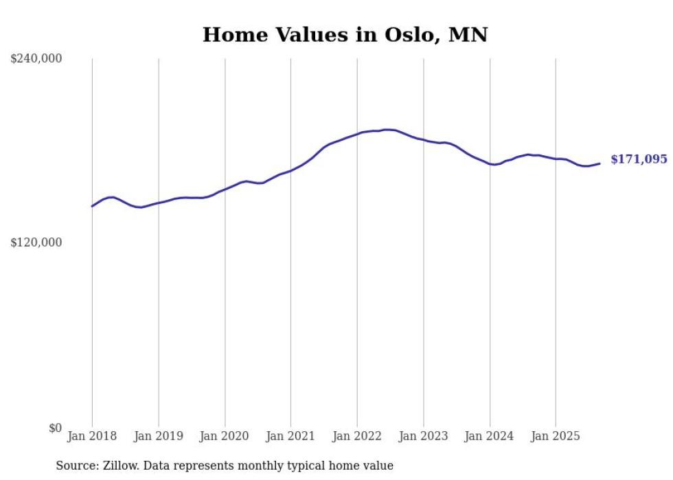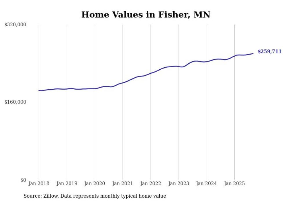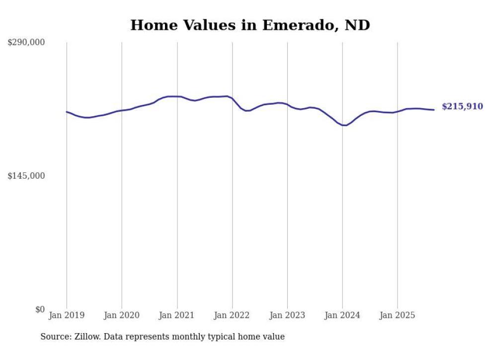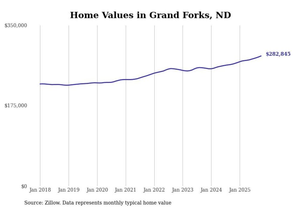 Stacker compiled a list of cities with the most expensive homes in the Grand Forks metro area using data from Zillow. Charts show the monthly typical home value since January 2018. All 27 cities and towns with data available were included in the list.