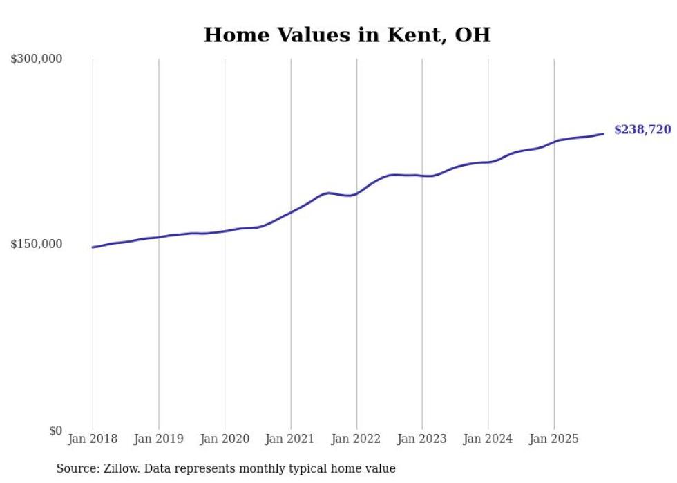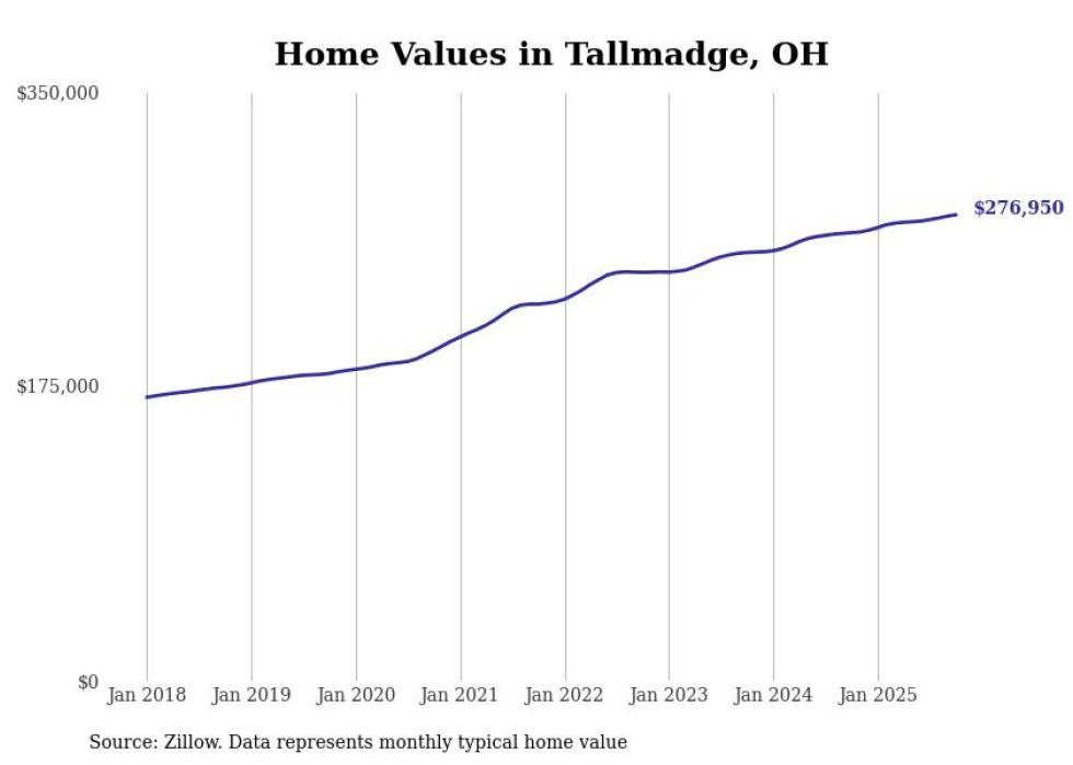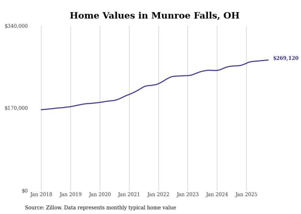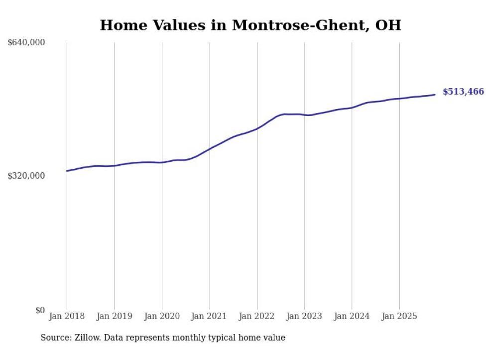 Stacker compiled a list of cities with the most expensive homes in the Akron metro area using data from Zillow. Charts show the monthly typical home value since January 2018. Data was available for 36 cities and towns.