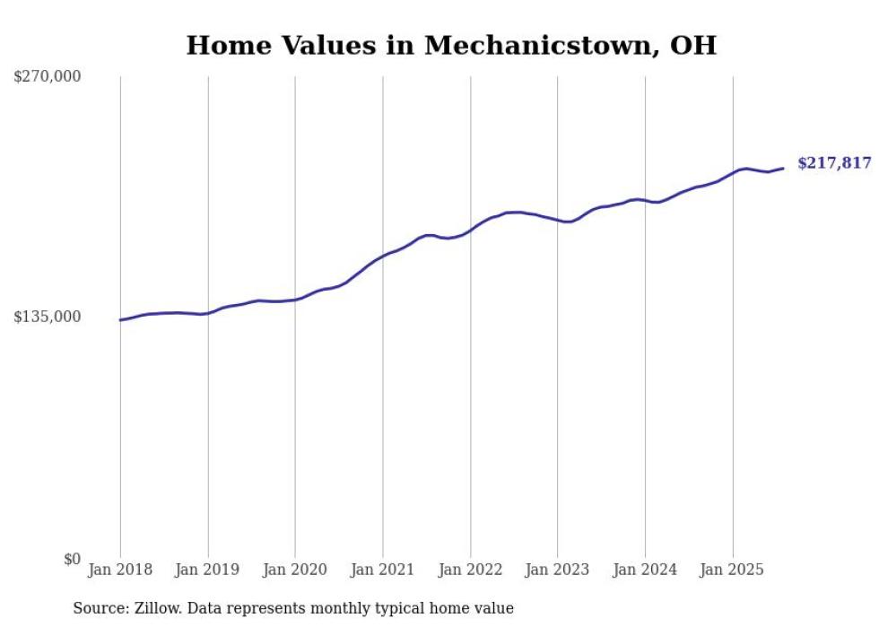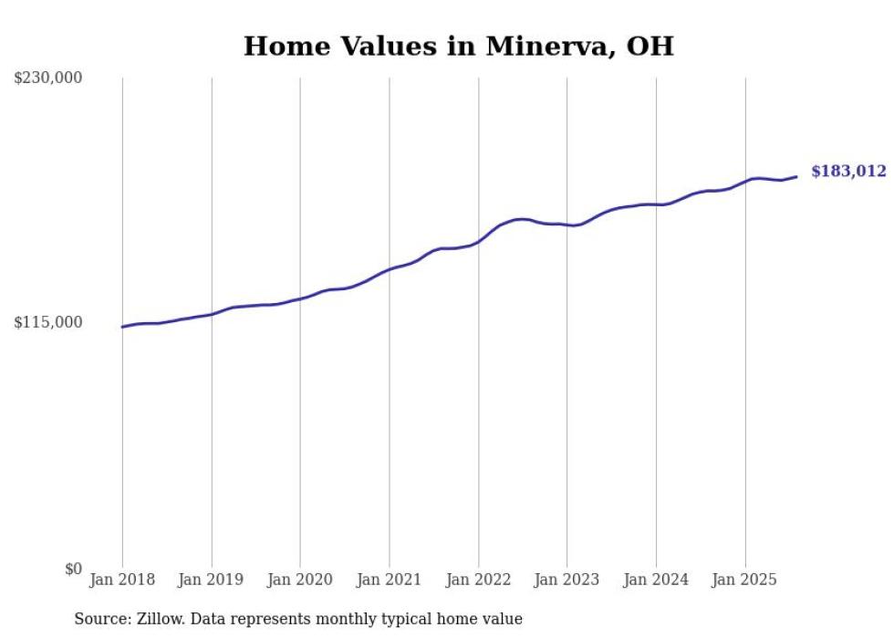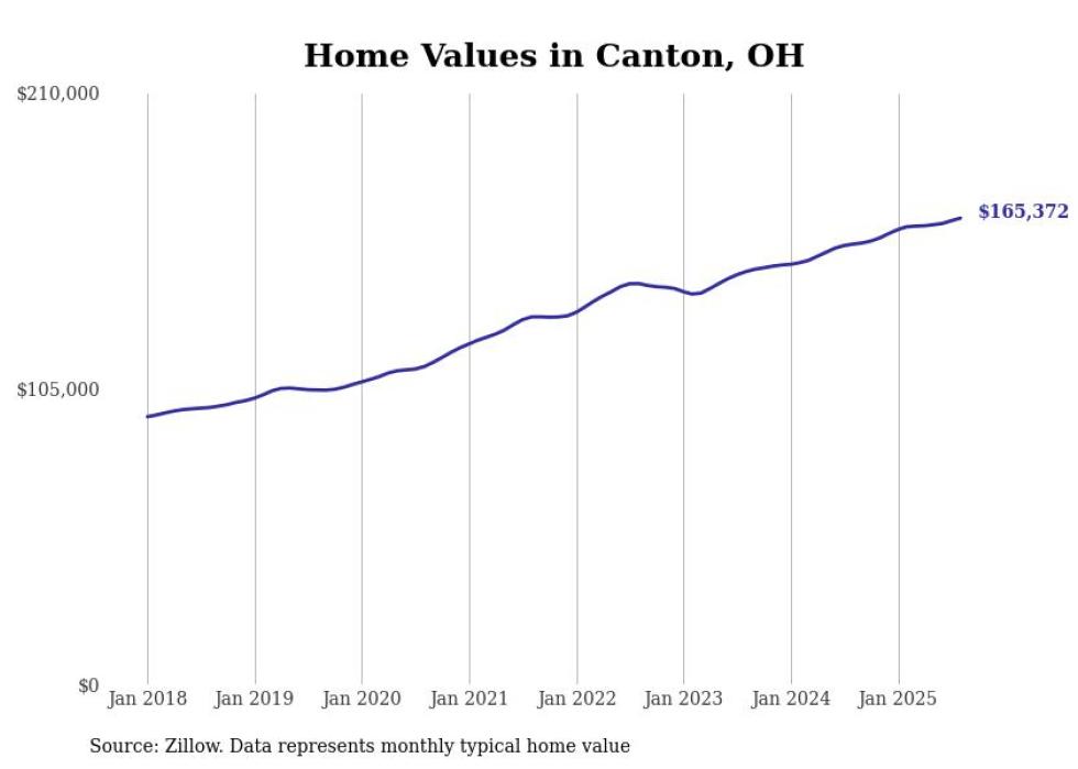 Stacker compiled a list of cities with the most expensive homes in the Canton-Massillon, OH metro area using data from Zillow. Charts show the monthly typical home value since January 2018.