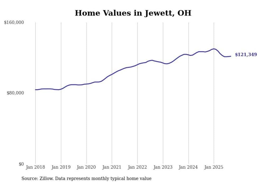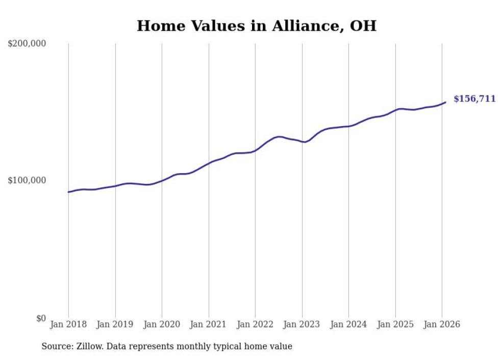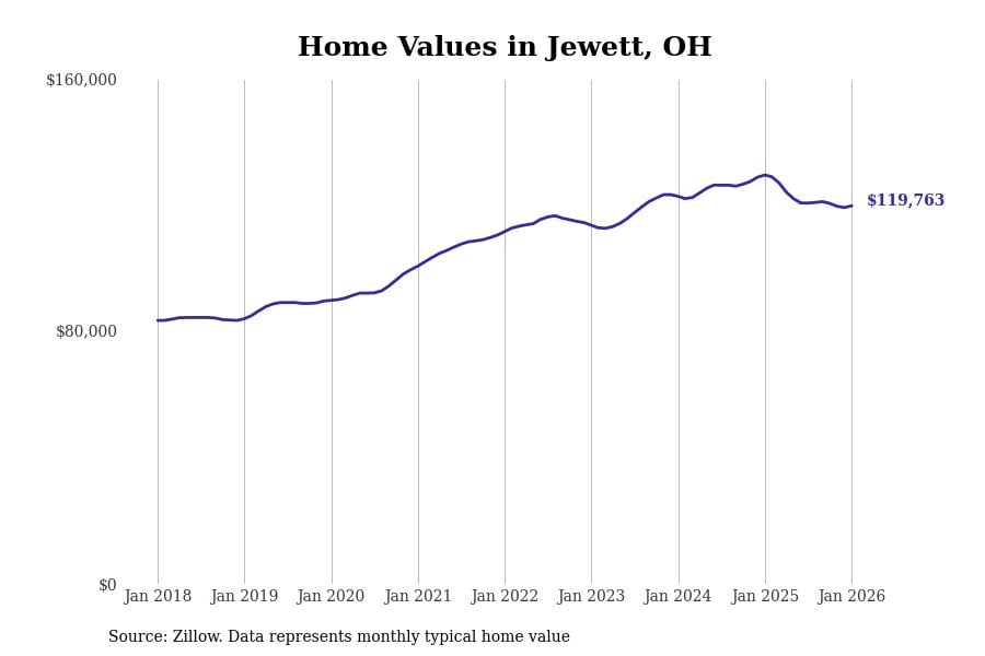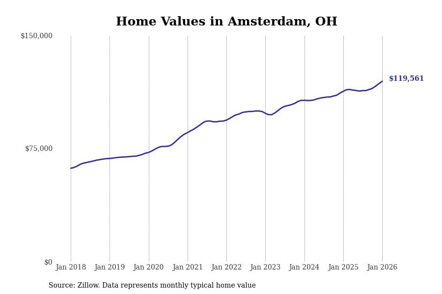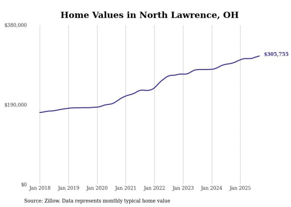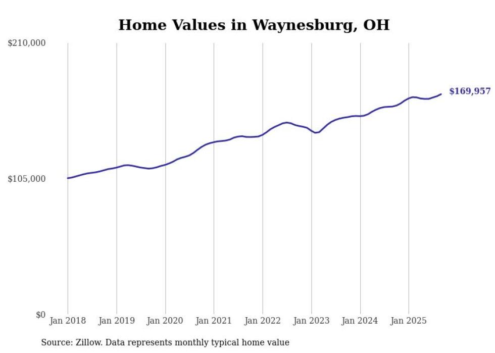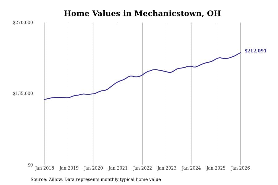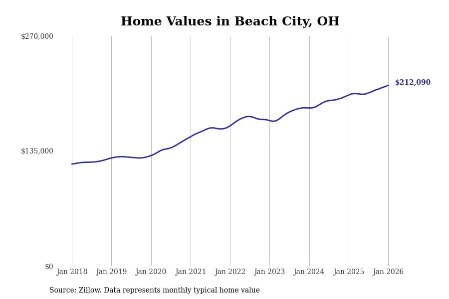 Stacker compiled a list of cities with the most expensive homes in the Canton metro area using data from Zillow. Charts show the monthly typical home value since January 2018. All 26 cities and towns with data available were included in the list.