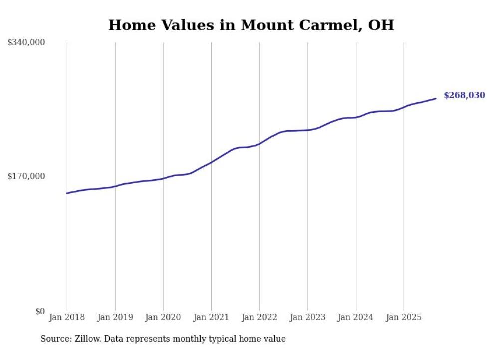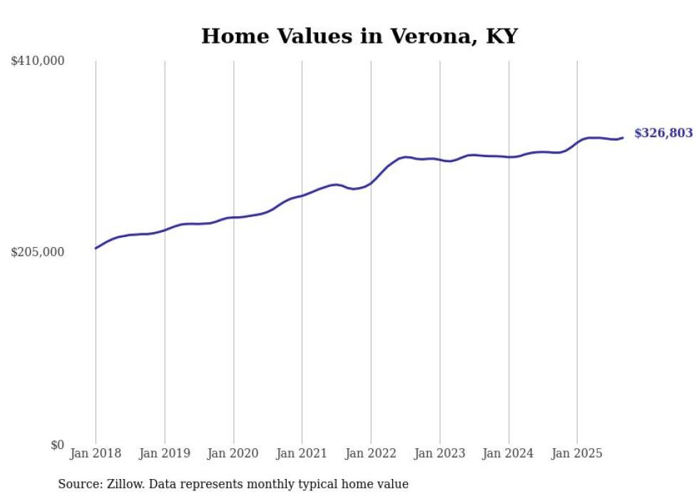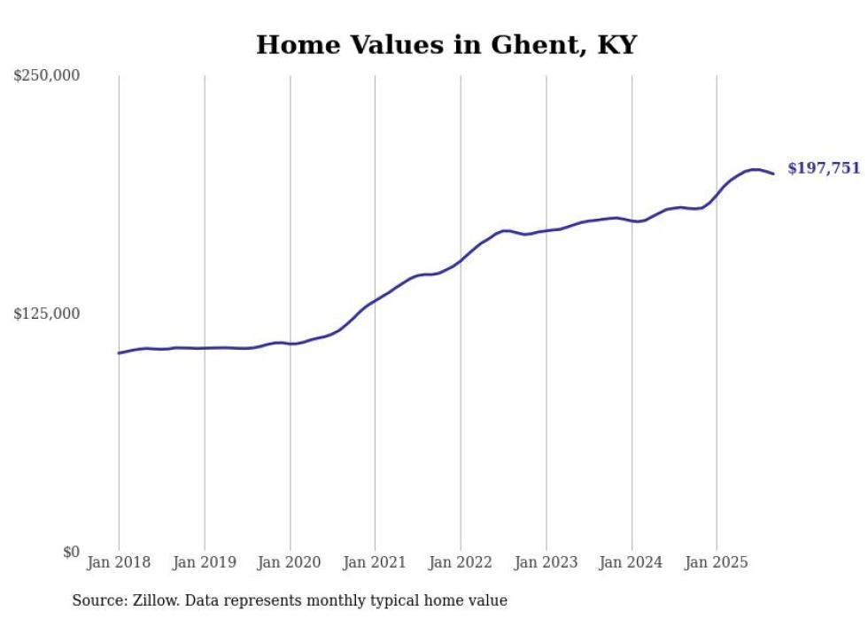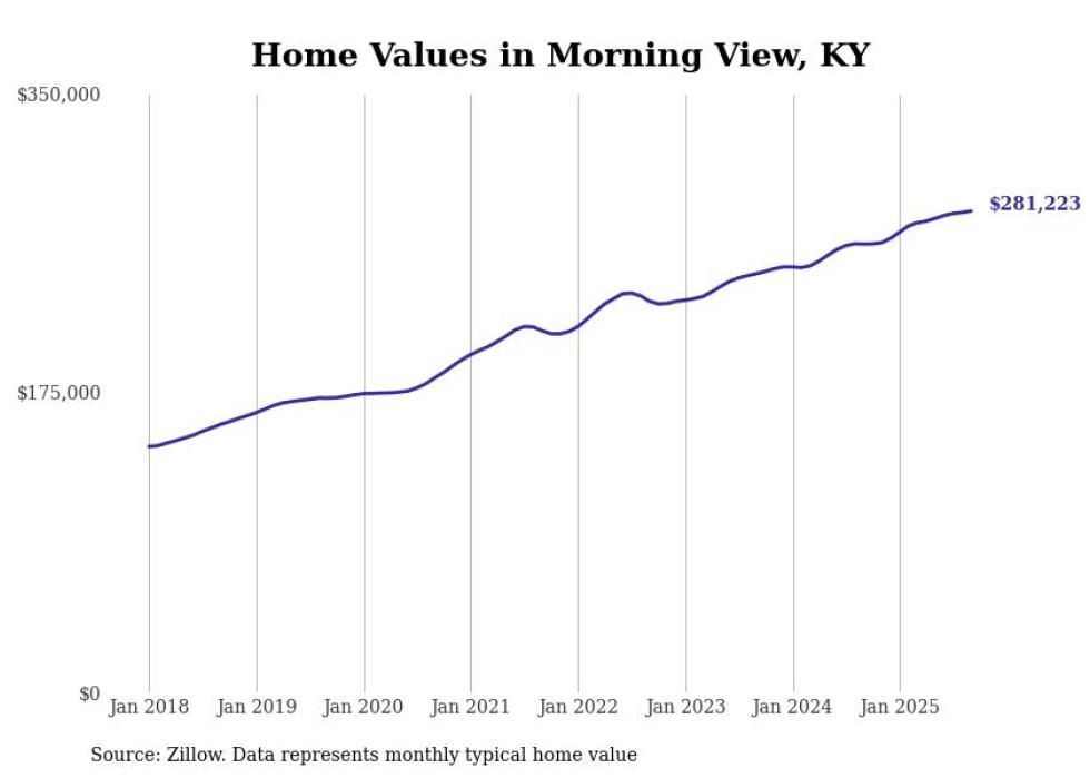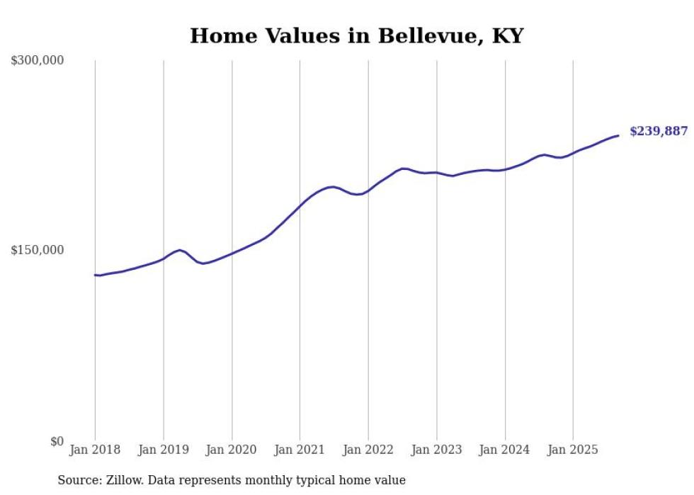 Stacker compiled a list of cities with the most expensive homes in the Cincinnati, OH-KY-IN metro area using data from Zillow. Charts show the monthly typical home value since January 2018.