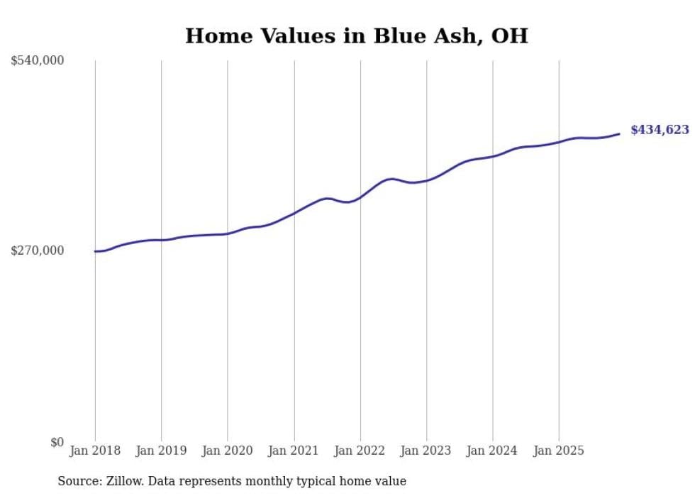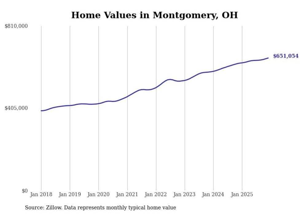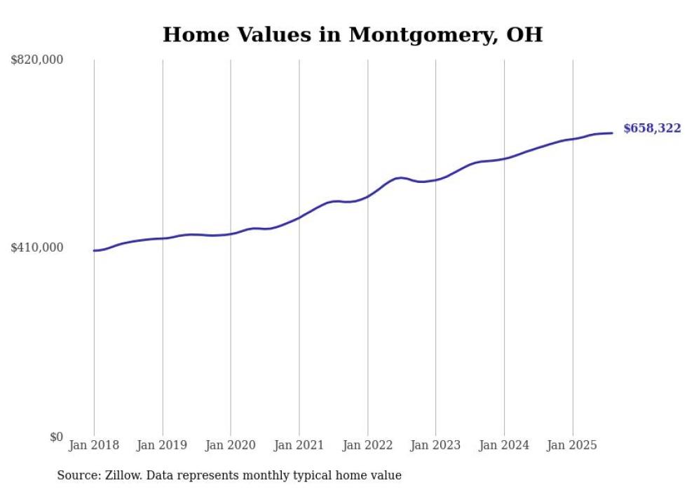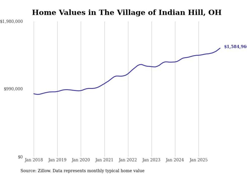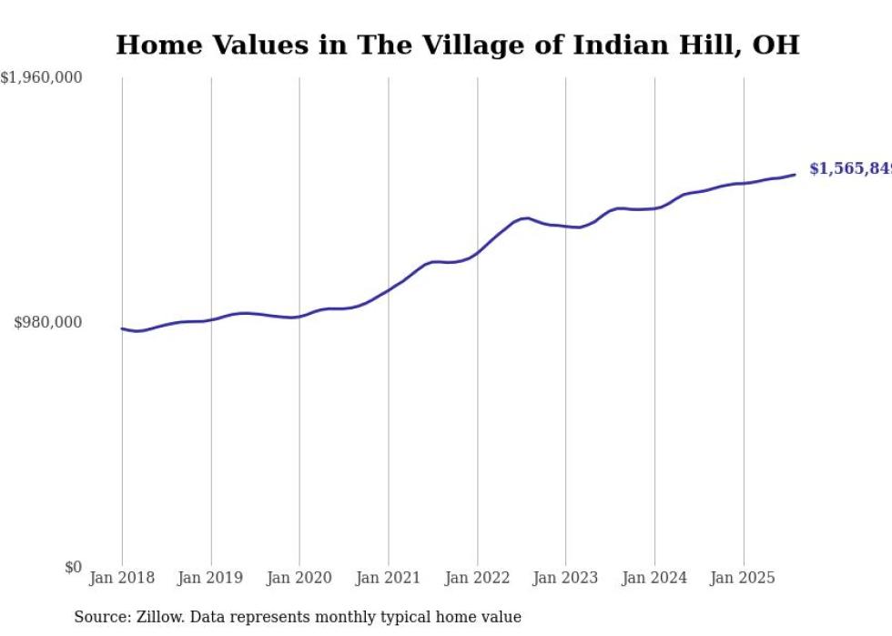 Stacker compiled a list of cities with the most expensive homes in the Cincinnati metro area using data from Zillow. Charts show the monthly typical home value since January 2018. Data was available for 177 cities and towns.
